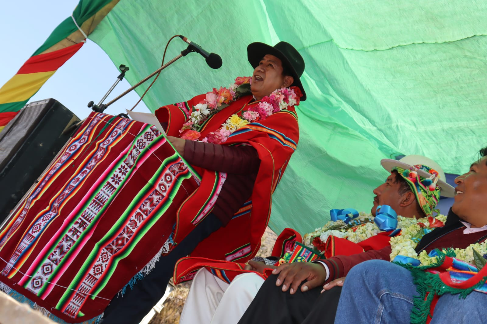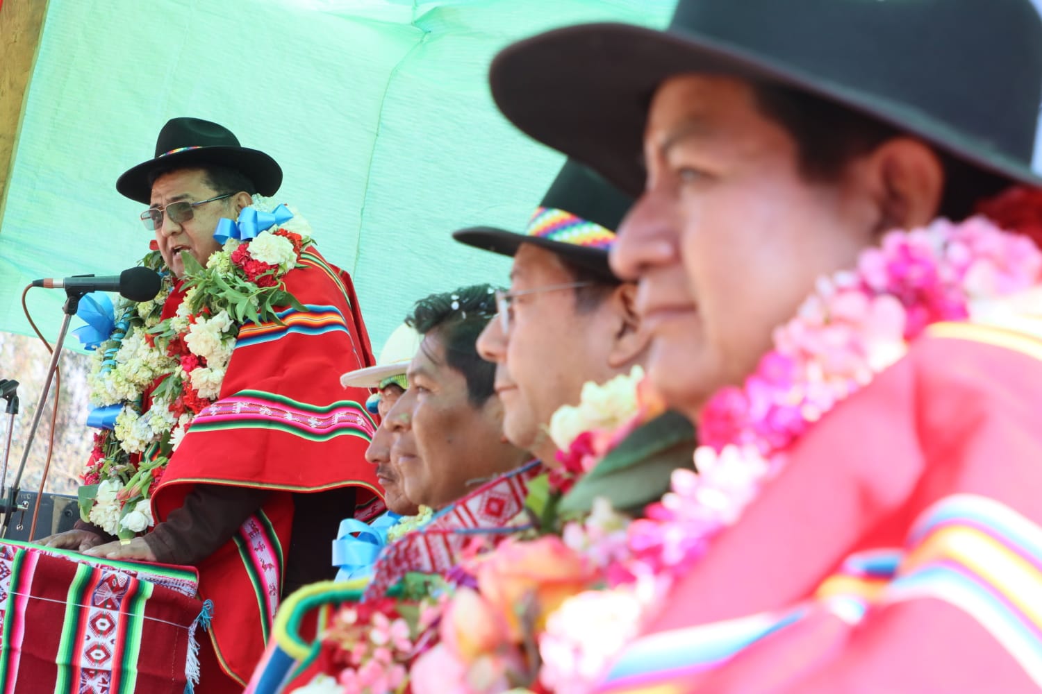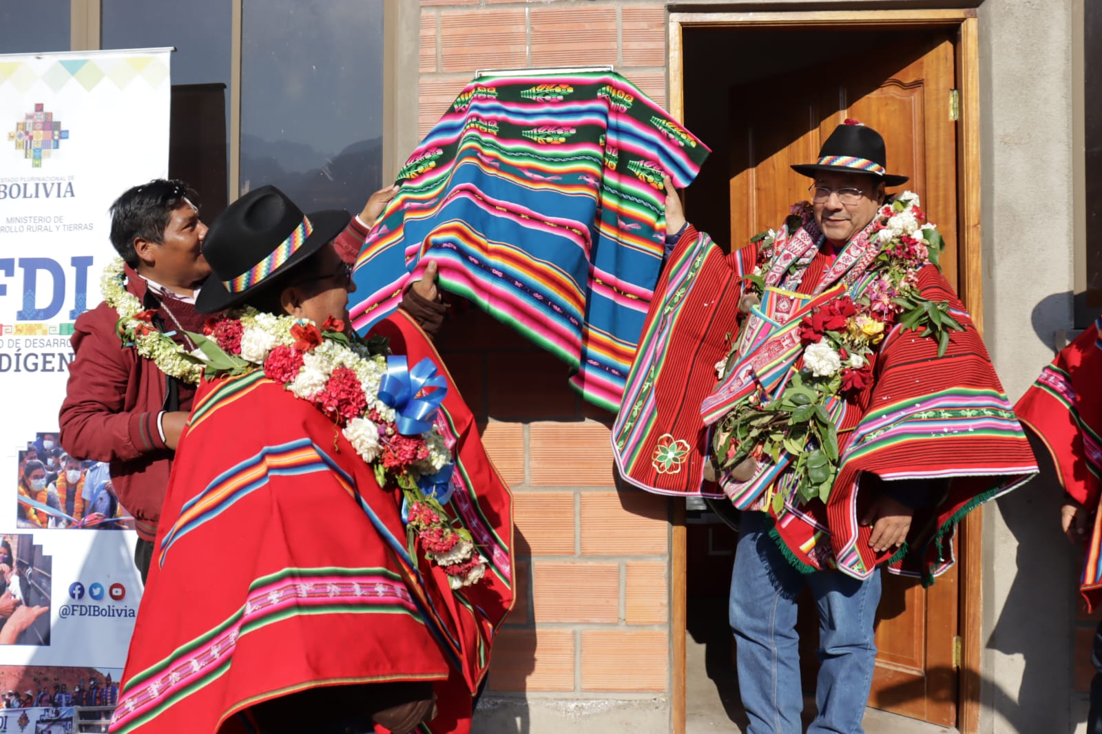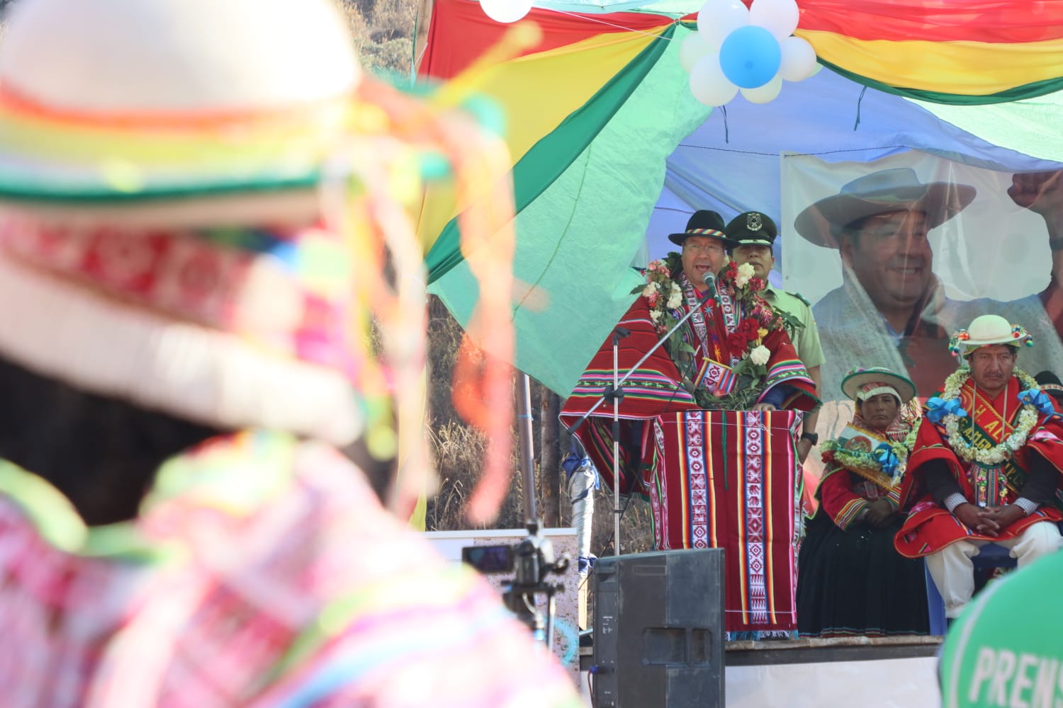 Presidente del Estado Luis Arce, entrega el mejoramiento del Sistema de Producción de Trucha, Construcción de Reservorios de Agua y Radio Bases en el municipio de Curva, La Paz. Fuente: Comunicación Presidencial