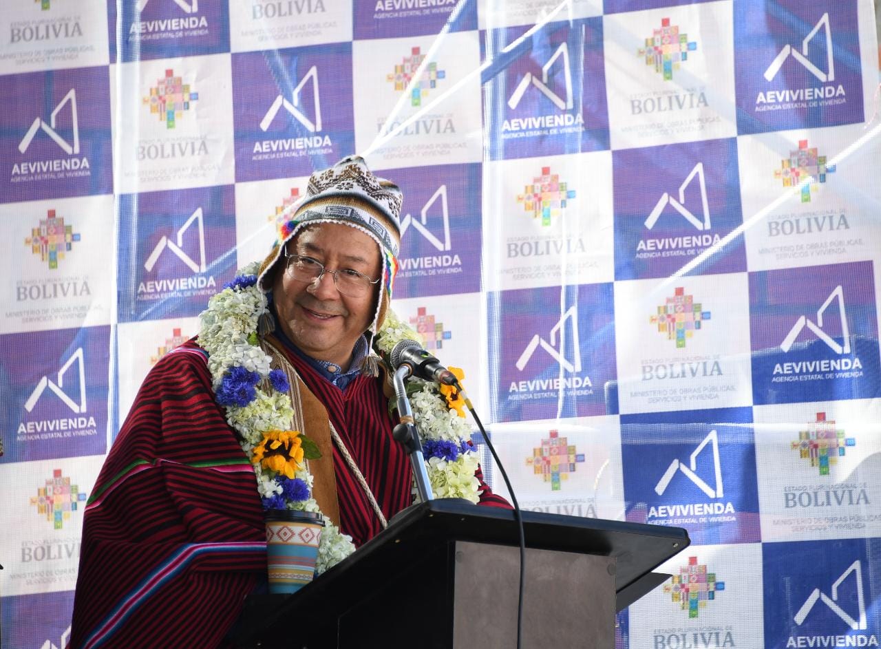 Presidente del Estado Luis Arce, entrega a la población viviendas cualitativas en el municipio de El Alto. Fuente: Comunicación Presidencial y Josué Cortéz/VICECOM