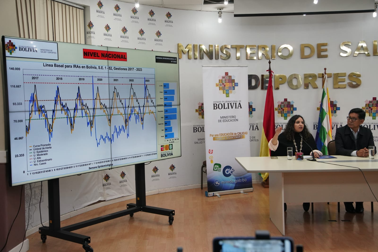 Conferencia de prensa de la Ministra de Salud María Renée Castro y el Ministro de Educación Edgar Pary, sobre la ampliación del descanso pedagógico