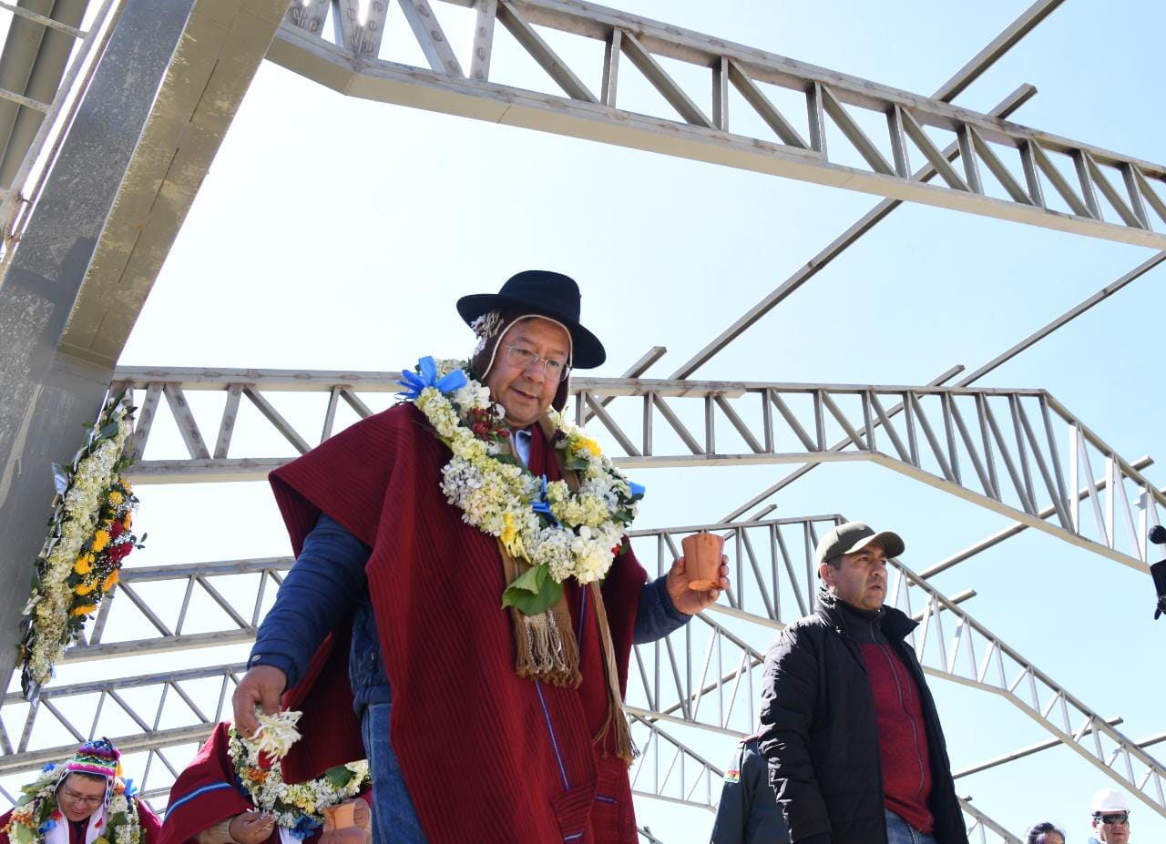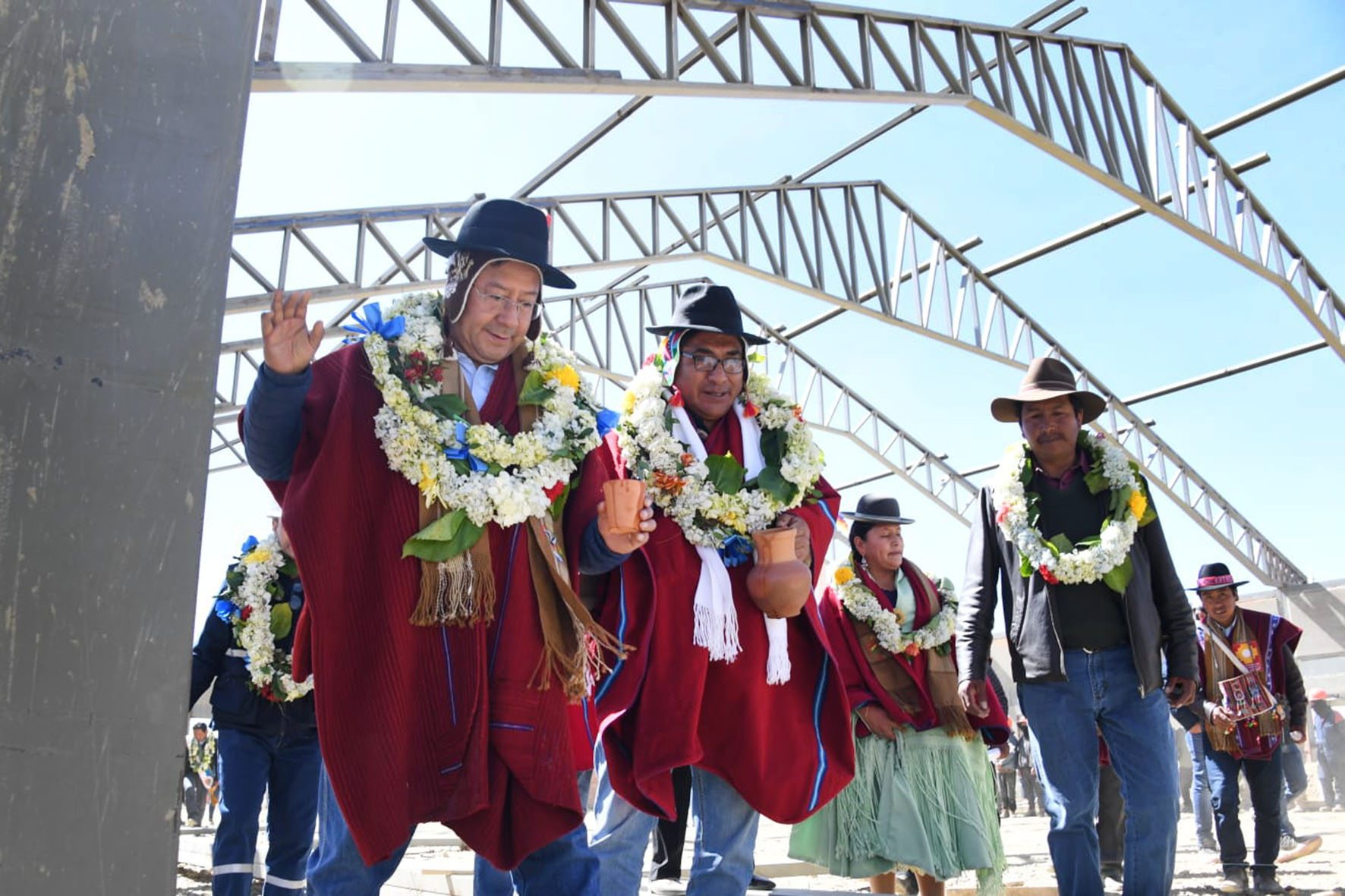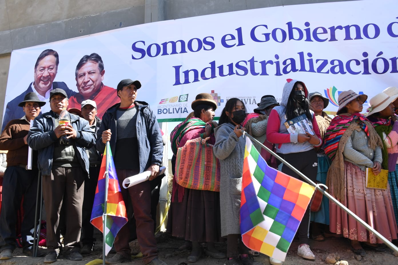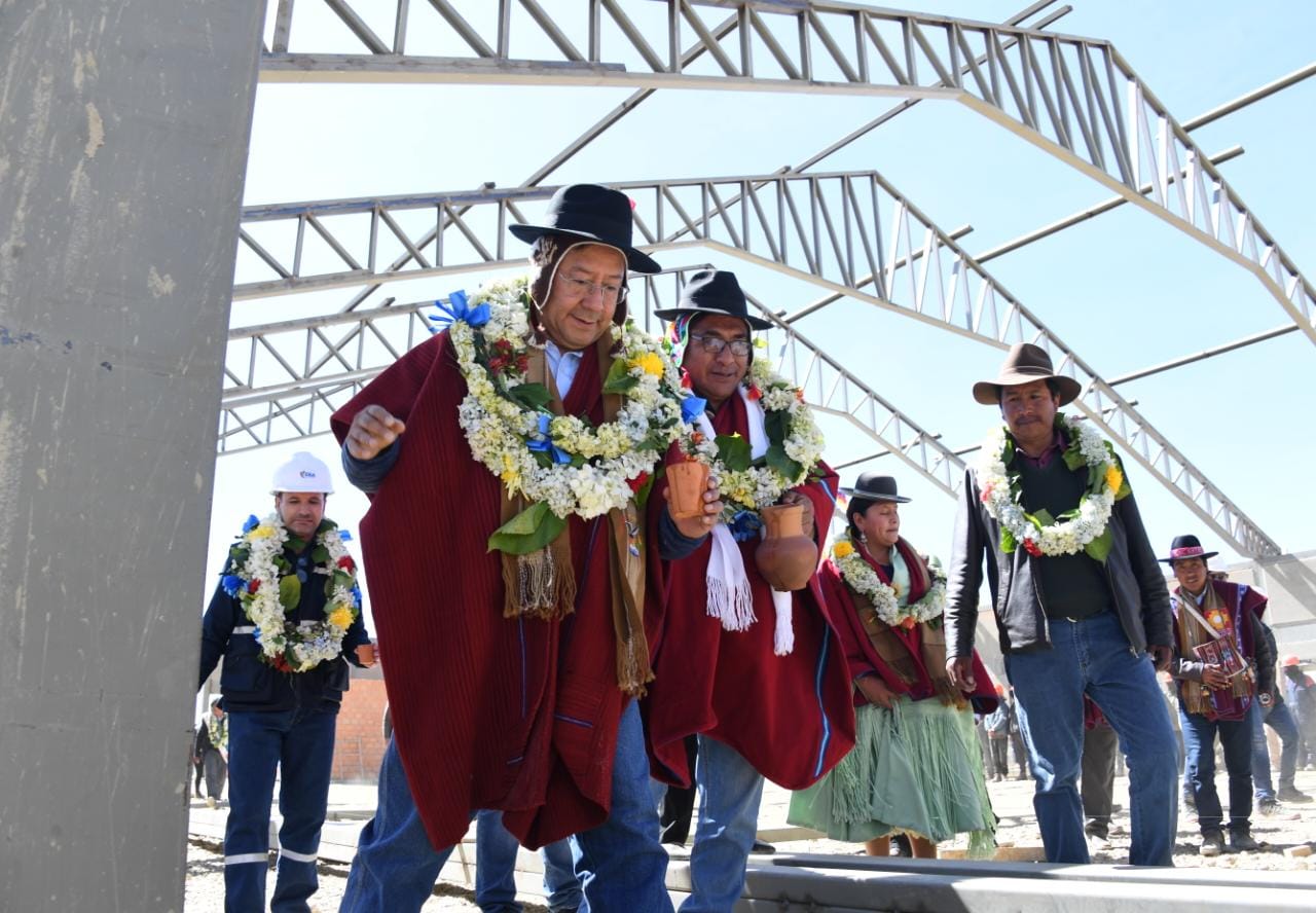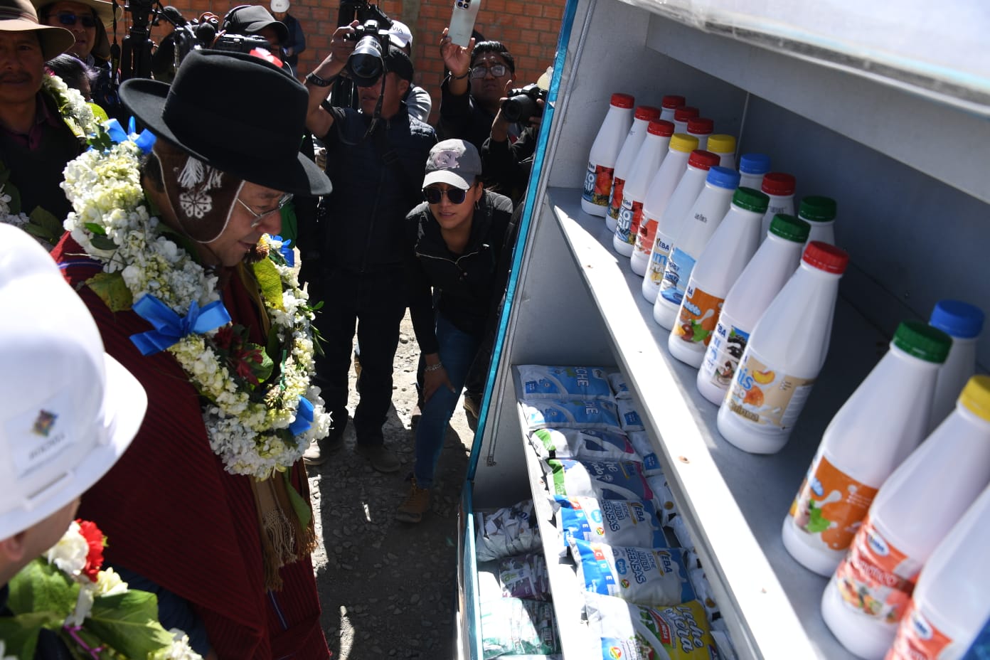 Presidente del Estado Luis Arce, inspecciona el avance del proyecto de ampliación de la Planta Procesadora de Lácteos en Achacachi