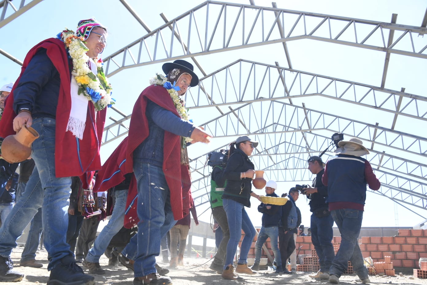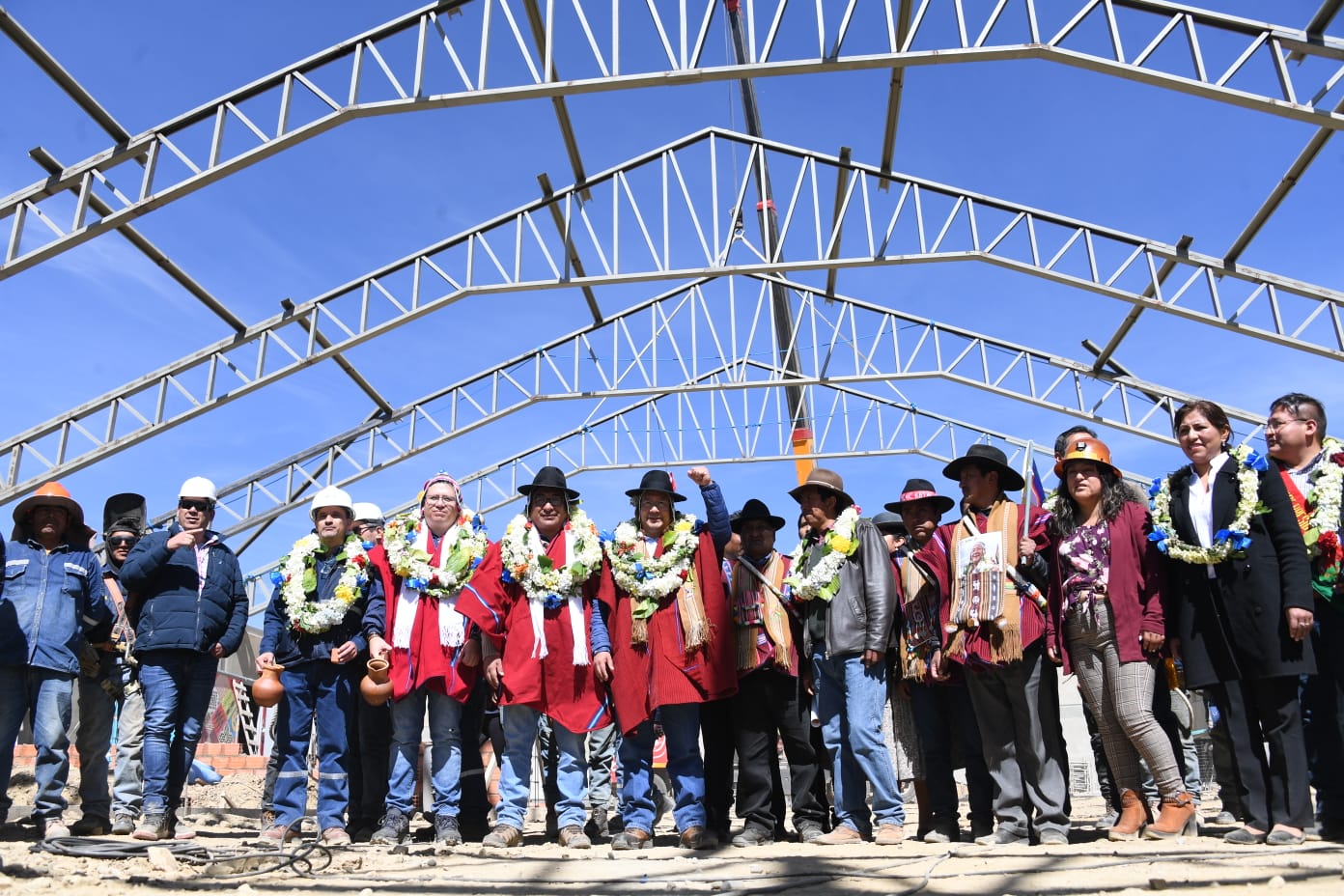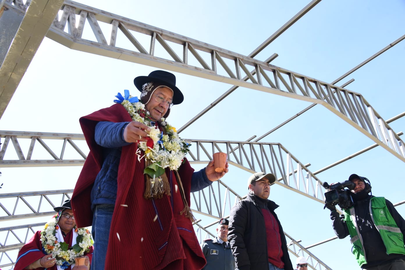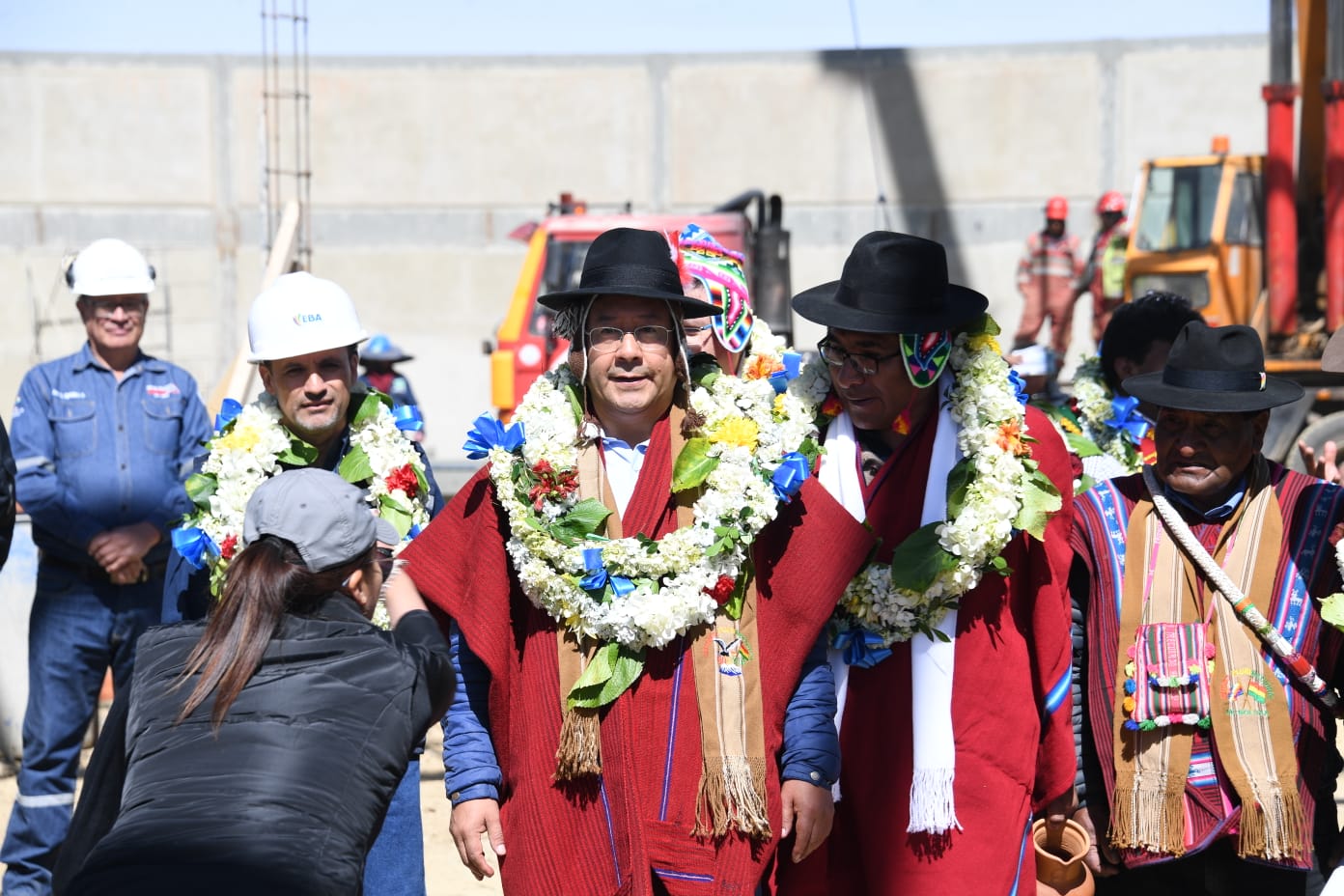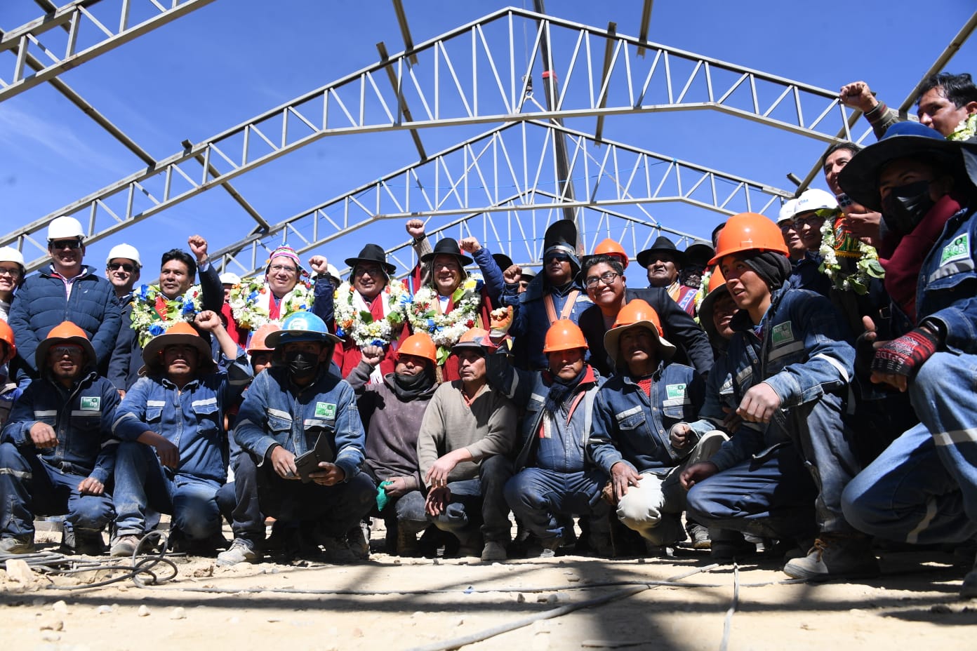 Presidente del Estado Luis Arce, inspecciona el avance del proyecto de ampliación de la Planta Procesadora de Lácteos en Achacachi