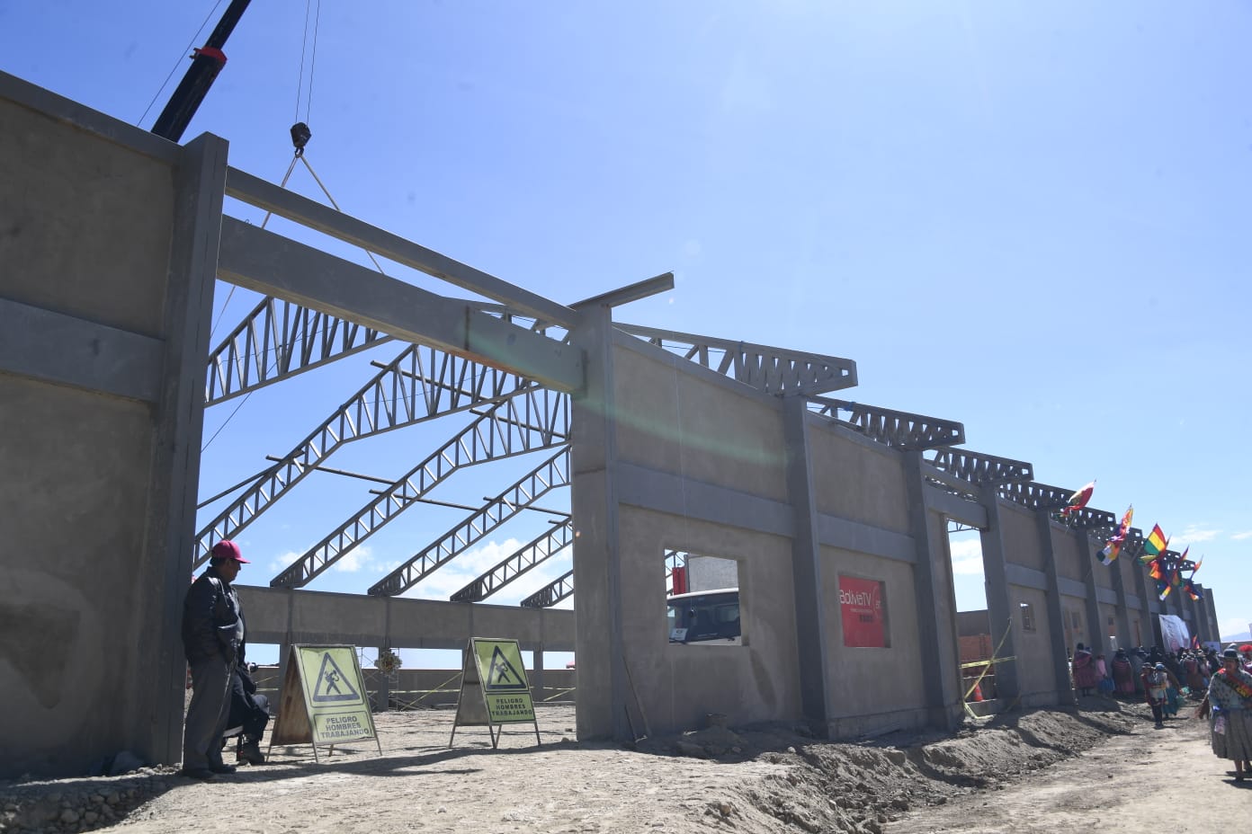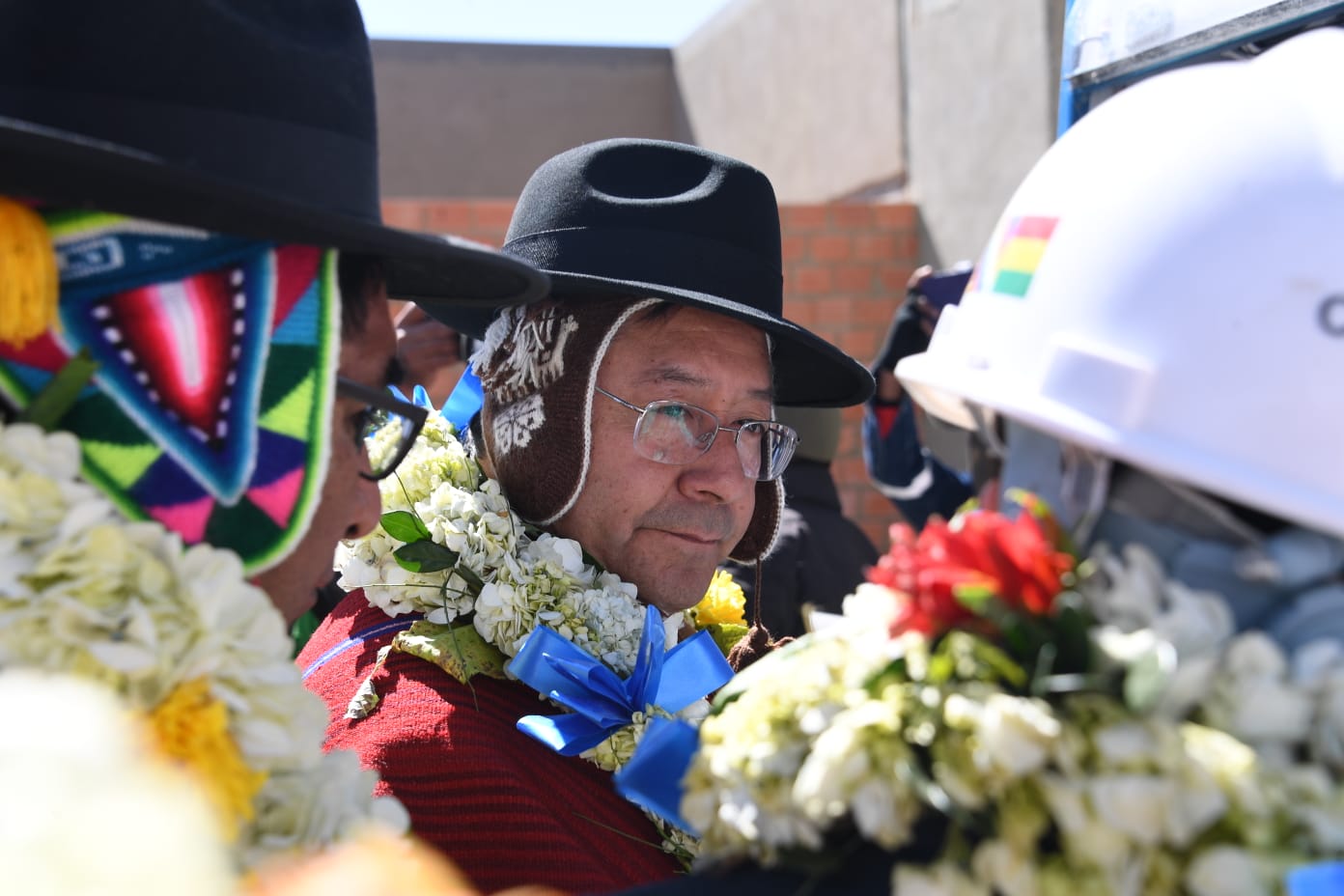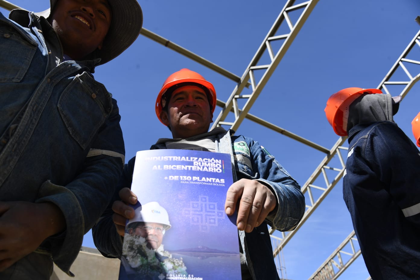 El presidente del Estado Luis Arce inspecciona el avance del proyecto de ampliación de la Planta Procesadora de Lácteos en Achacachi, La Paz. Fotos: Josué Cortéz