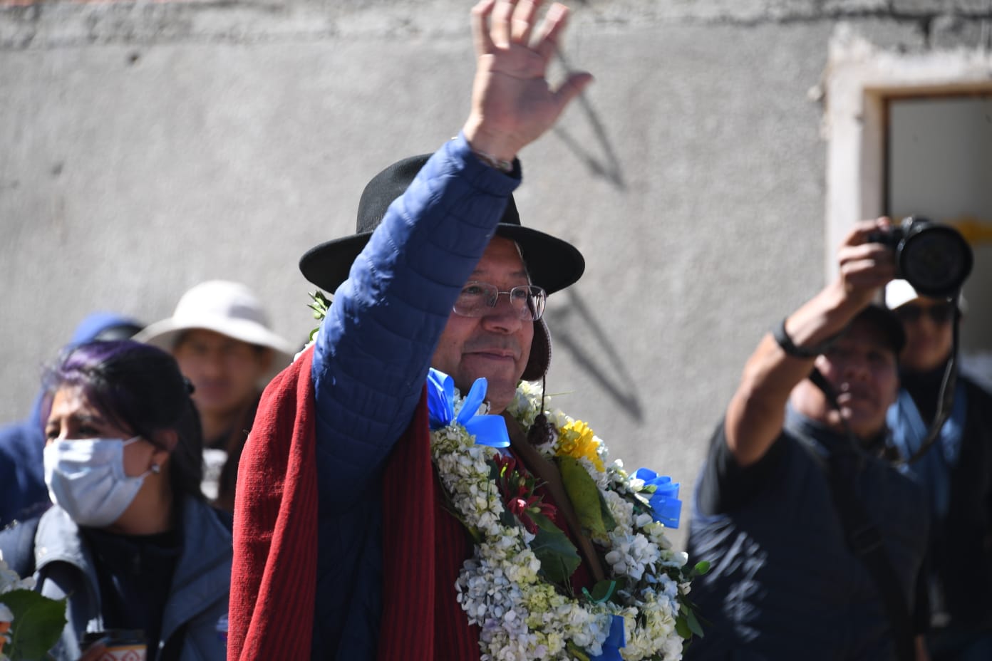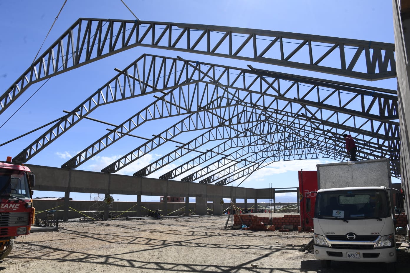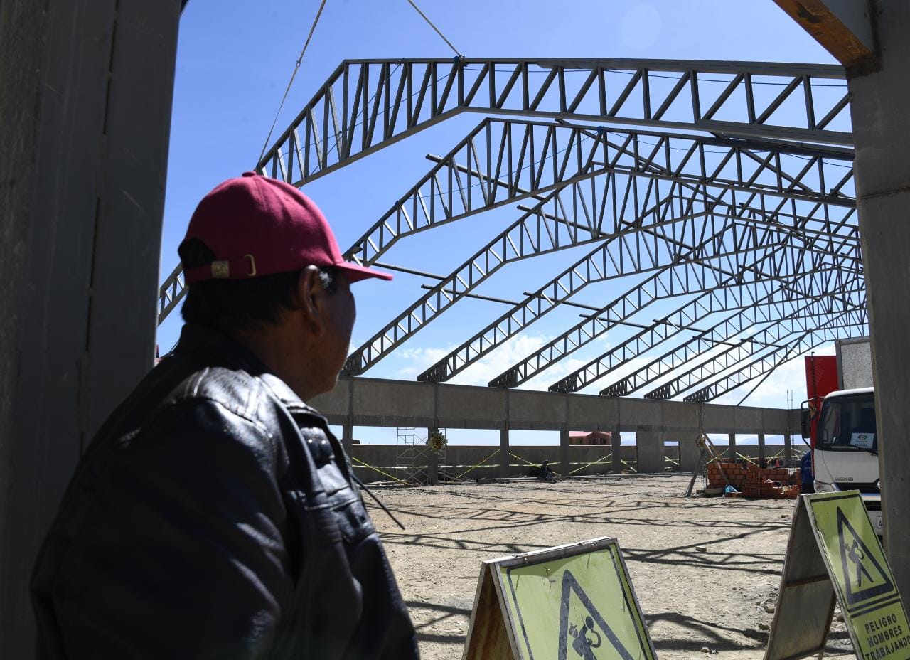El presidente del Estado Luis Arce inspecciona el avance del proyecto de ampliación de la Planta Procesadora de Lácteos en Achacachi, La Paz. Fotos: Josué Cortéz