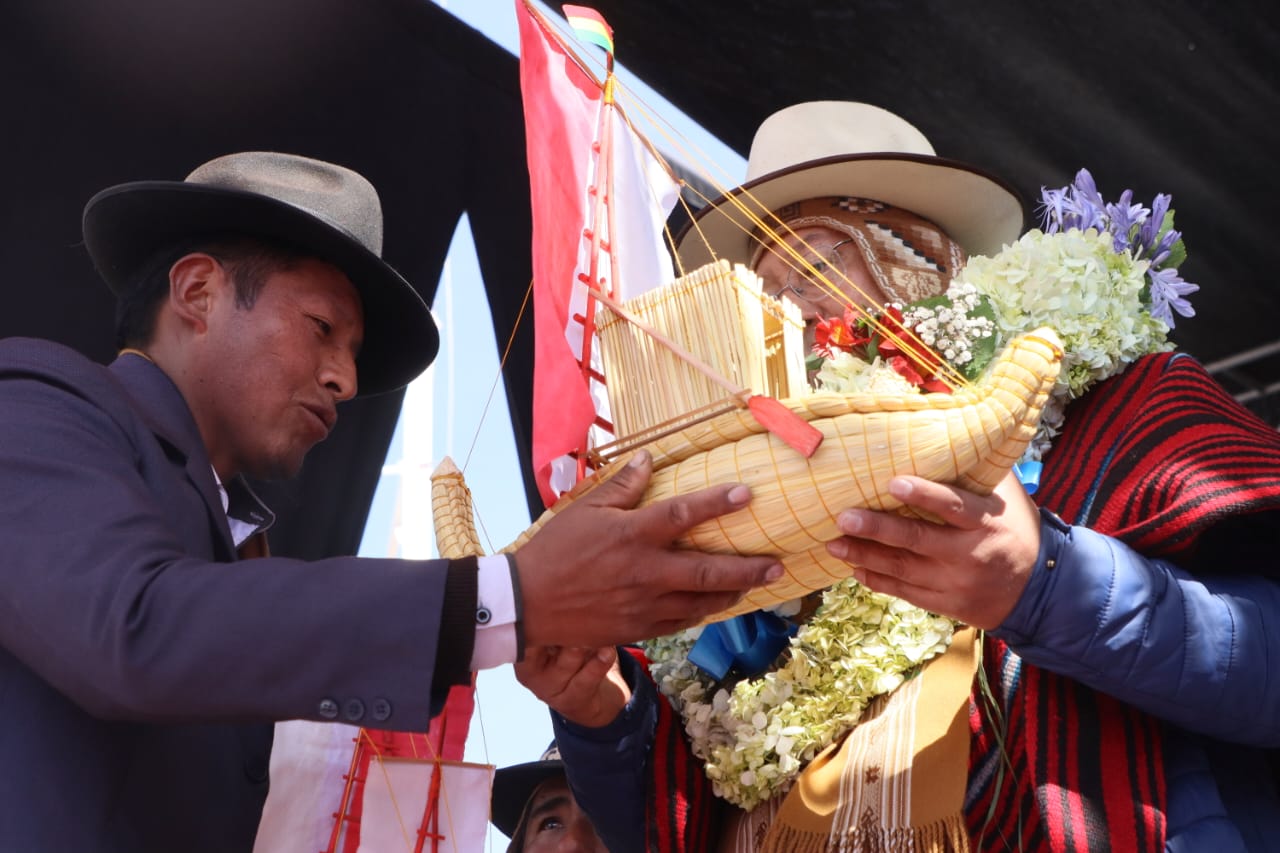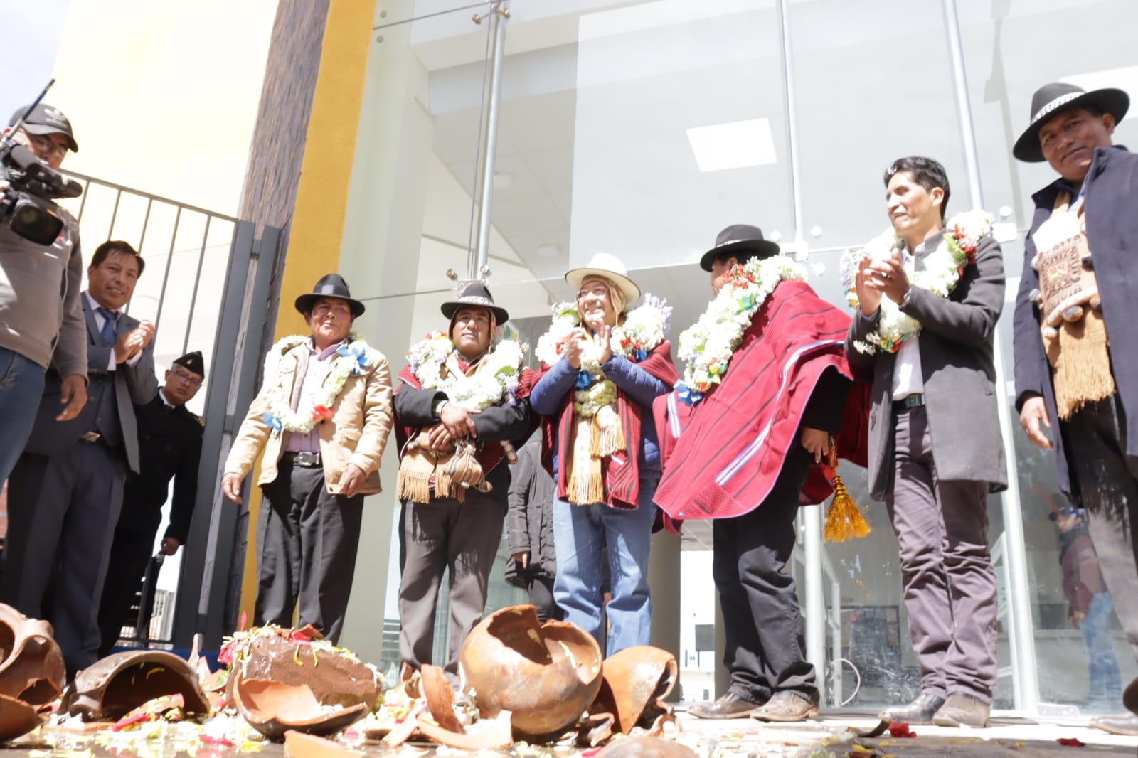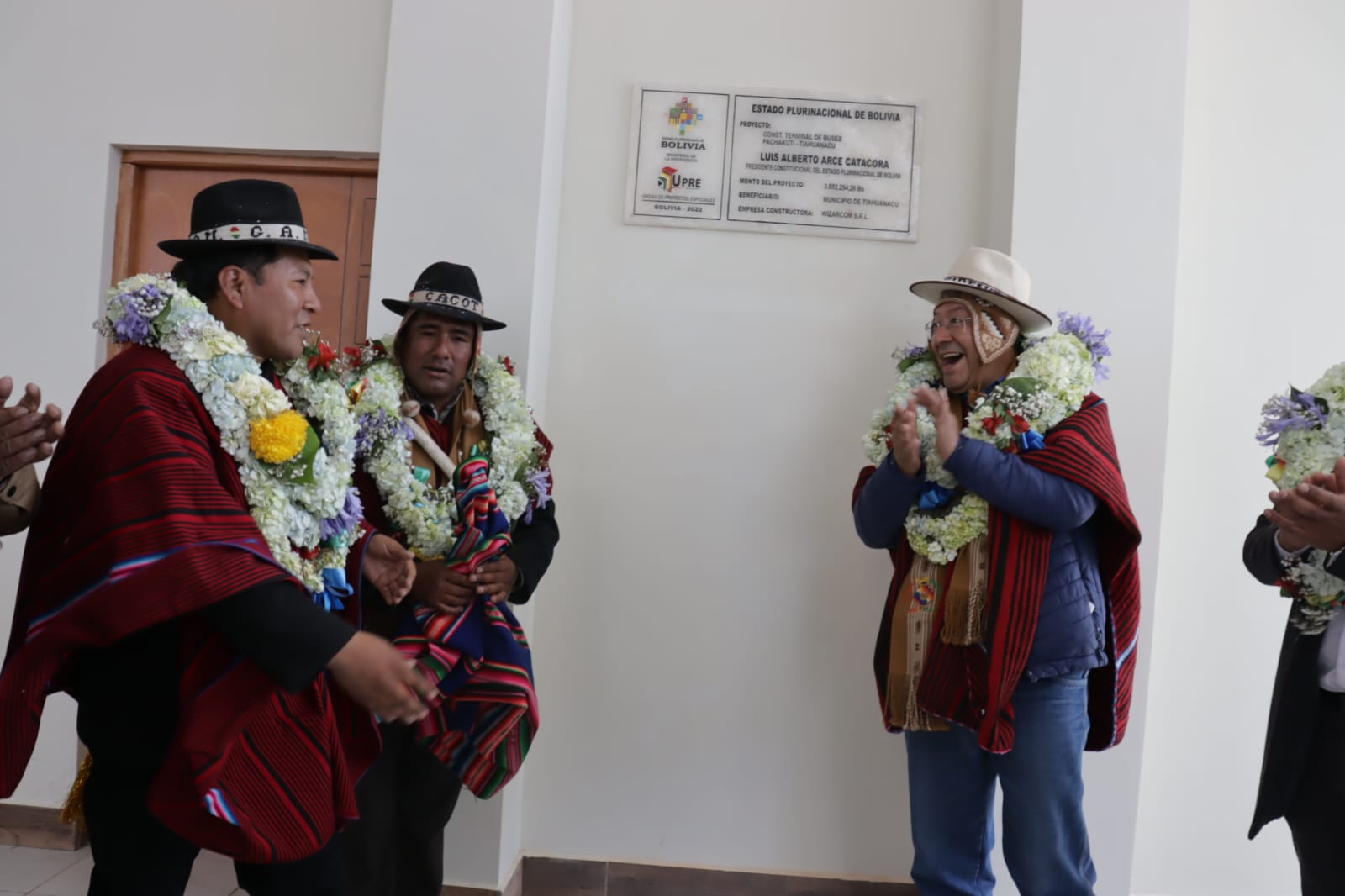 Presidente del Estado Luis Arce, entrega la Terminal de Buses Pachakuti en el municipio de Tiwanaku