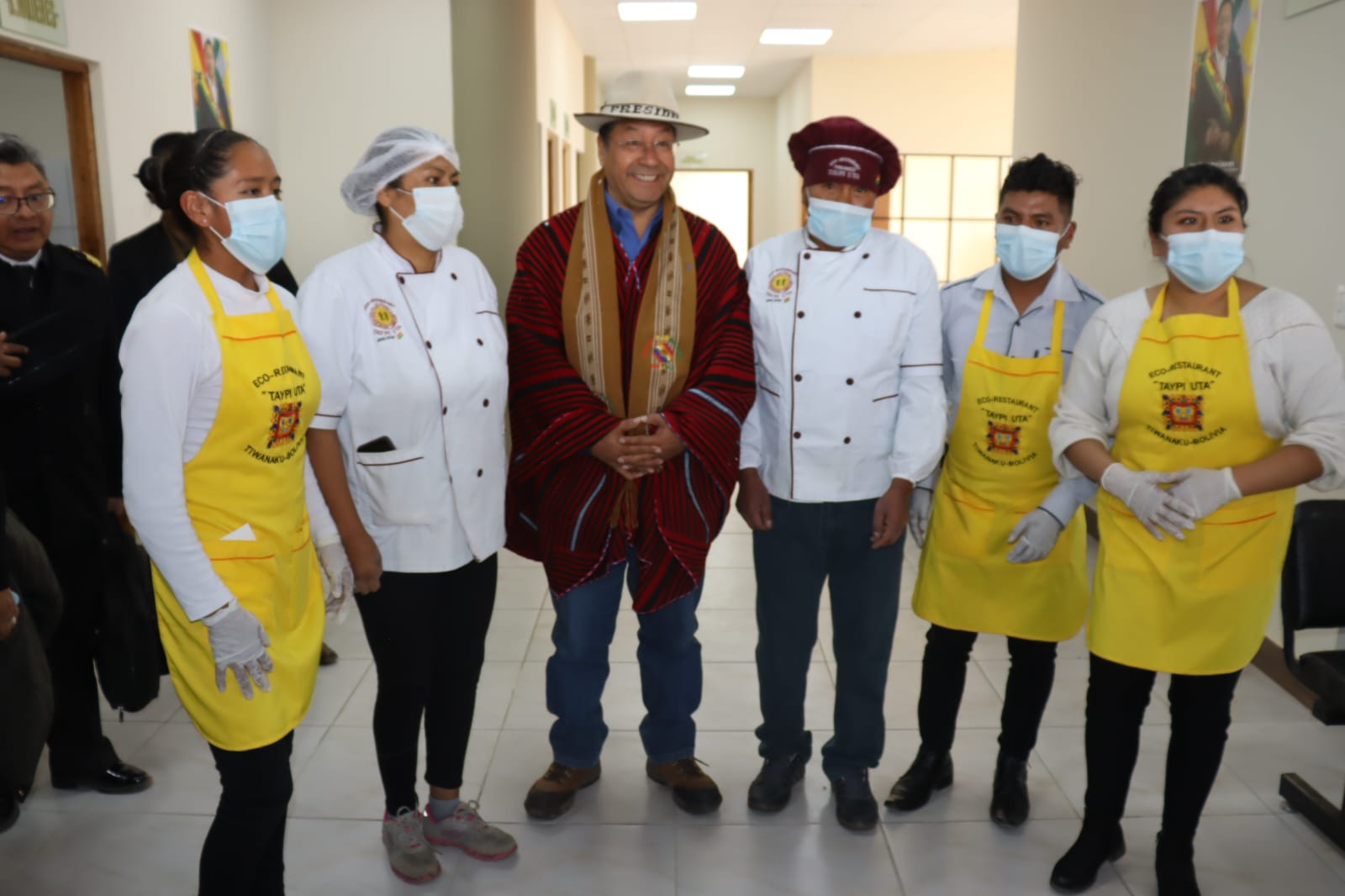 Presidente del Estado Luis Arce, entrega la Terminal de Buses Pachakuti en el municipio de Tiwanaku, La Paz. Fuente: Comunicación Presidencial