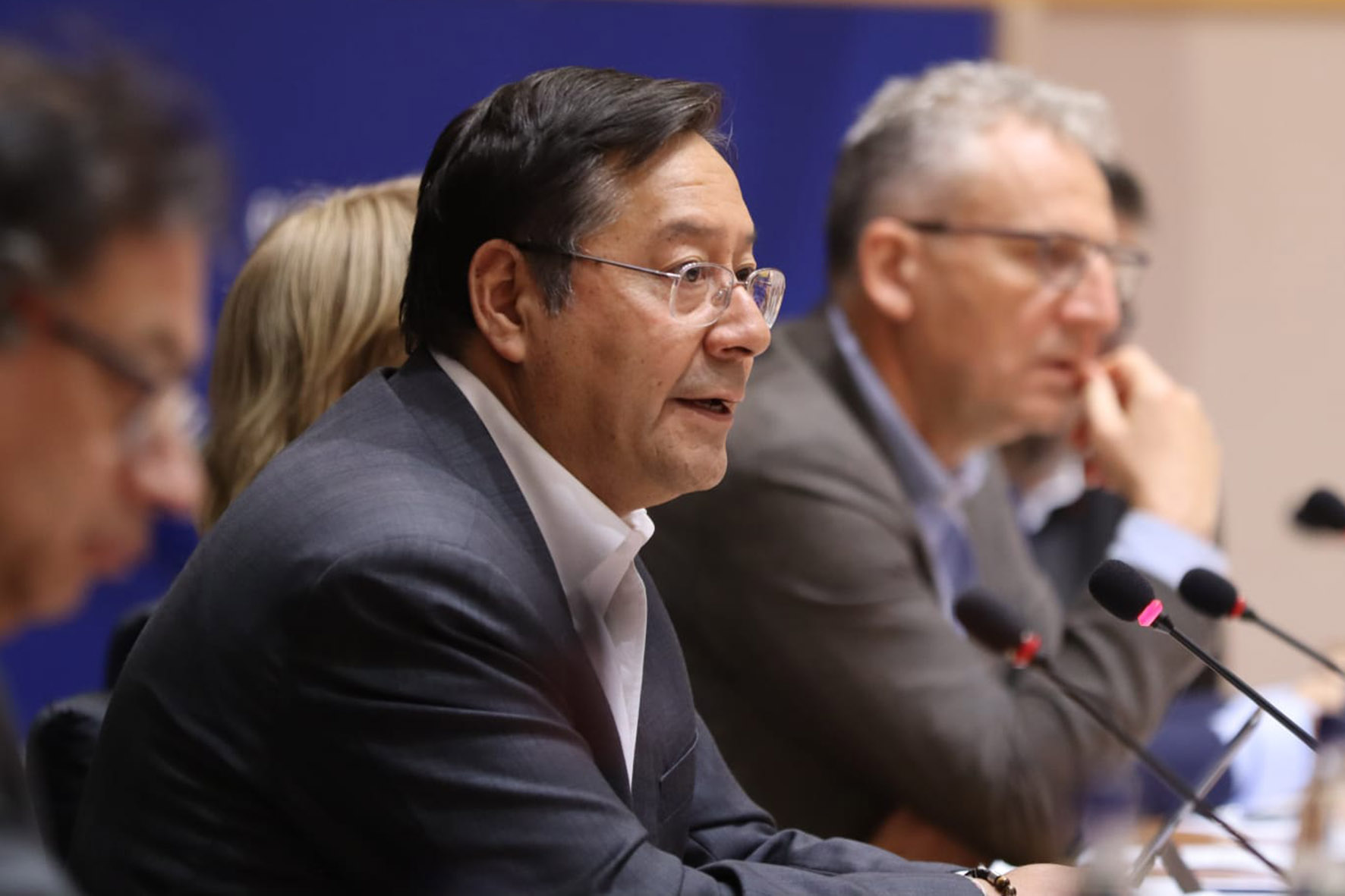 Presidente del Estado Luis Arce, participa en la clausura de la Cumbre de los Pueblos 2023, en Bruselas, Bélgica. Fuente: Comunicación Presidencial