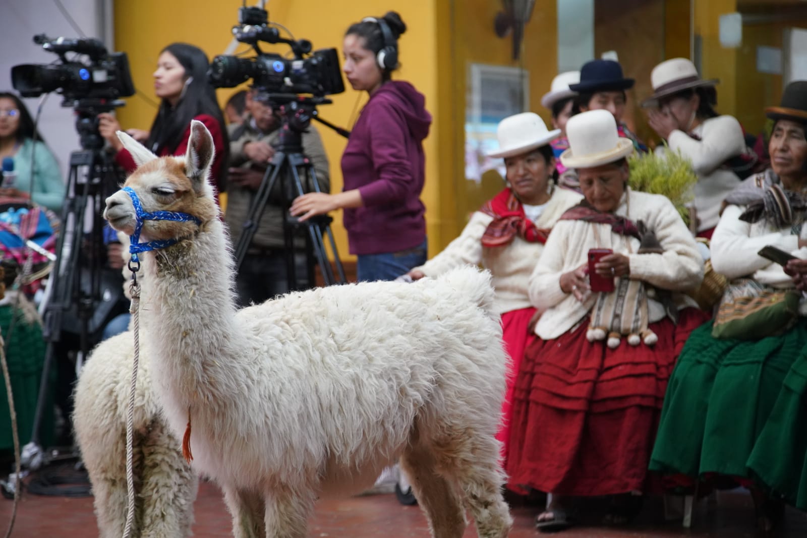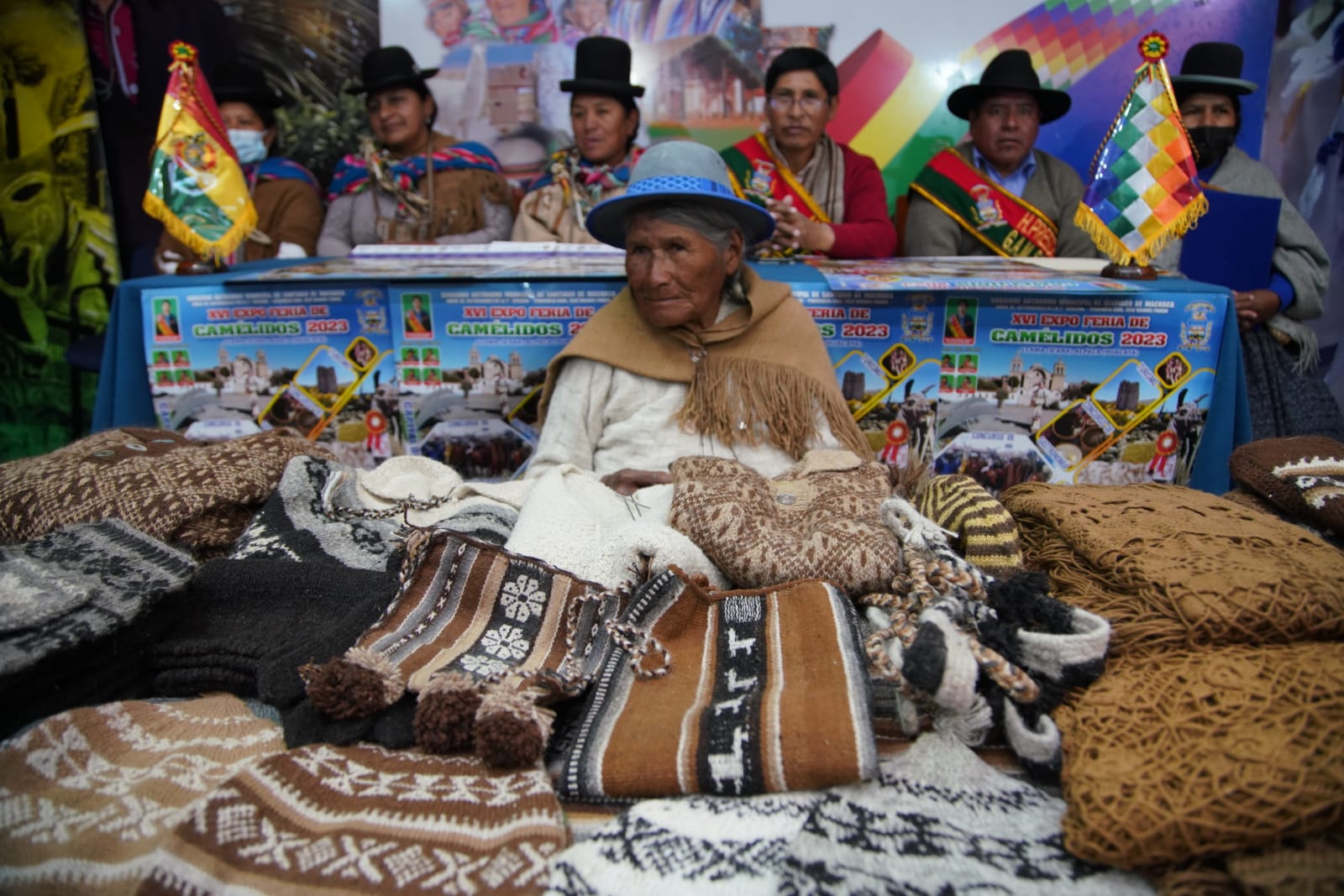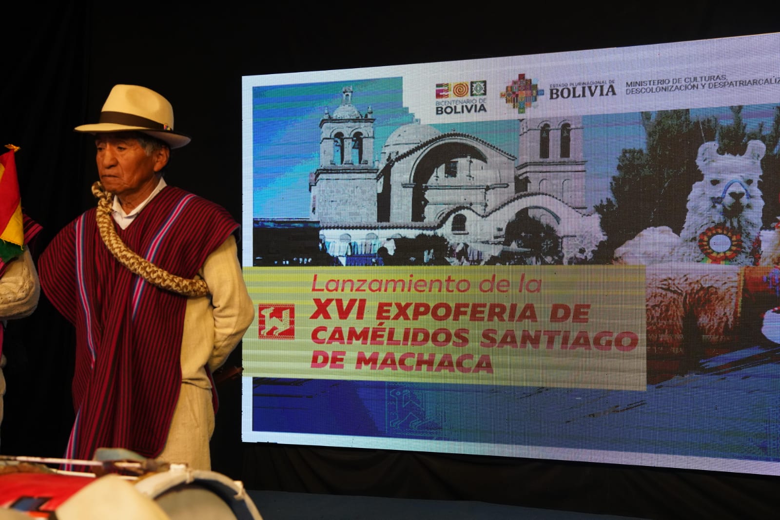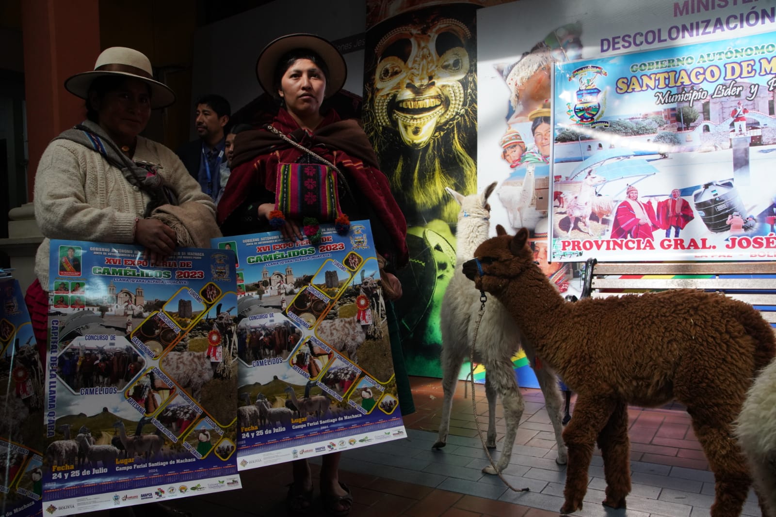 Lanzamiento de la XVI Expo feria de Camélidos de Santiago de Machaca, en el patio del Ministerio de Culturas