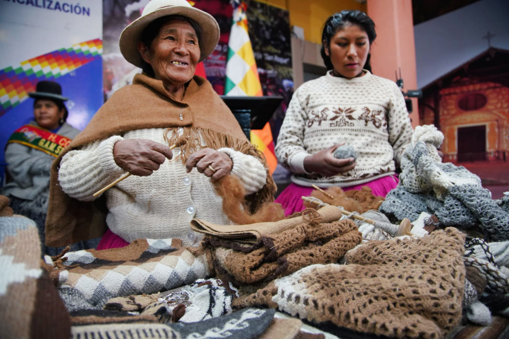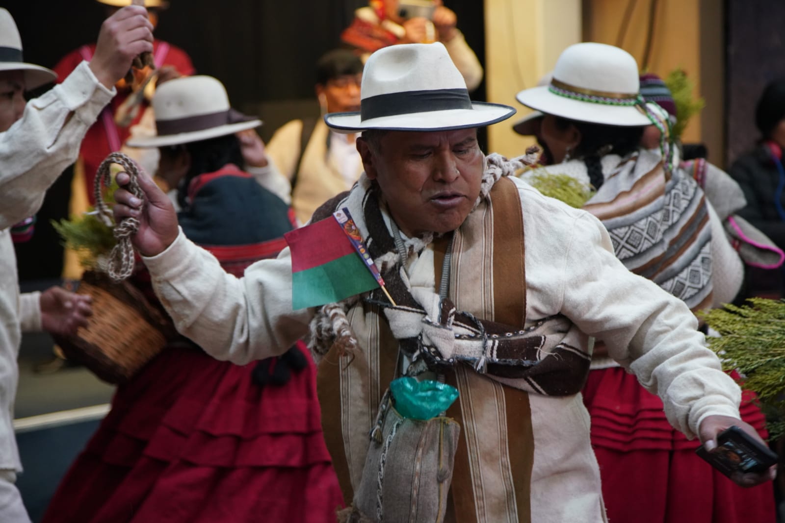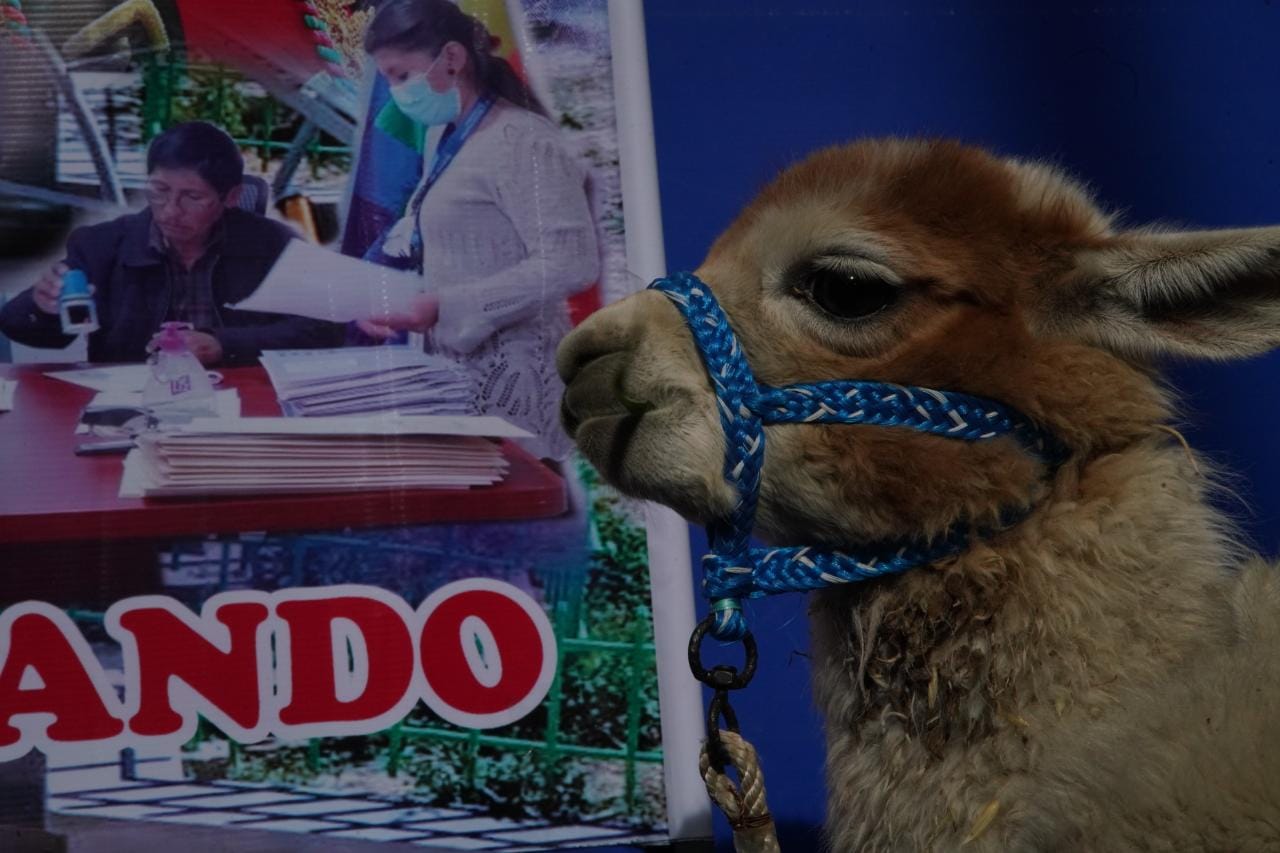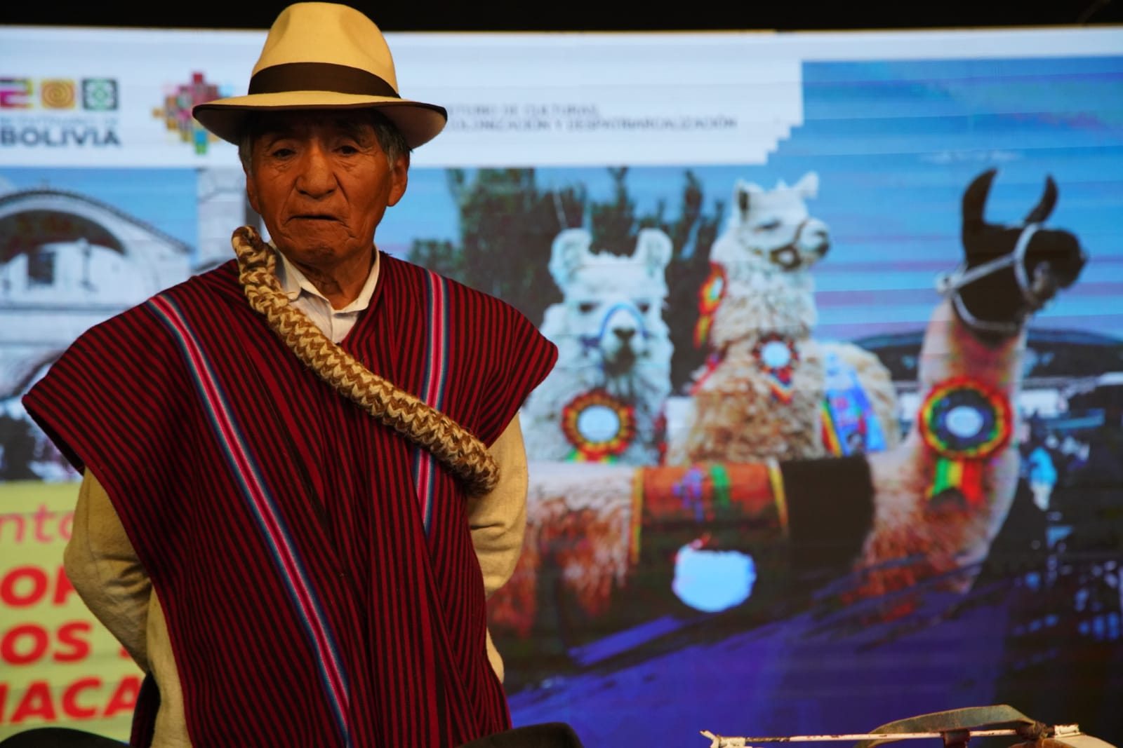 Lanzamiento de la XVI Expo feria de Camélidos de Santiago de Machaca, en el patio del Ministerio de Culturas