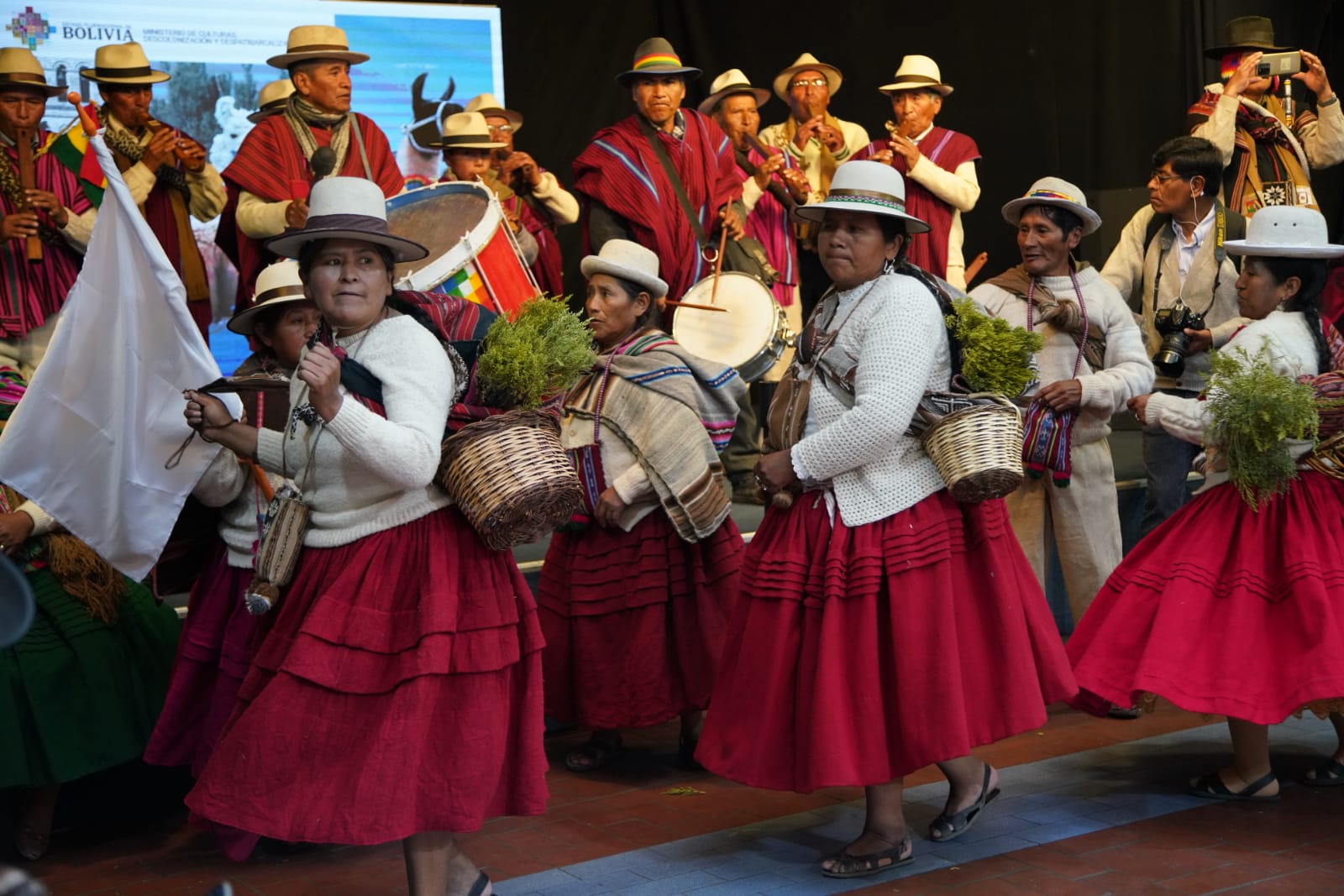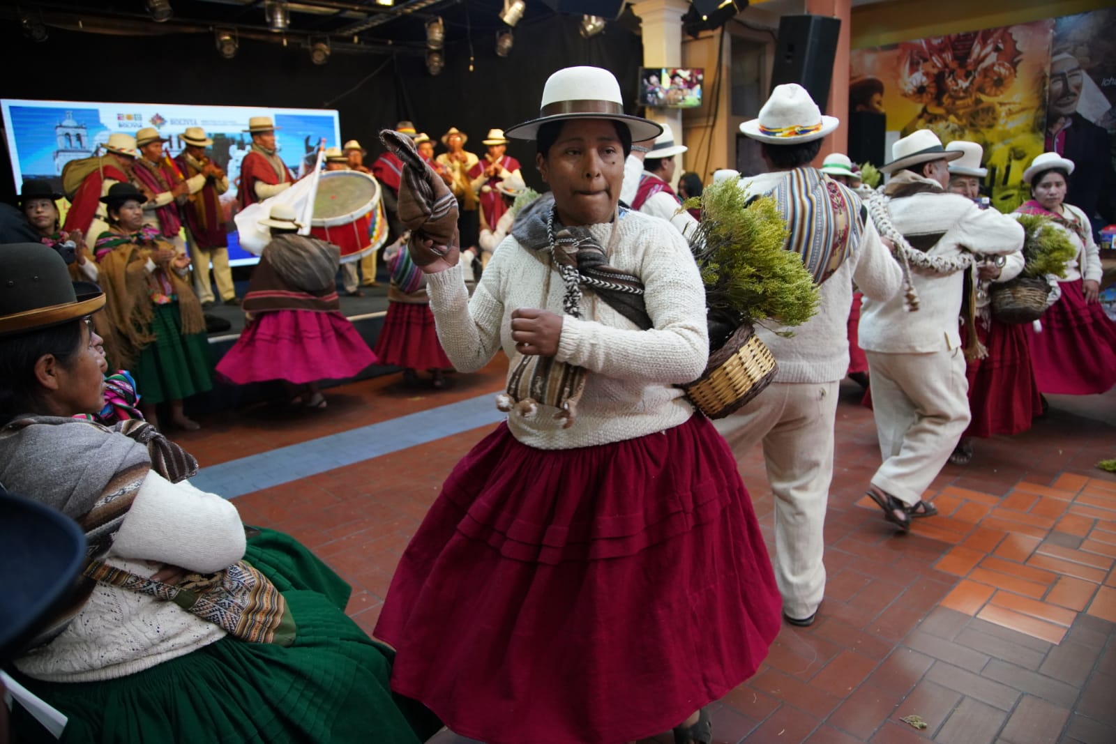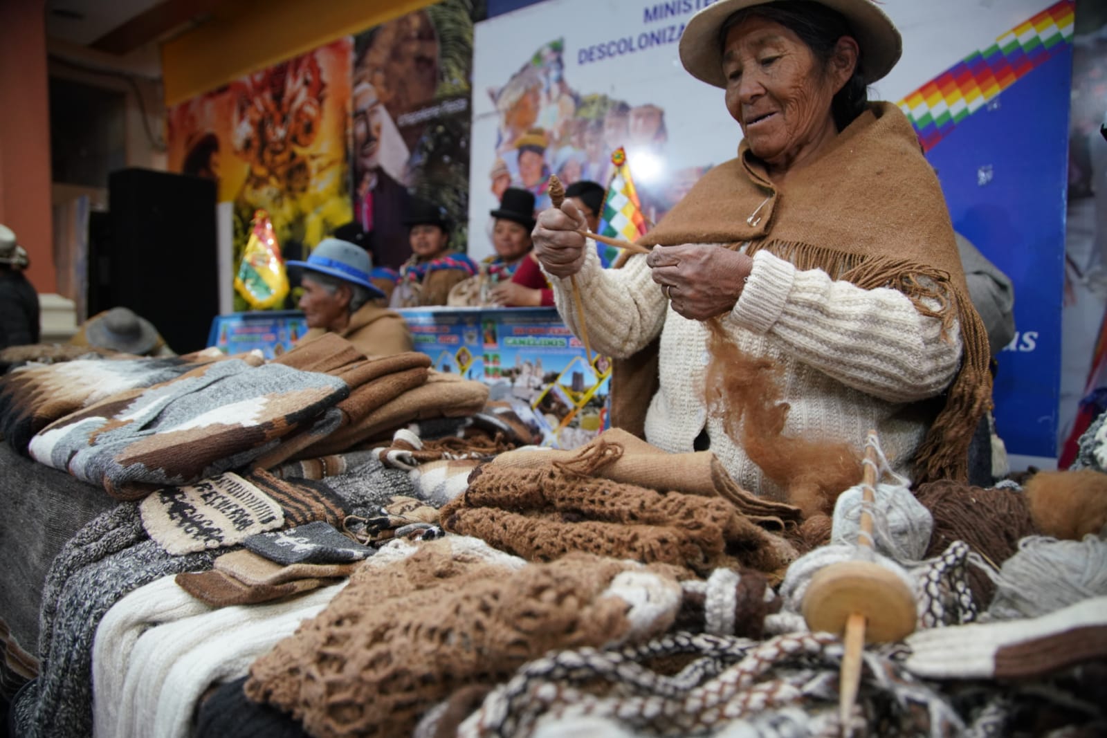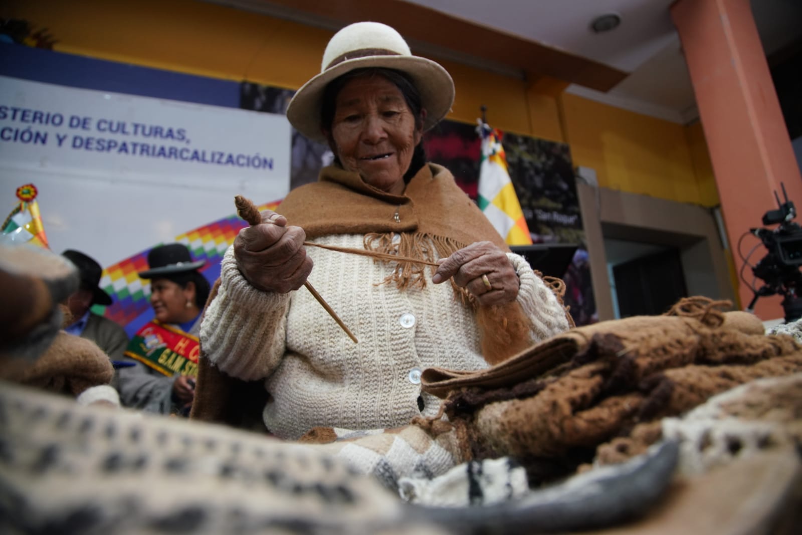 Lanzamiento de la XVI Expo feria de Camélidos de Santiago de Machaca, en el patio del Ministerio de Culturas. Fotos: Jorge Mamani