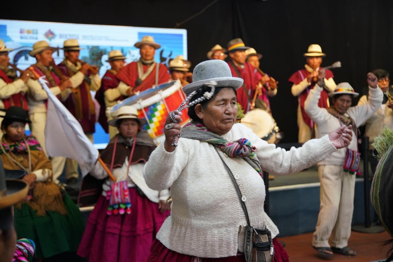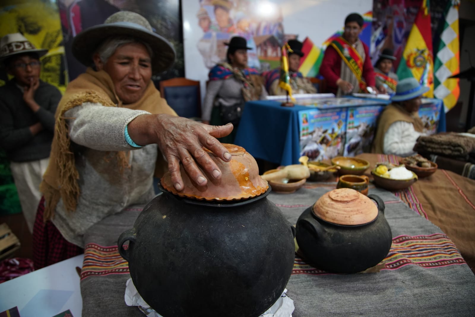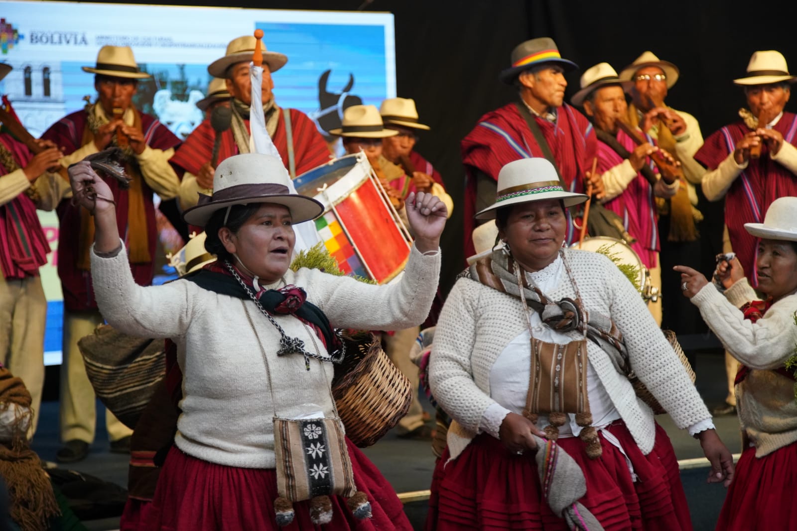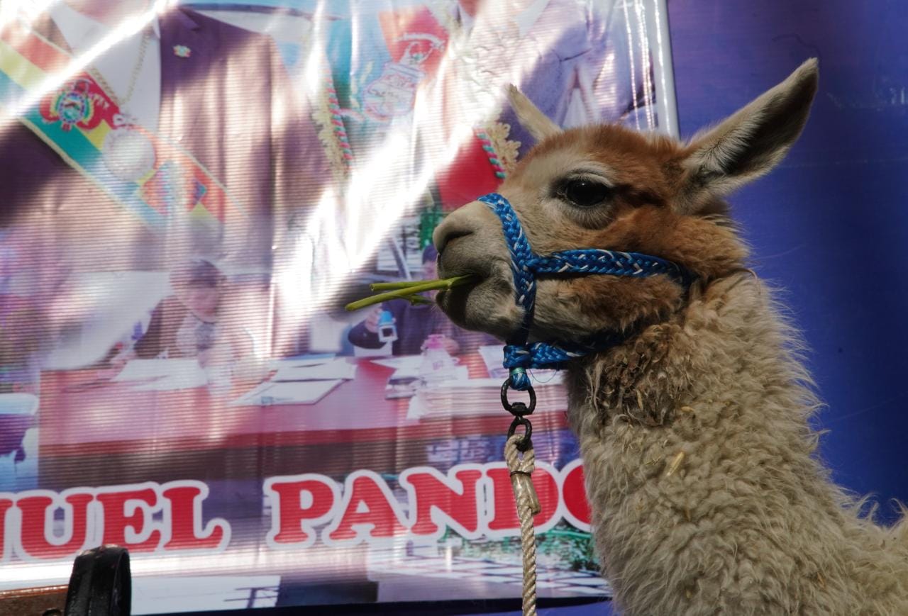 Lanzamiento de la XVI Expo feria de Camélidos de Santiago de Machaca, en el patio del Ministerio de Culturas. Fotos: Jorge Mamani