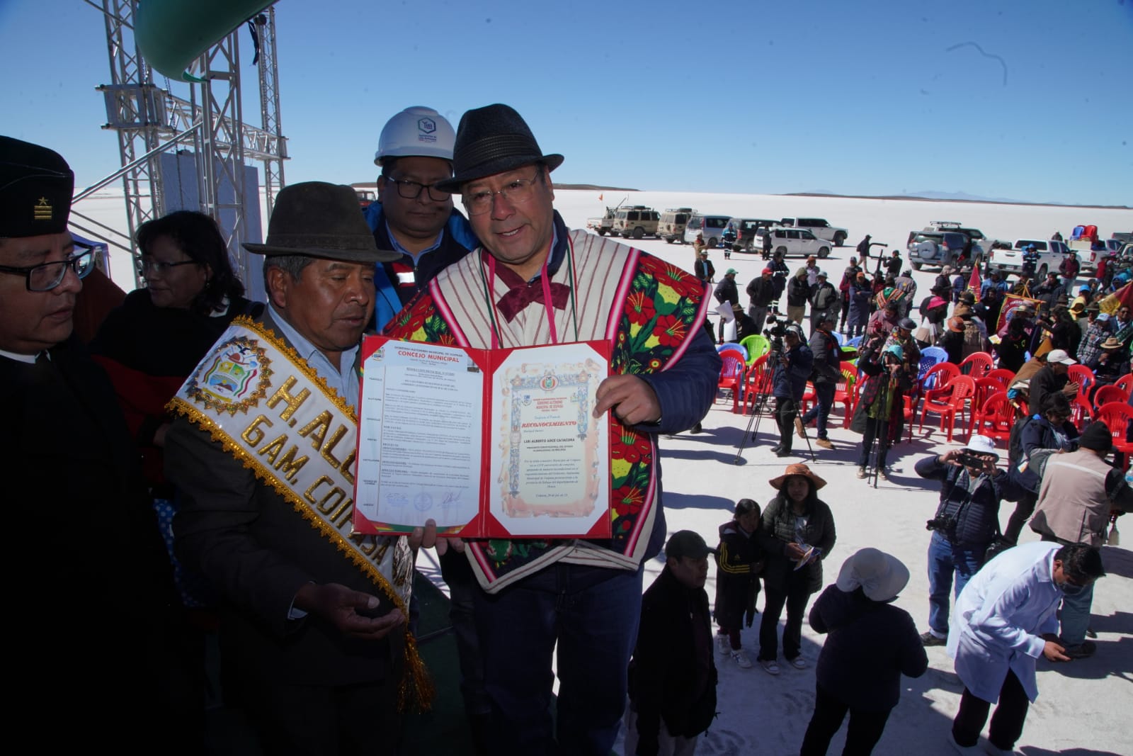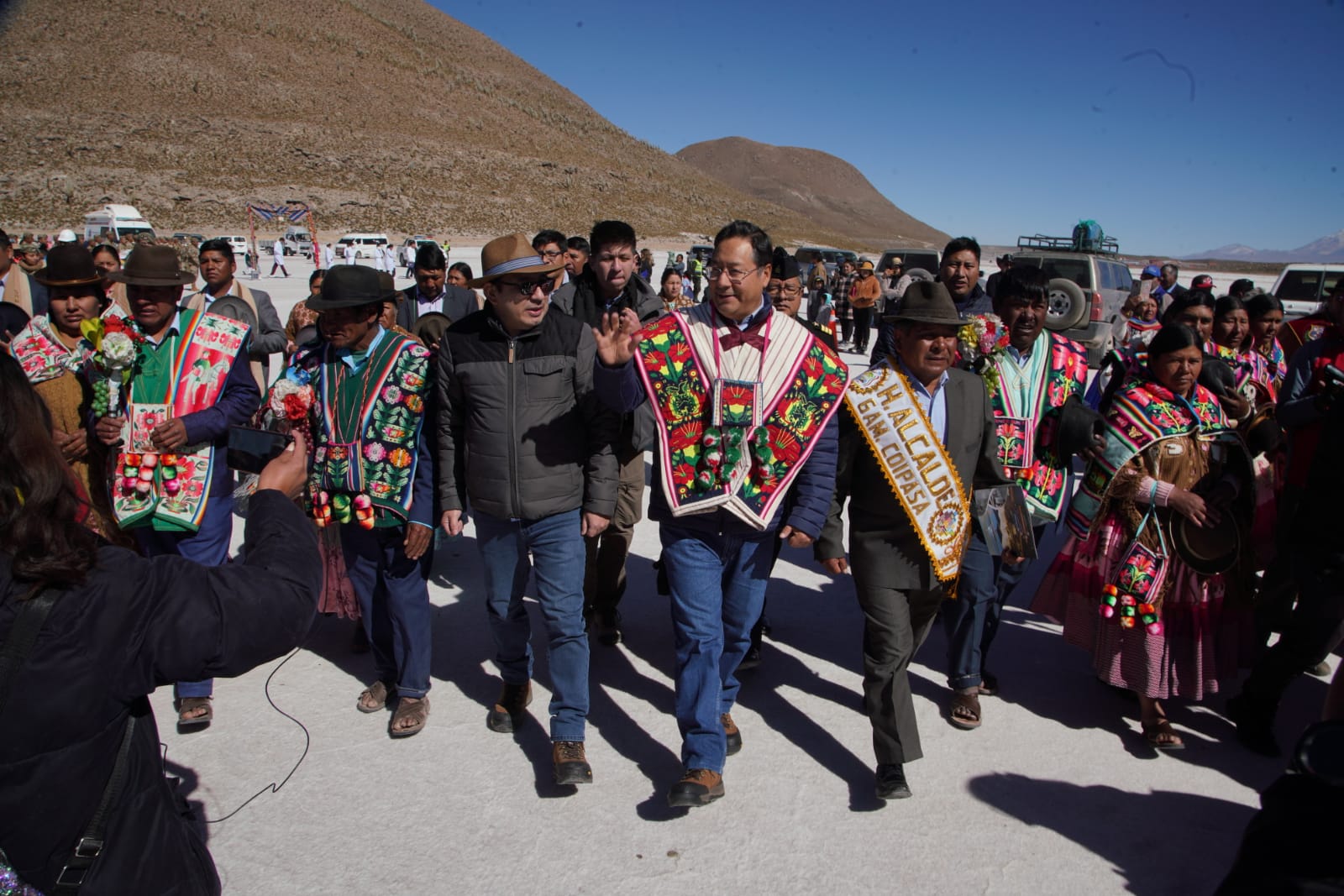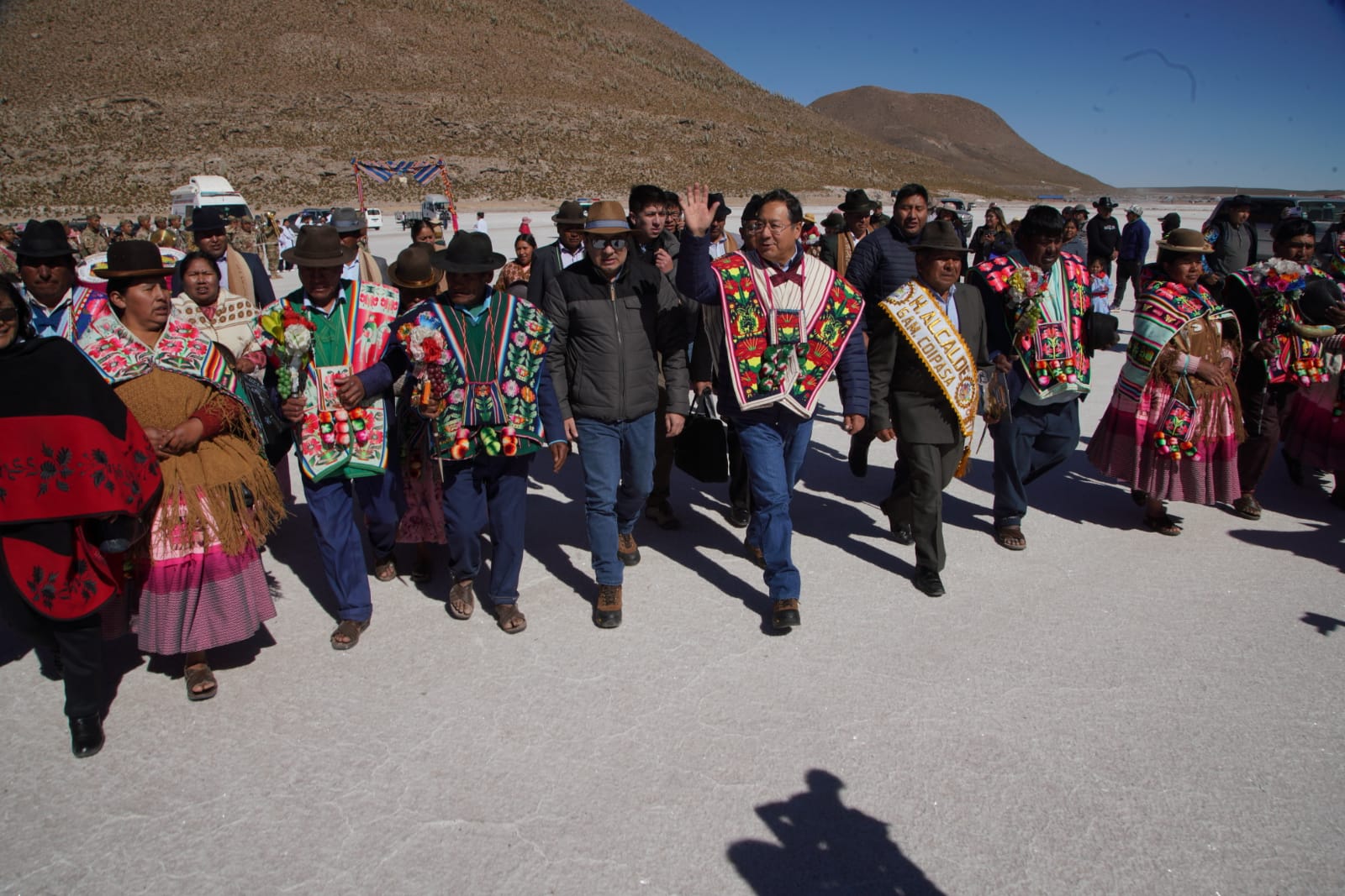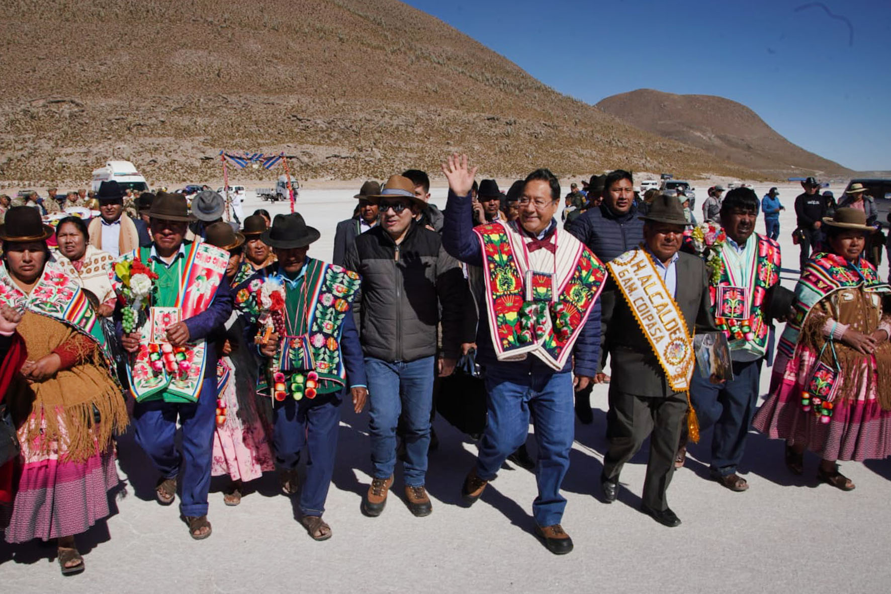Presidente del Estado Luis Arce, anuncia en el municipio de Coipasa, Oruro, la cuantificación de reservas de litio que existe en Bolivia