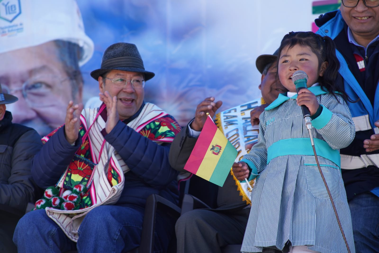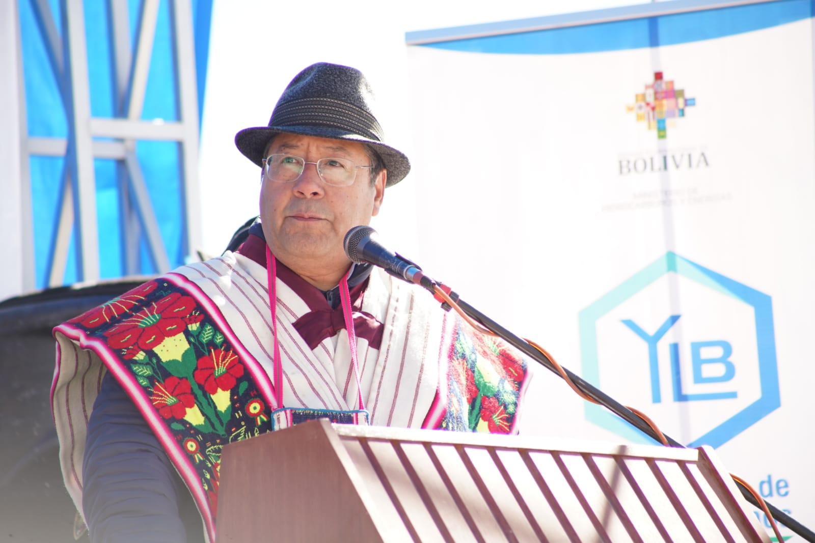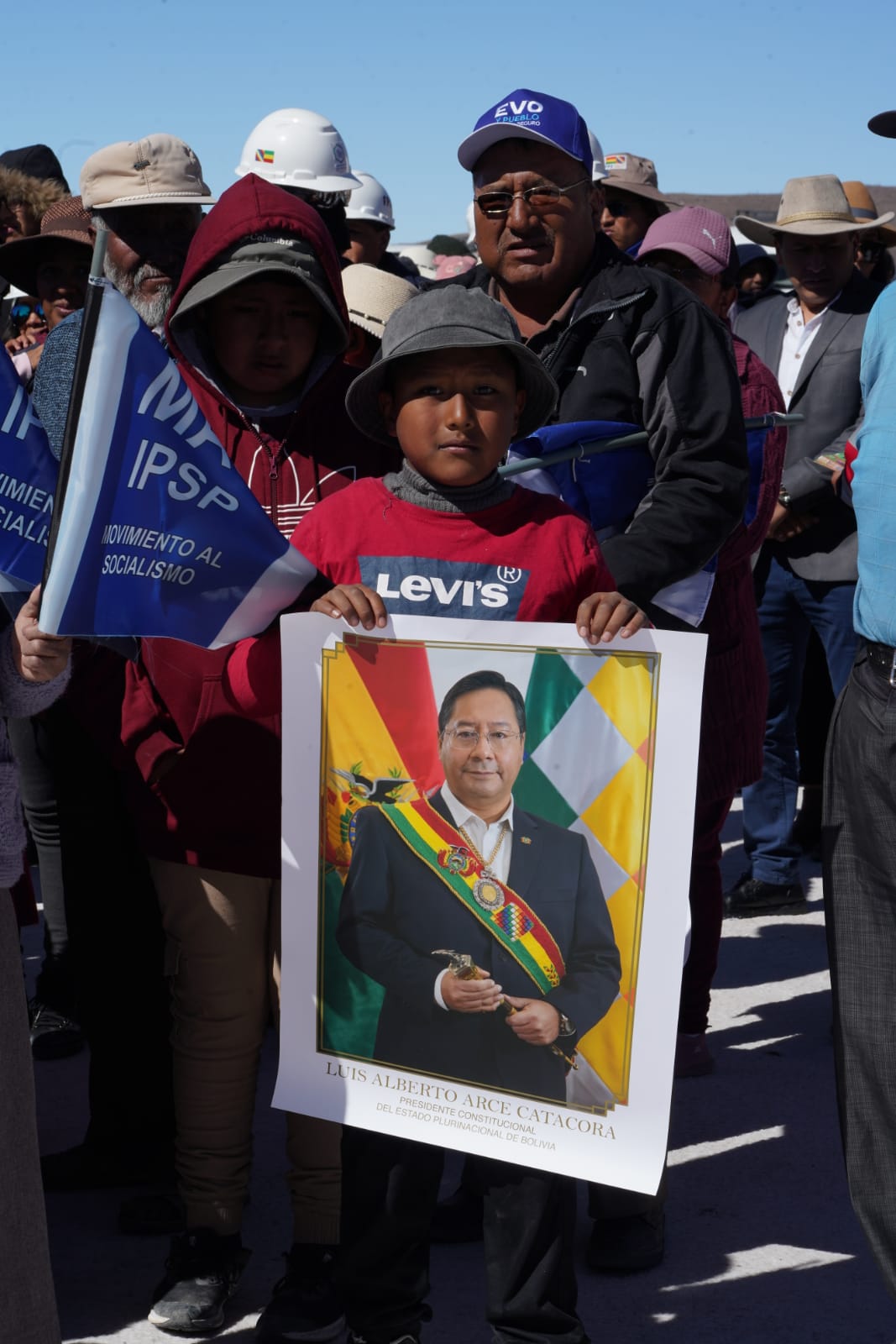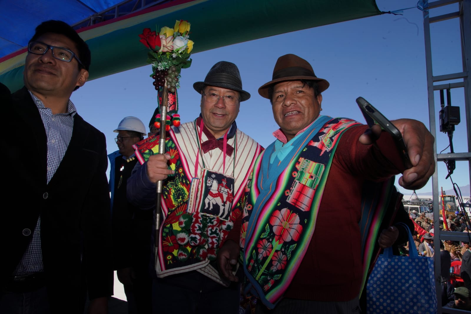 Presidente del Estado Luis Arce, anuncia en el municipio de Coipasa, Oruro, la cuantificación de reservas de litio que existe en Bolivia. Fuente: Comunicación Presidencial.