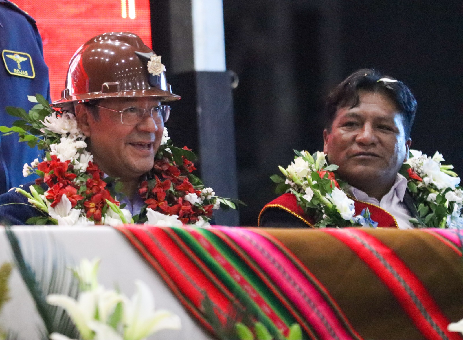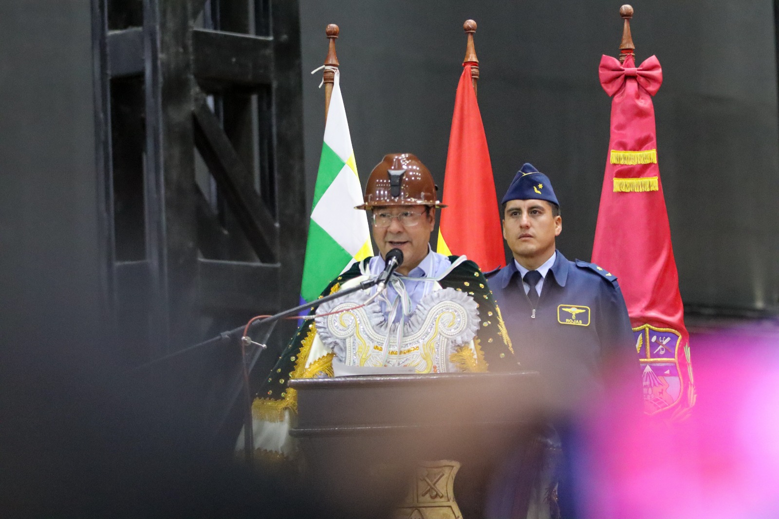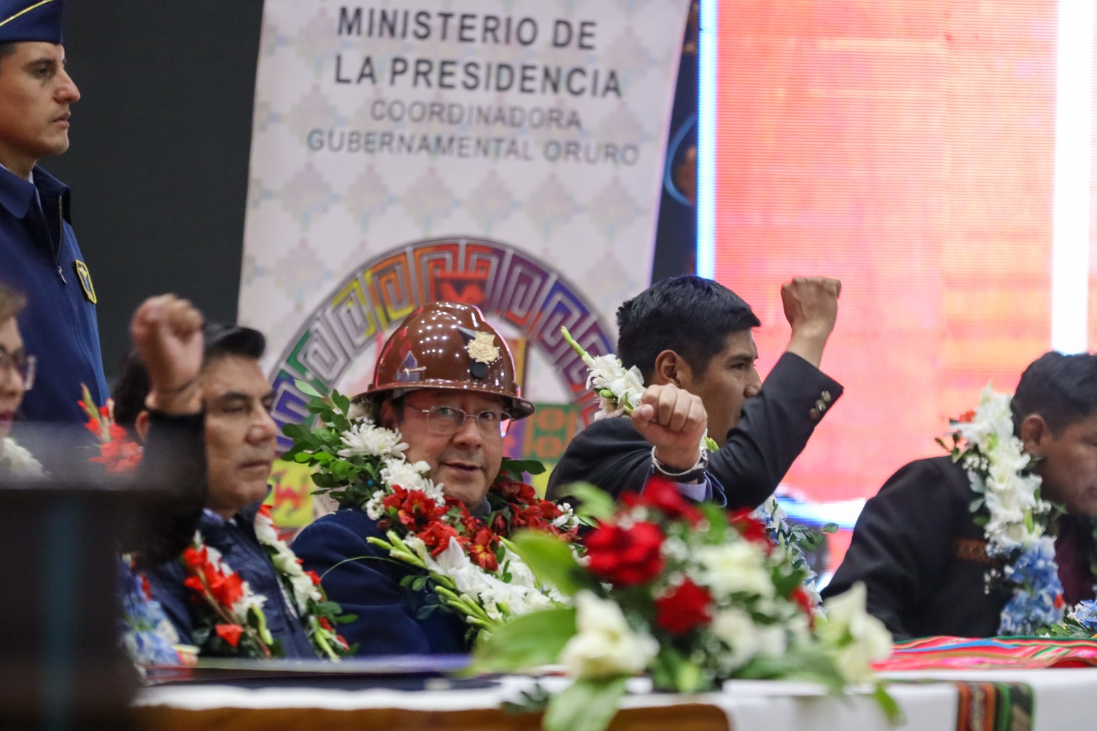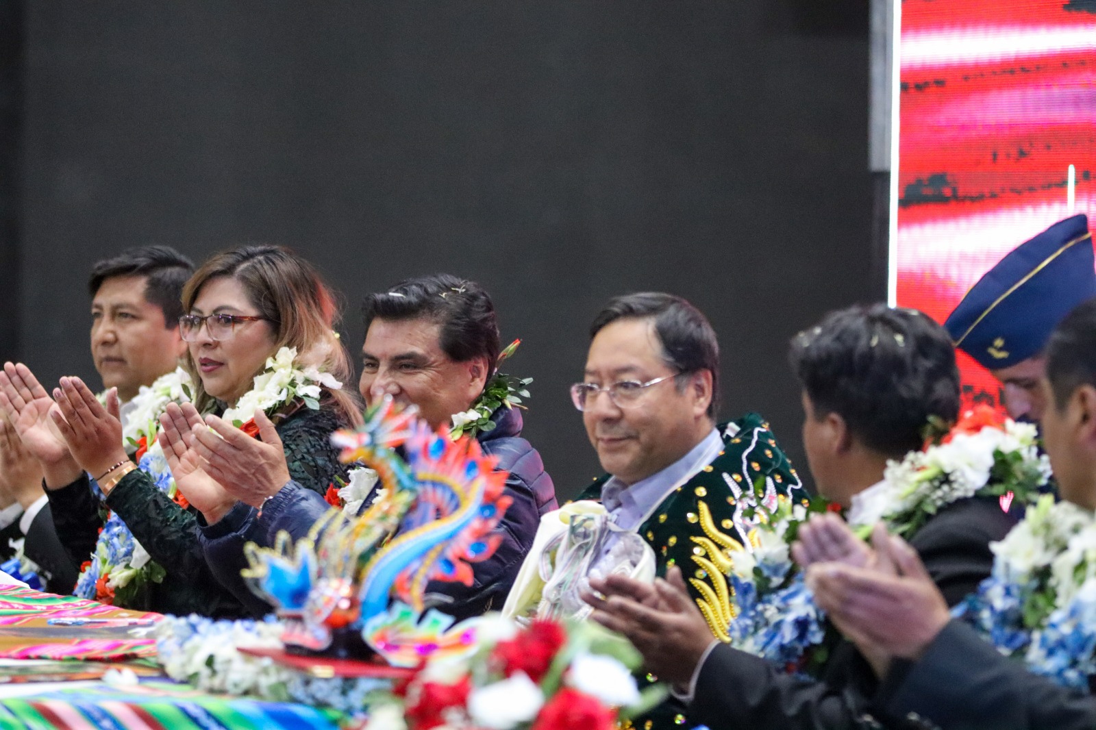 Presidente del Estado Luis Arce, participa del aniversario de la Federación Departamental de Juntas Vecinales de Oruro. Fuente: Comunicación Presidencial