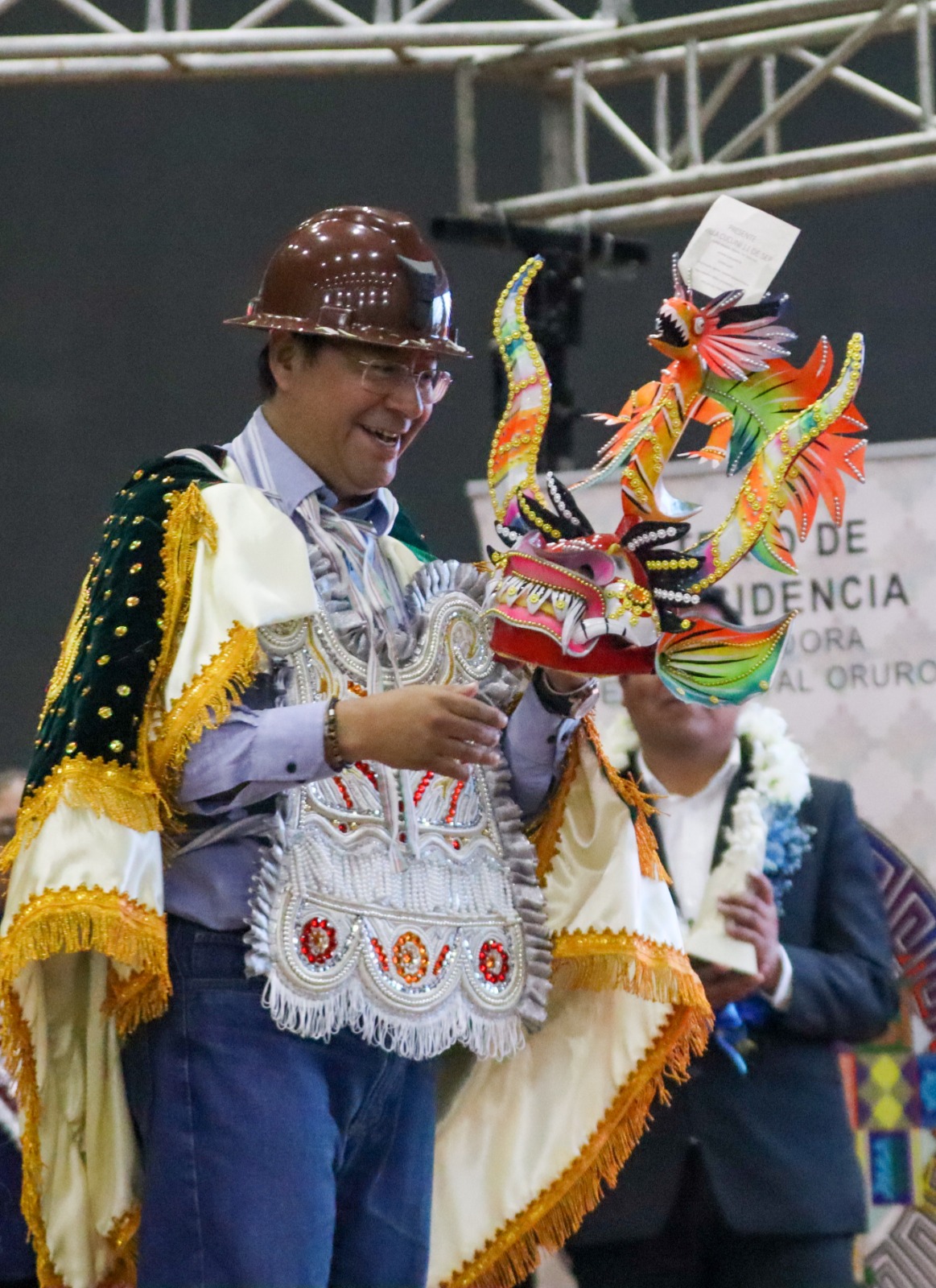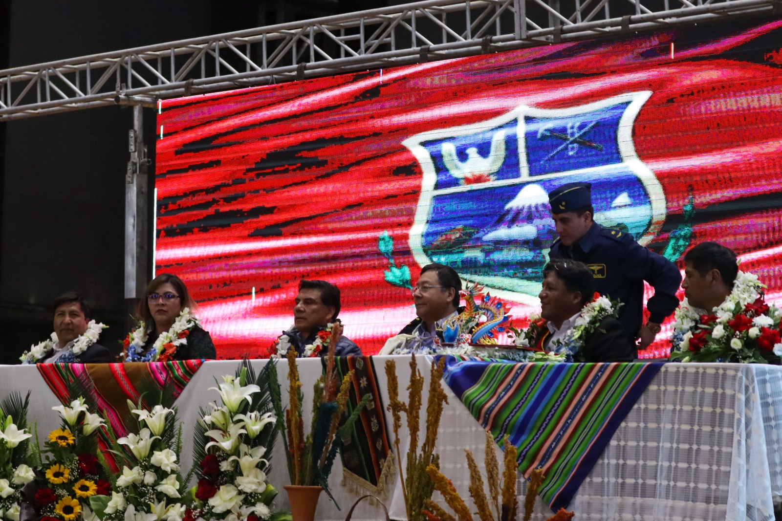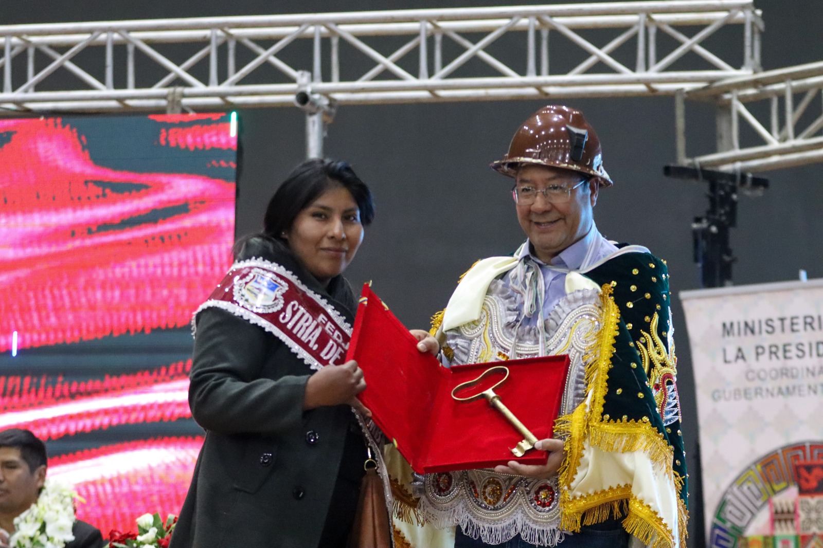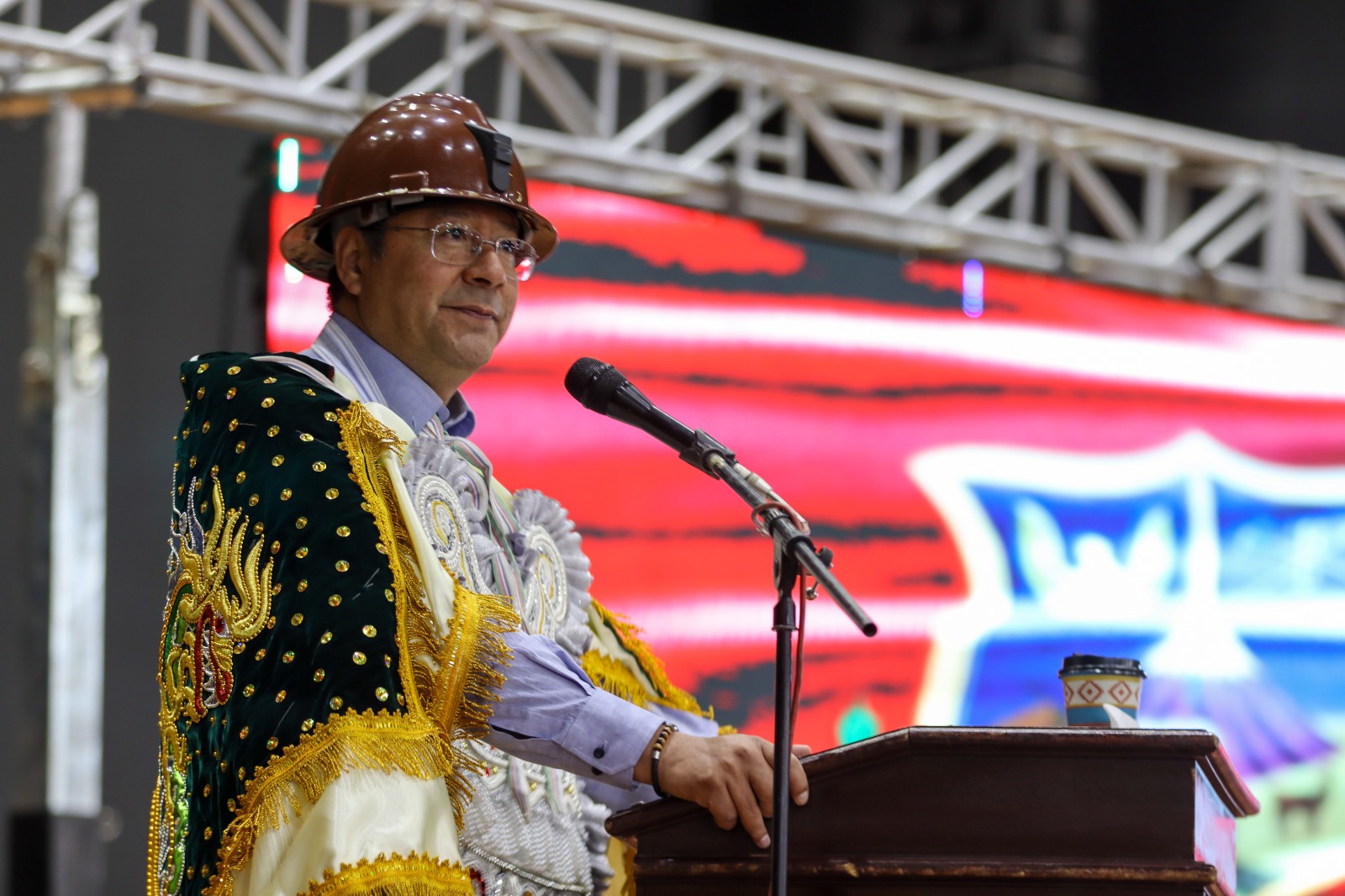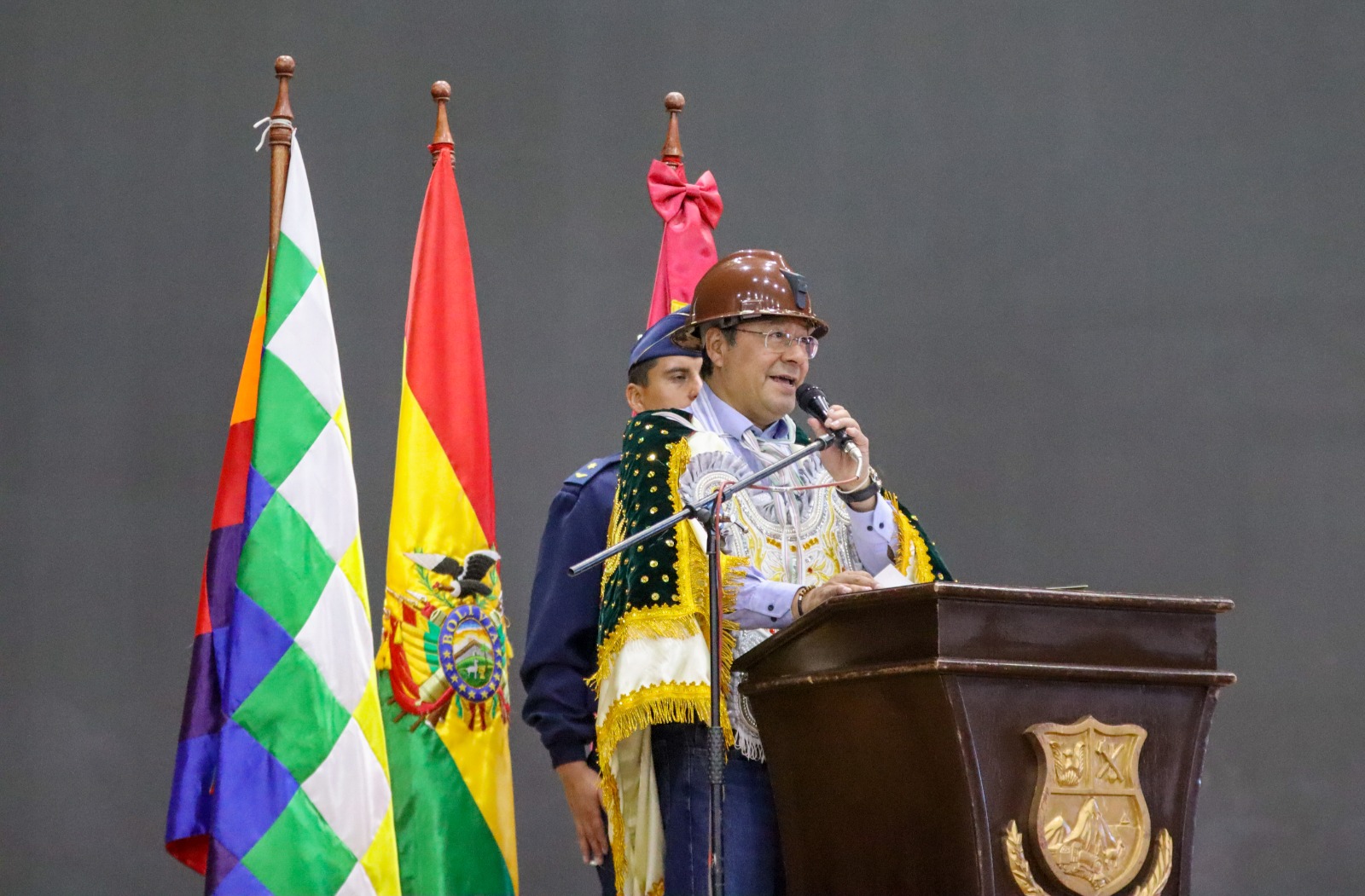 Presidente del Estado Luis Arce, participa del aniversario de la Federación Departamental de Juntas Vecinales de Oruro. Fuente: Comunicación Presidencial