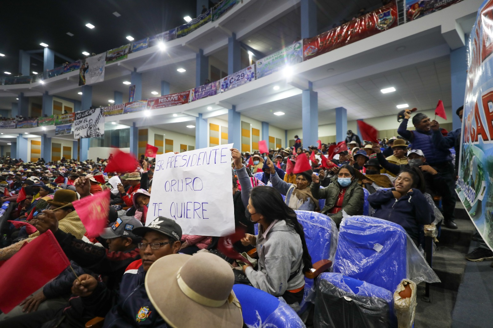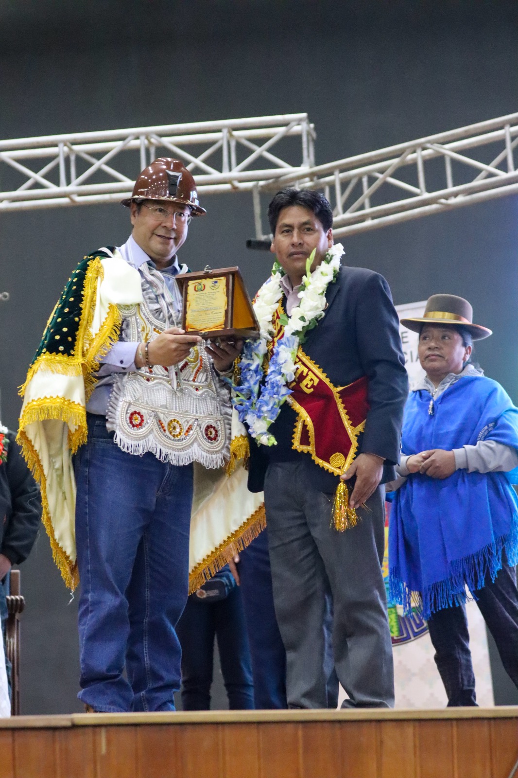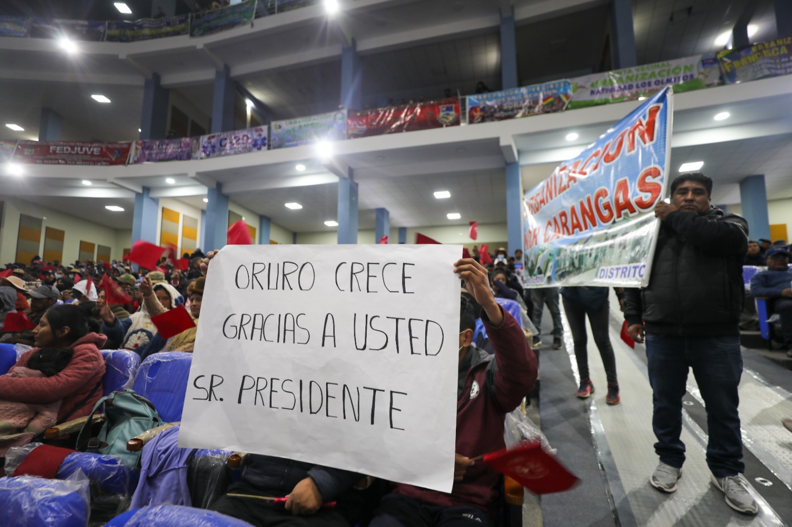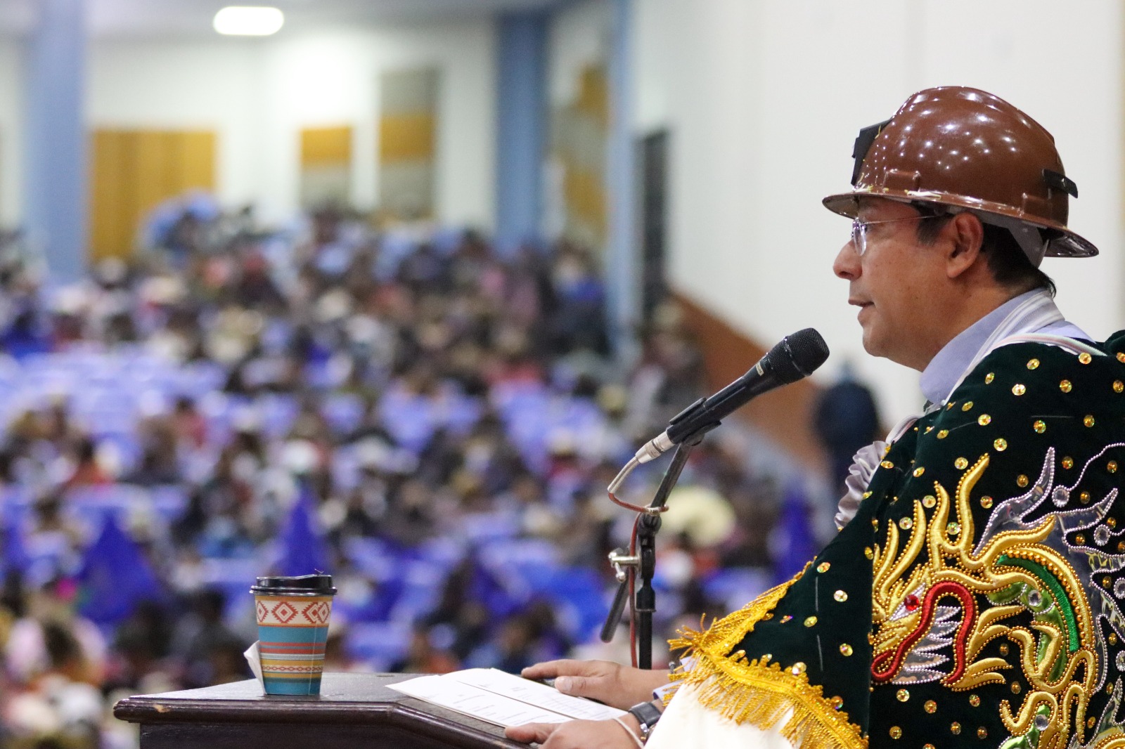 Presidente del Estado Luis Arce, participa del aniversario de la Federación Departamental de Juntas Vecinales de Oruro. Fuente: Comunicación Presidencial