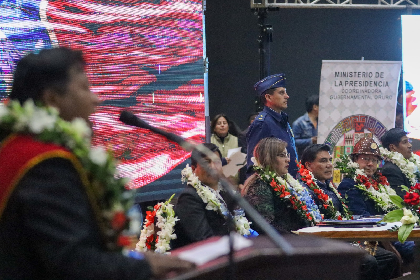 Presidente del Estado Luis Arce, participa del aniversario de la Federación Departamental de Juntas Vecinales de Oruro