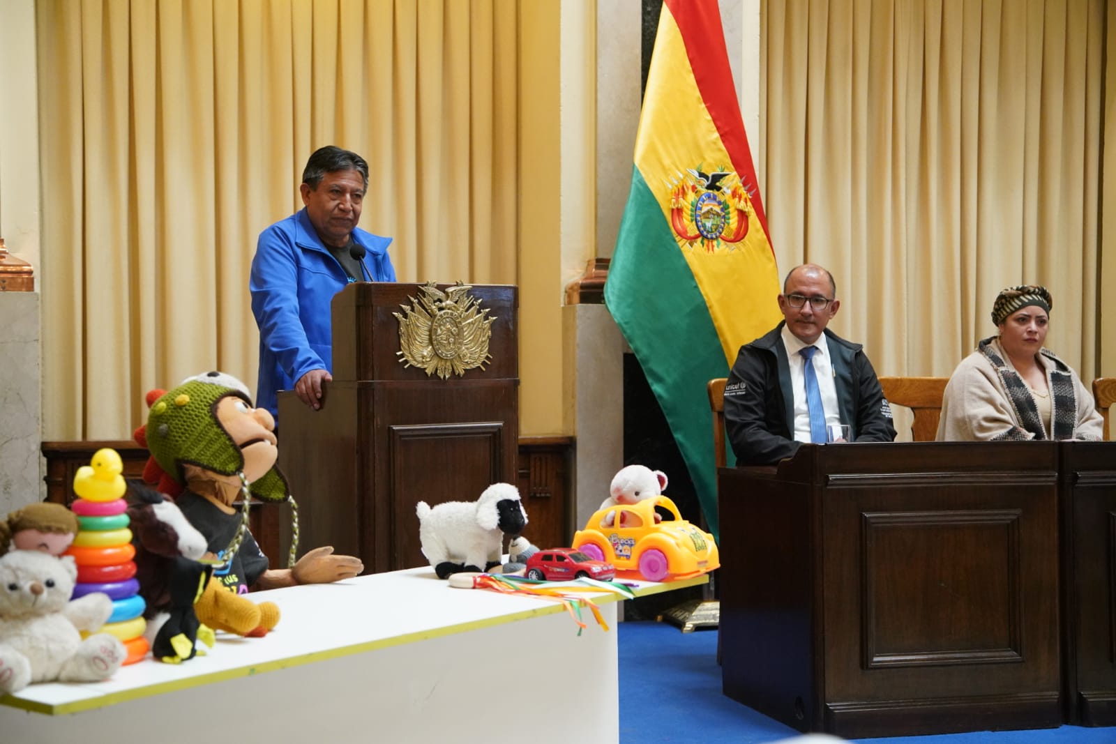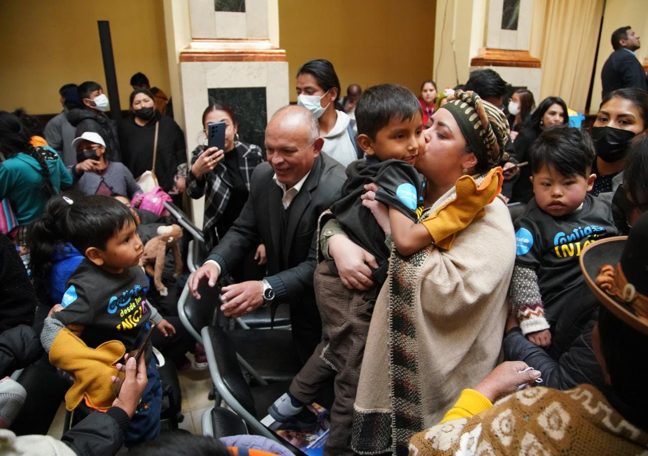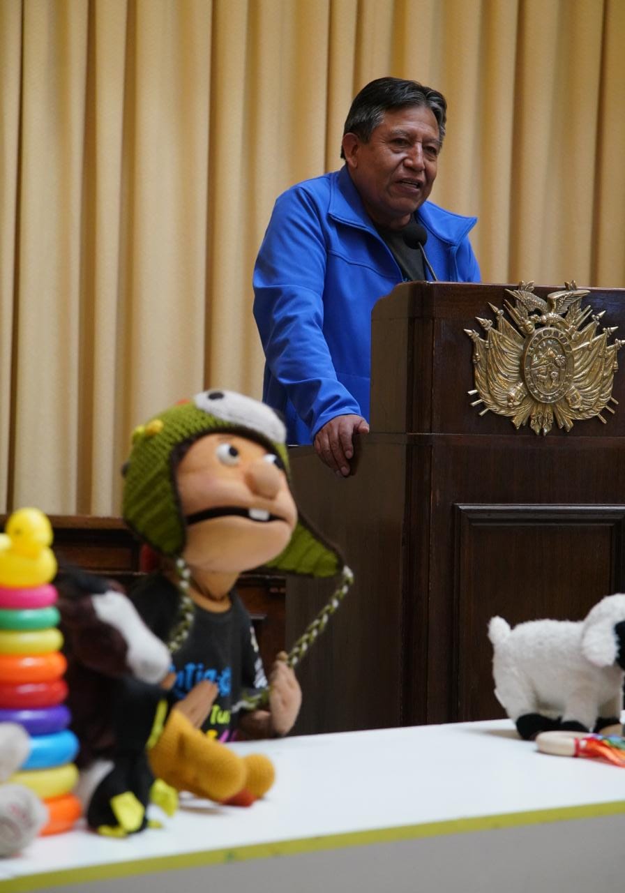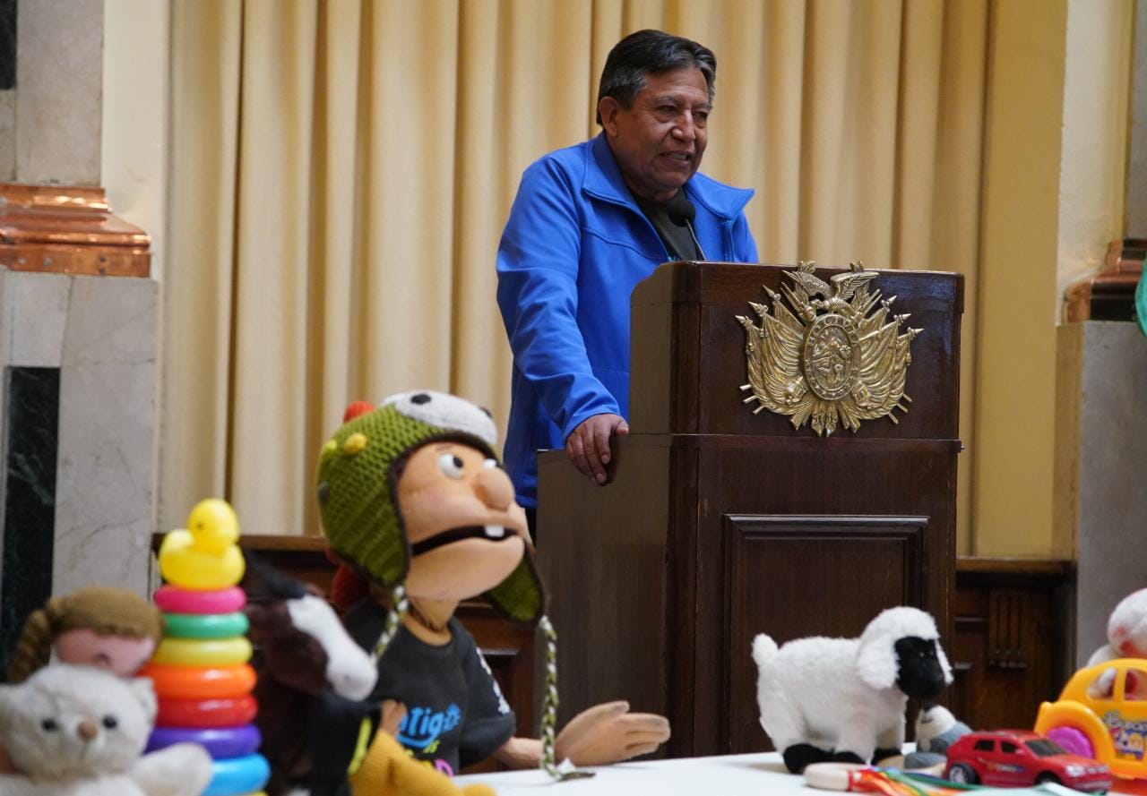 Presentación de la Política Pública Plurinacional para el Desarrollo Integral de la Primera Infancia, participa el Vicepresidente David Choquehuanca, la ministra de la Presidencia, María Nela Prada, el ministro de Justicia, Iván Lima. Fotos:Jorge Mamani