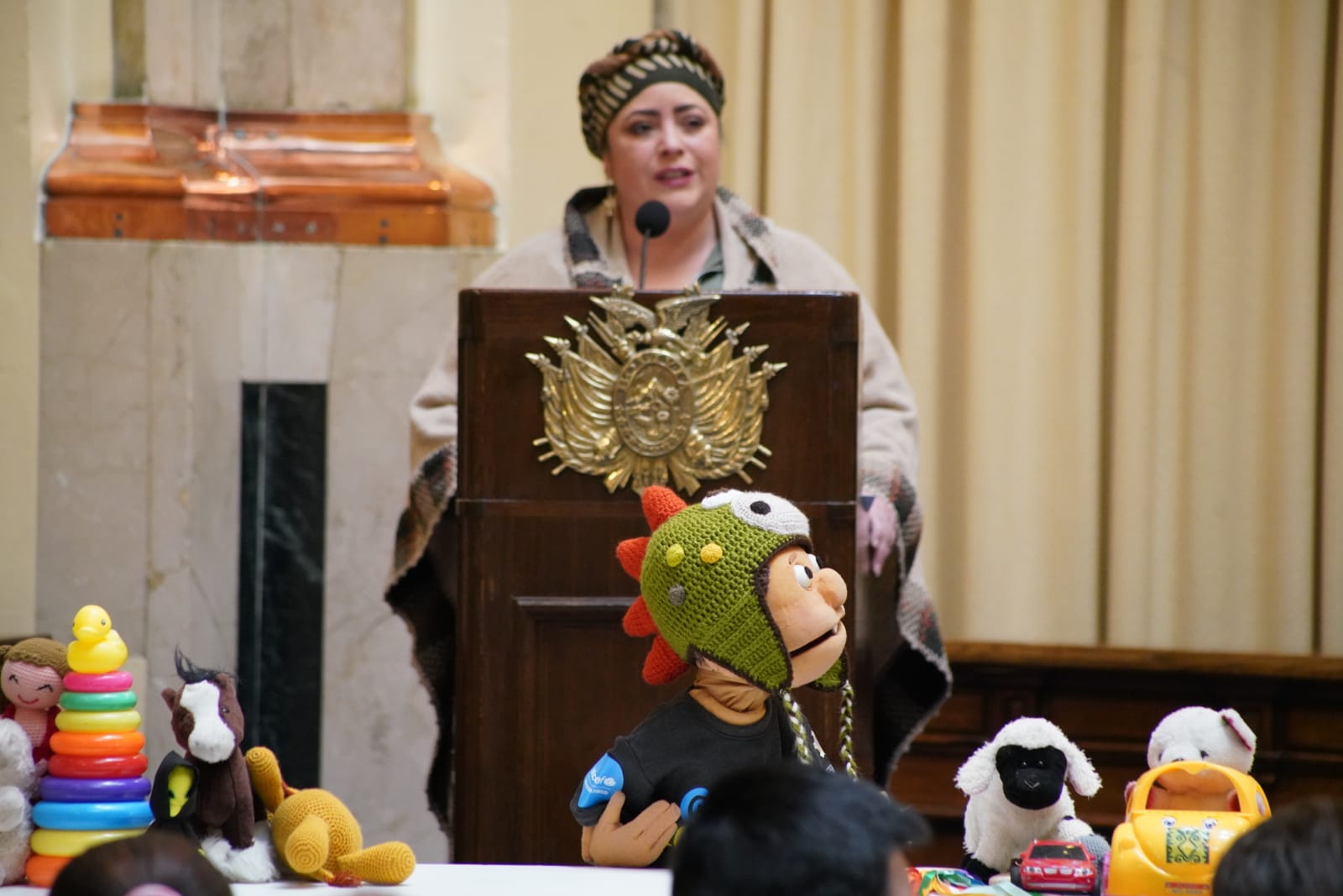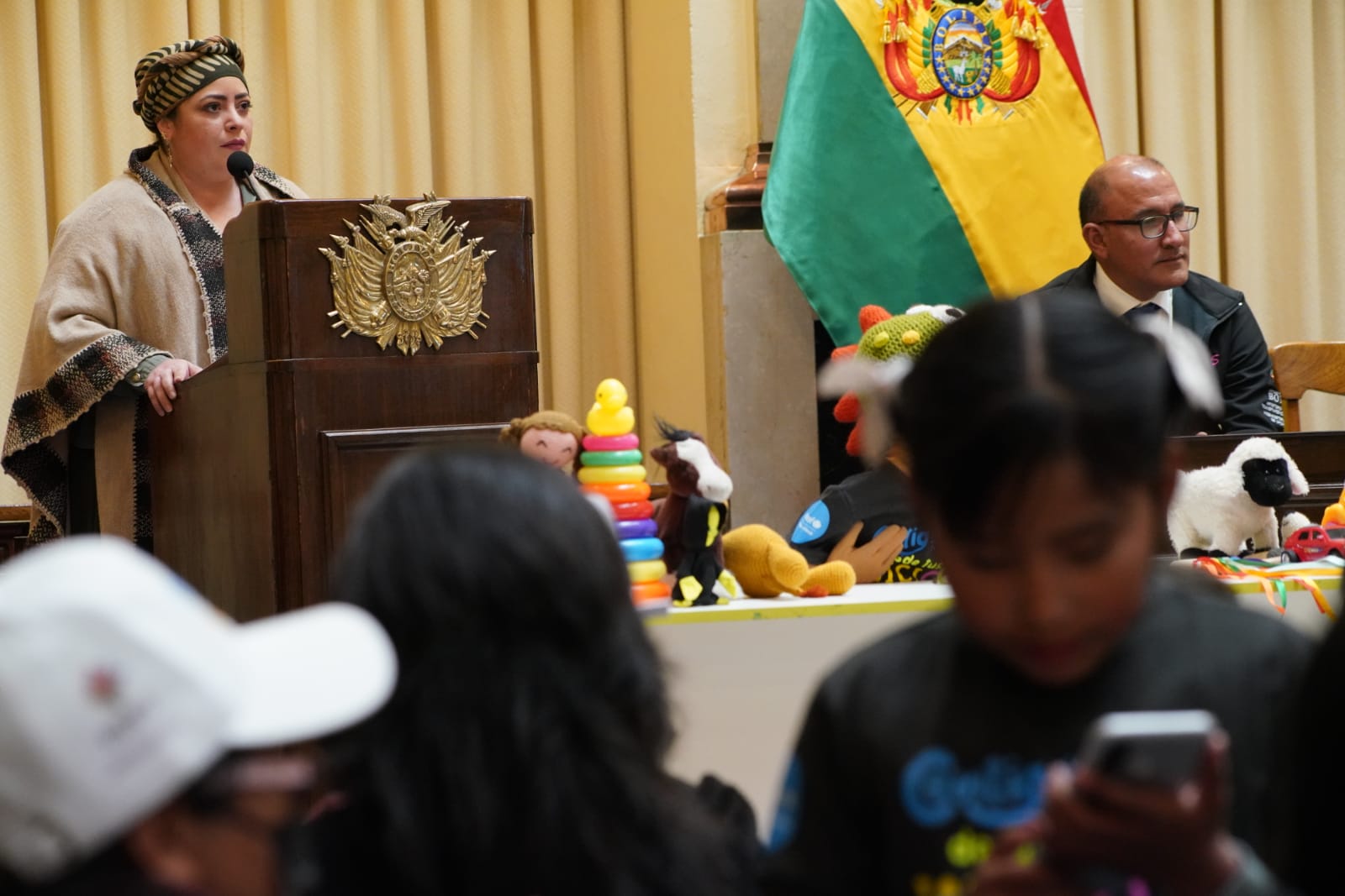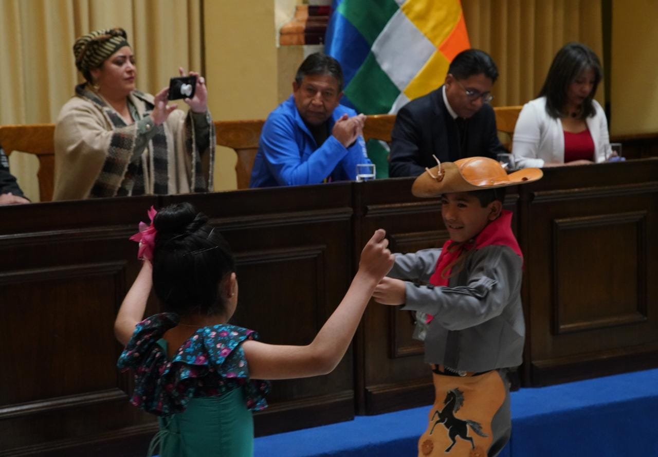 Presentación de la Política Pública Plurinacional para el Desarrollo Integral de la Primera Infancia, participa el Vicepresidente David Choquehuanca, la ministra de la Presidencia, María Nela Prada, el ministro de Justicia, Iván Lima. Fotos:Jorge Mamani