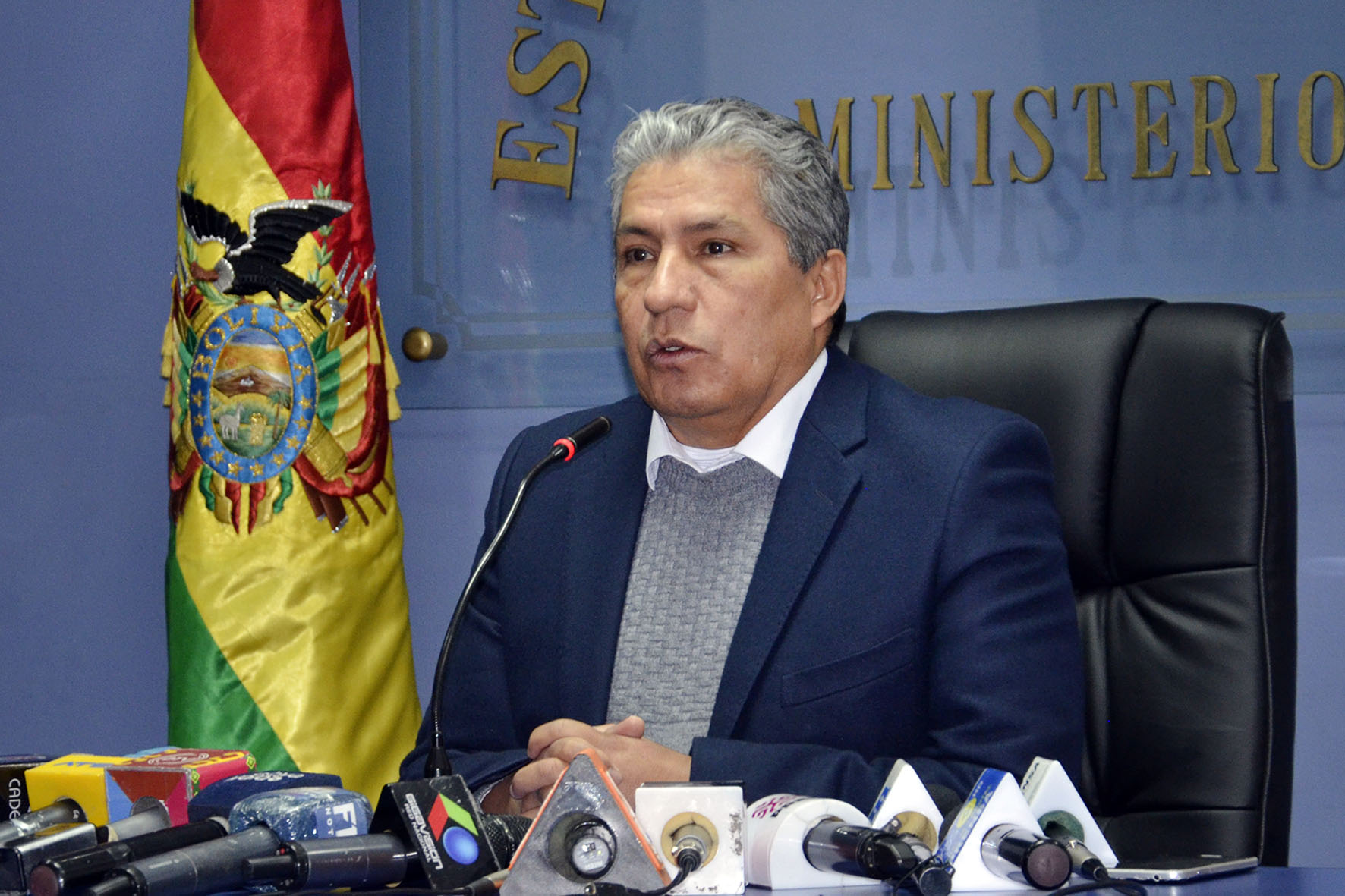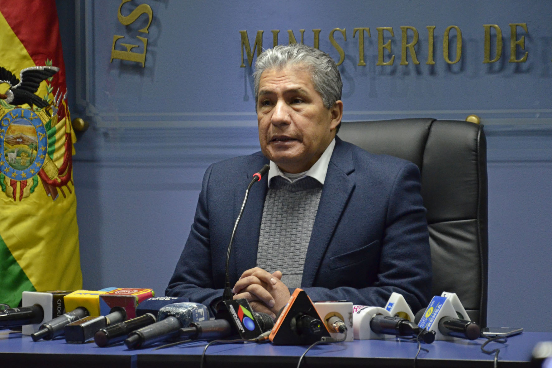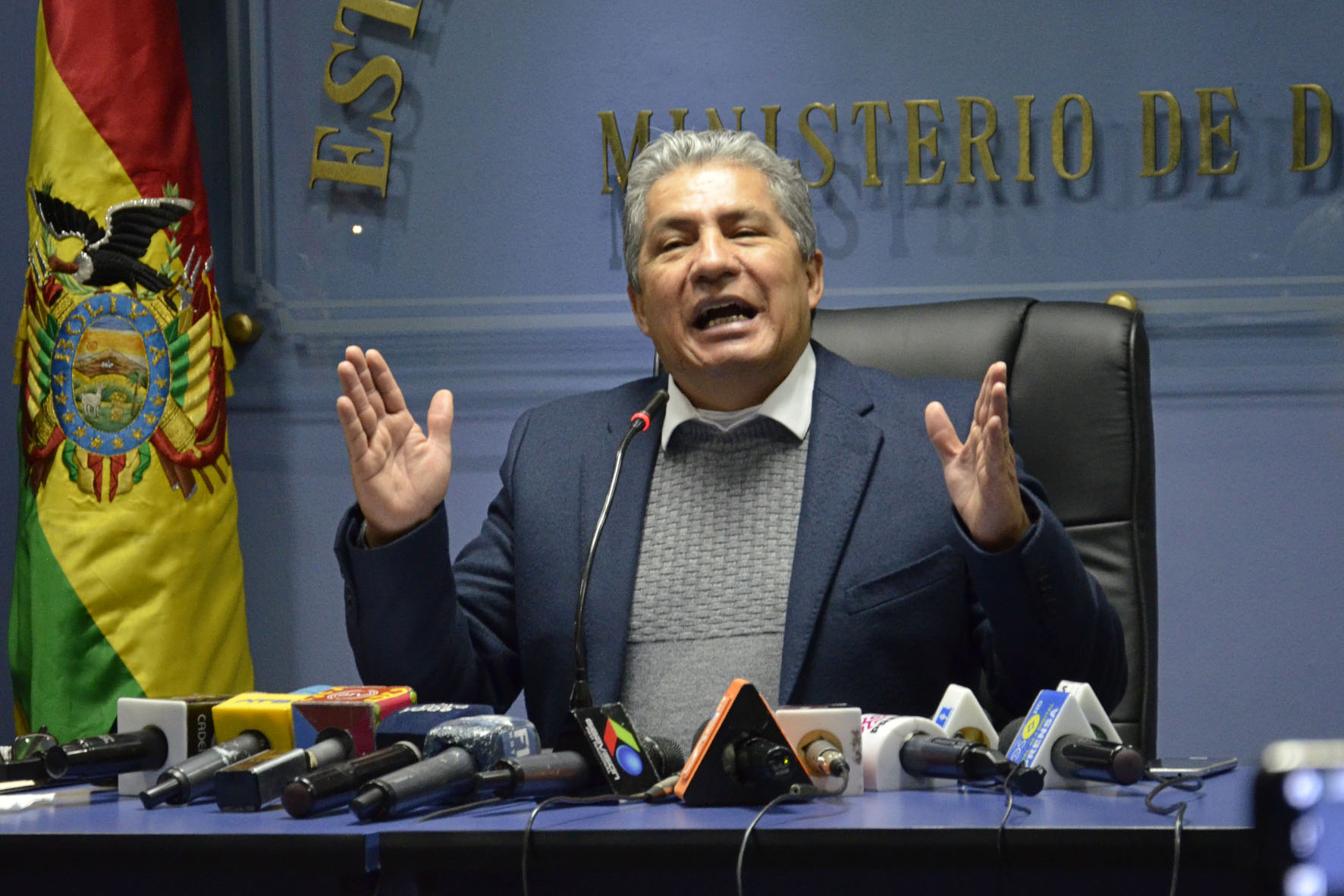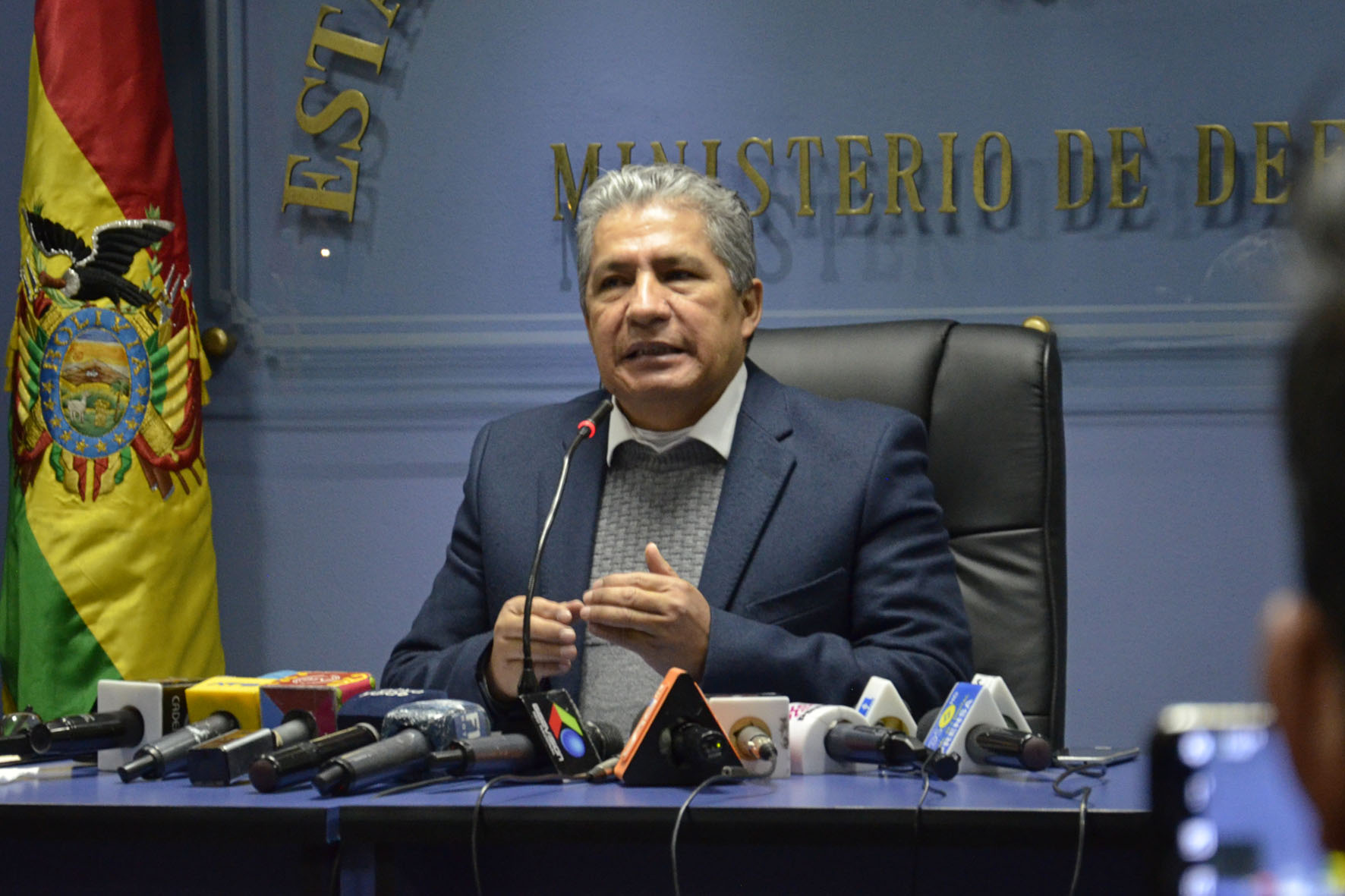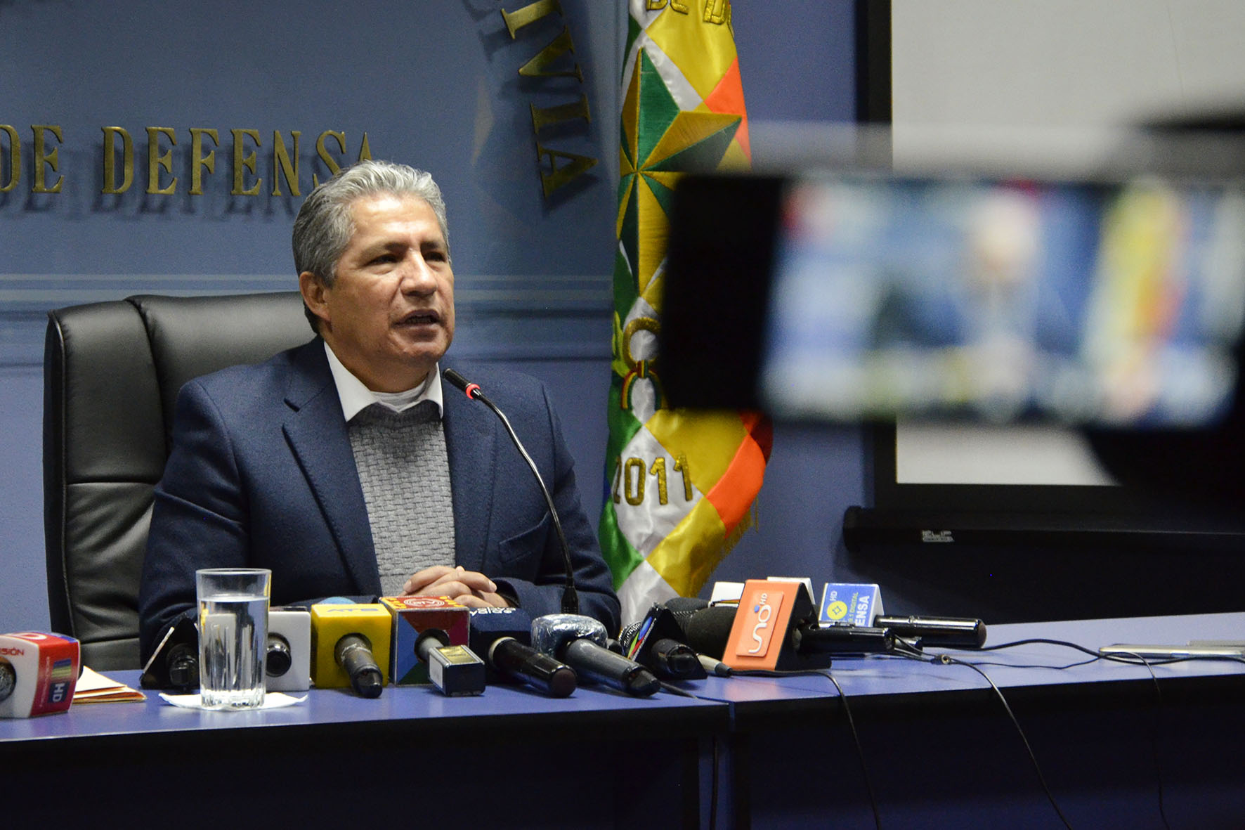 Ministro de Defensa Edmundo Novillo, informa en conferencia de prensa sobre el viaje realizado a la Republica Islámica de Irán