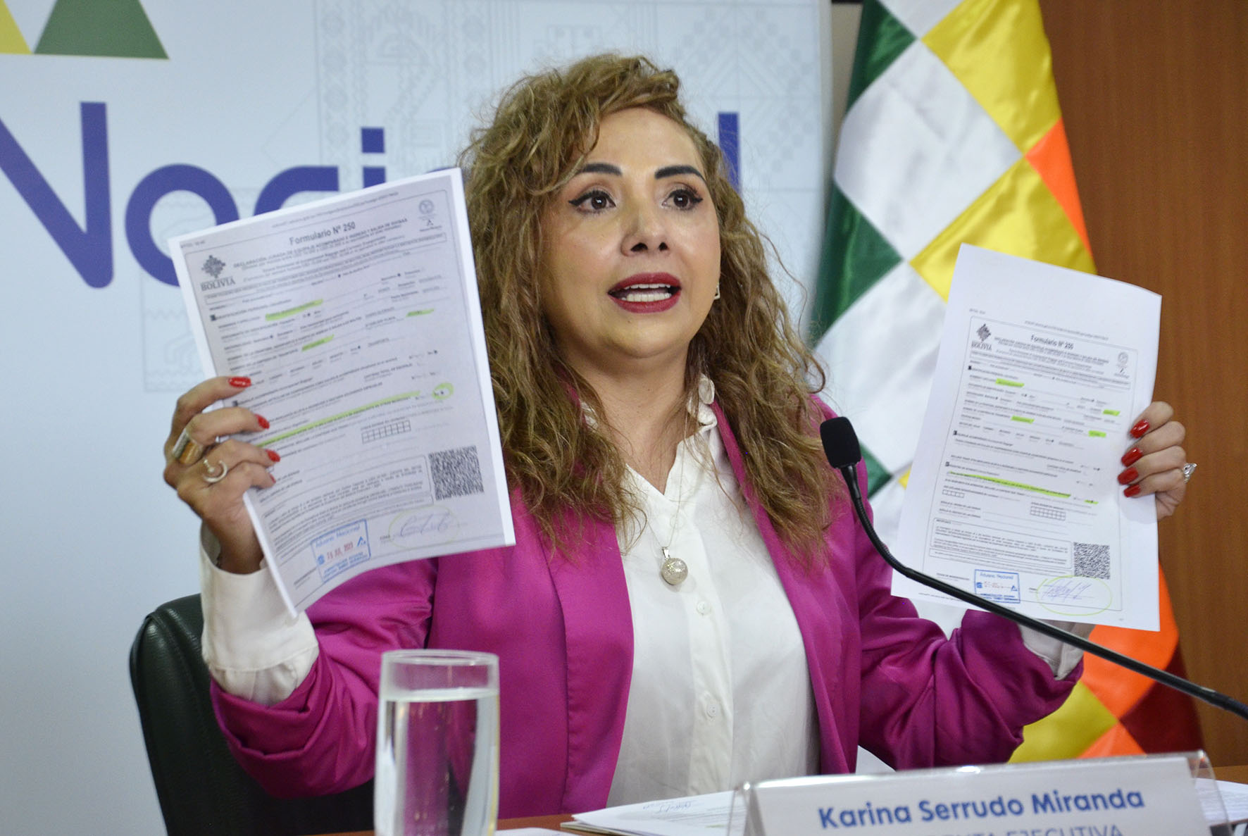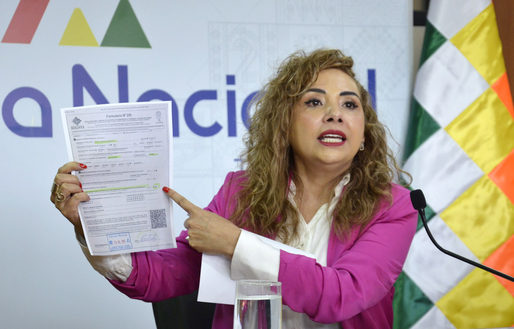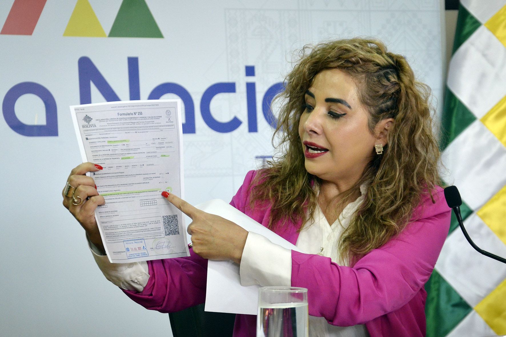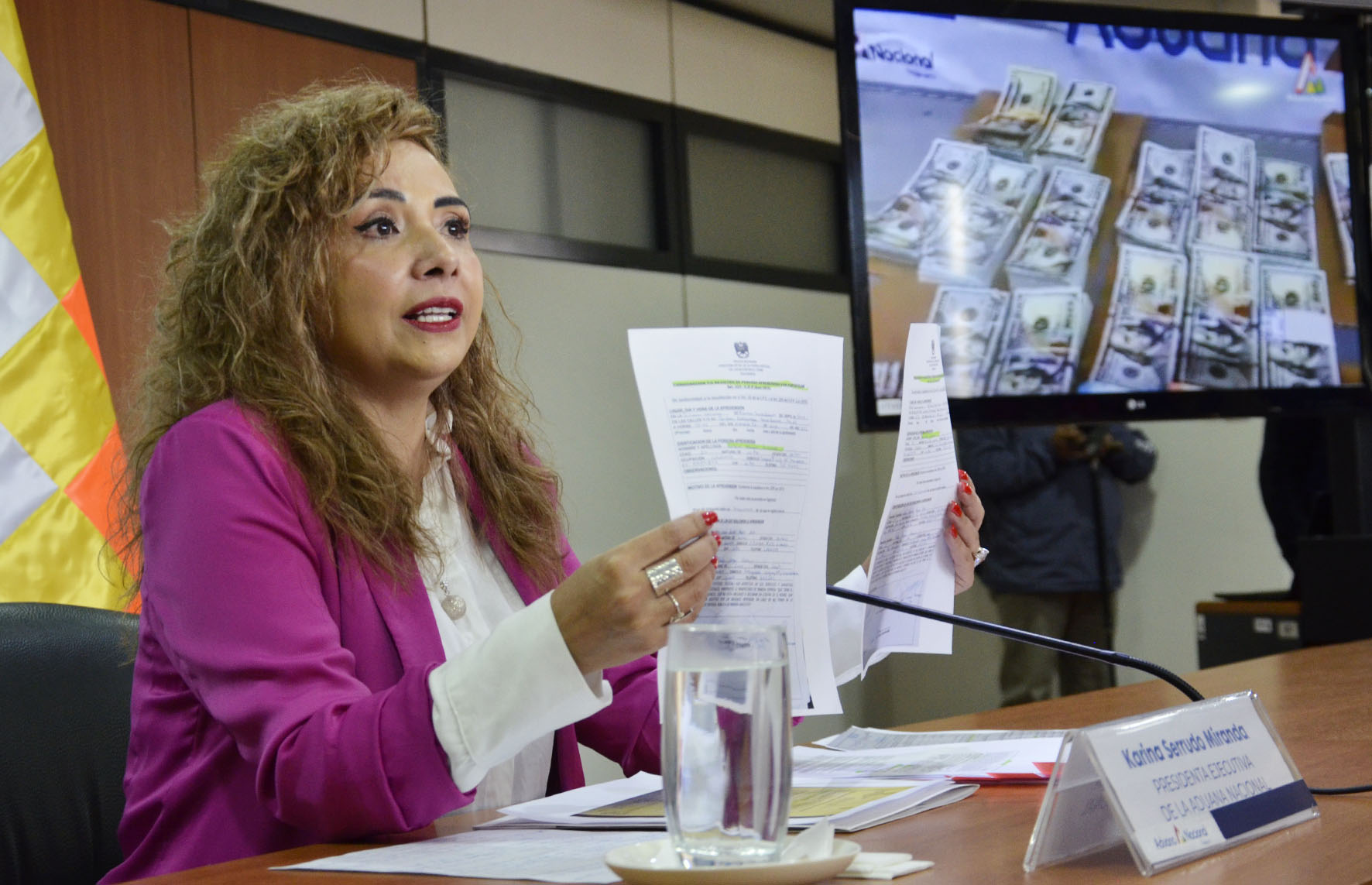 Conferencia de prensa de Karina Serrudo, Presidenta Ejecutiva de la Aduana Nacional, con relación a Comiso de divisas