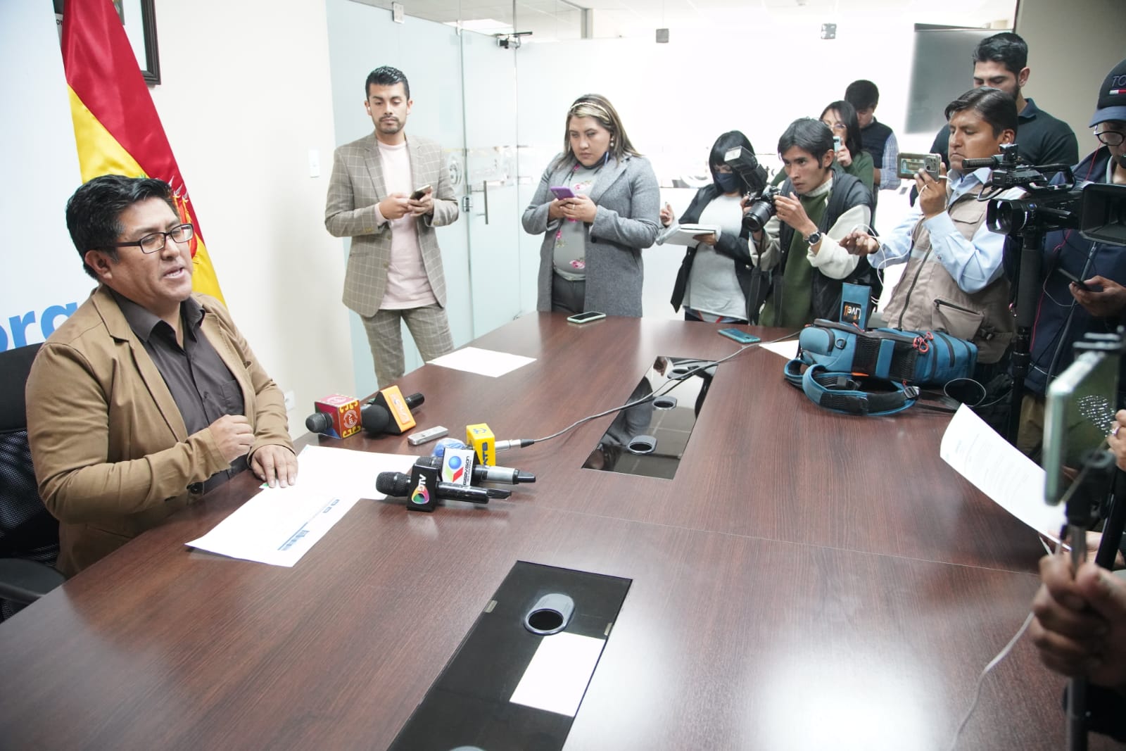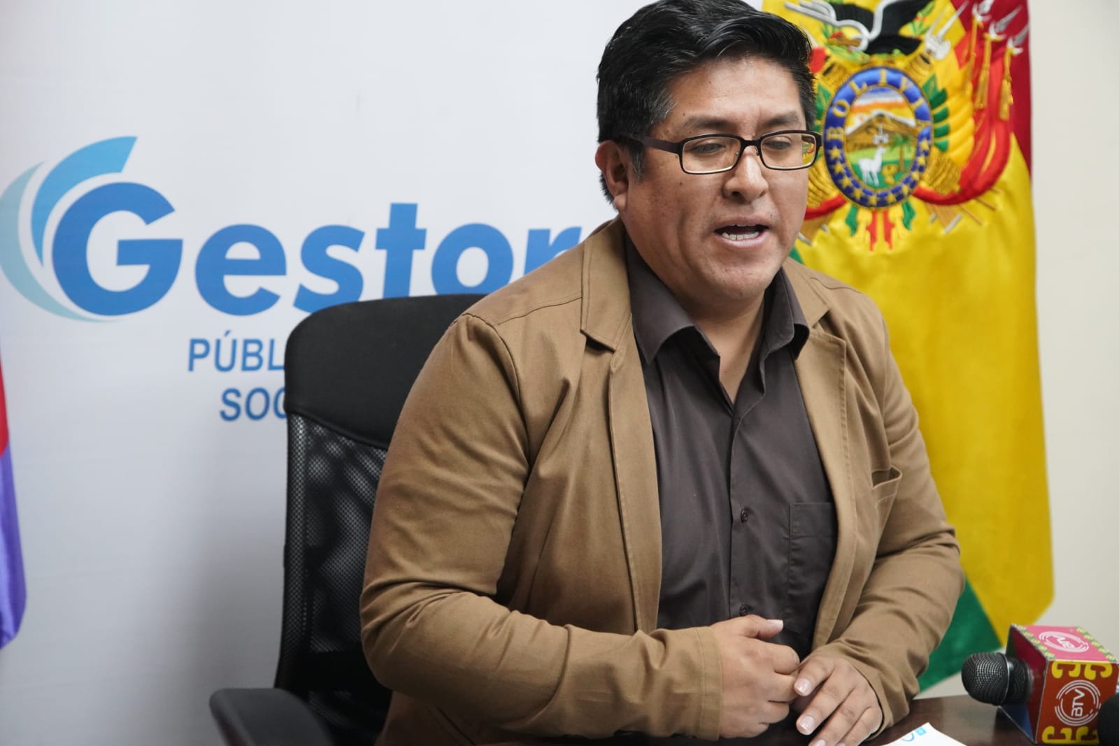 El gerente de la Gestora Pública, Jaime Durán, informa de los problemas técnicos en el sistema, la entidad atraviesa dificultades para el pago de rentas a jubilados, sin embargo, se garantiza la cancelación de este beneficio. Fotos: Jorge Mamani