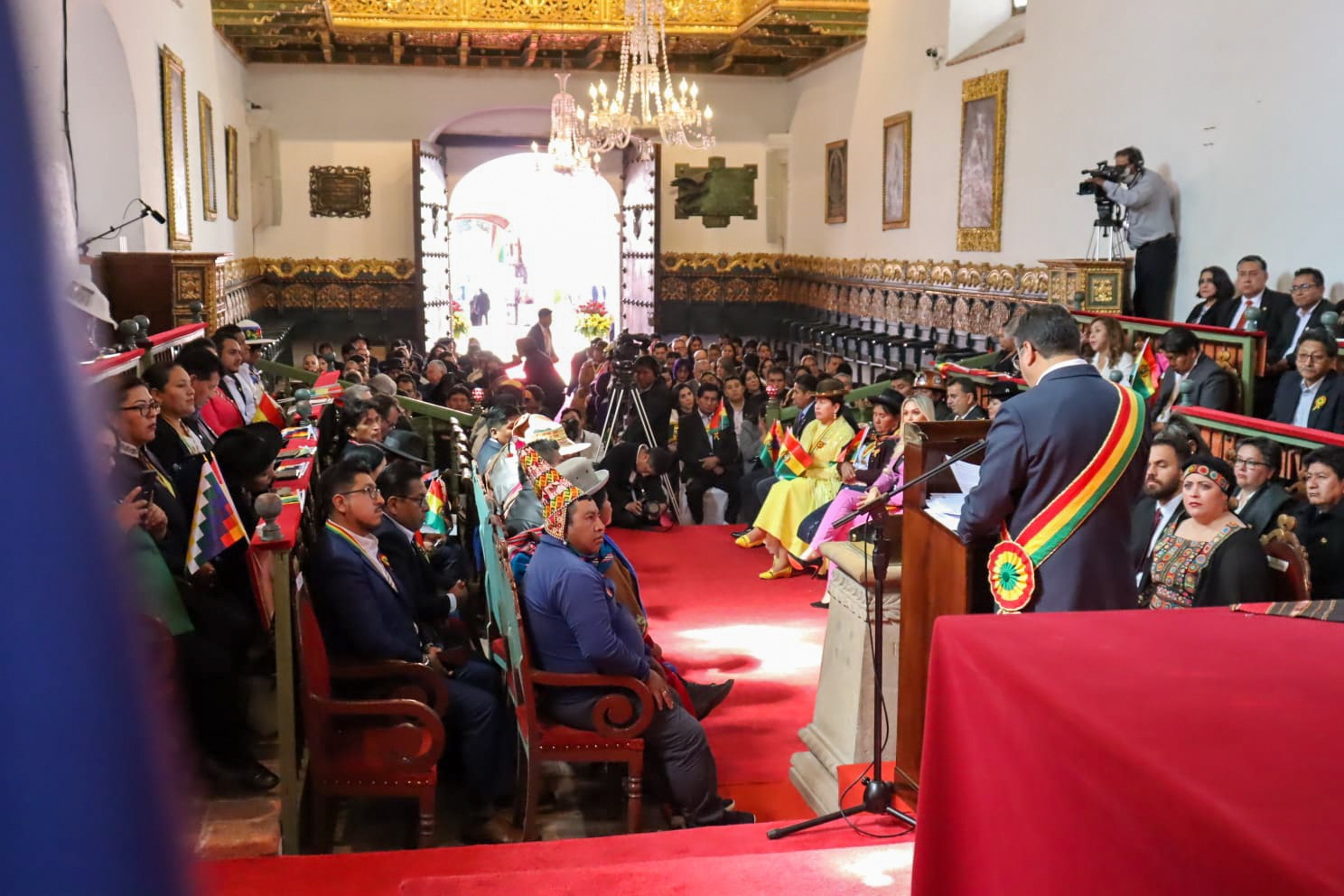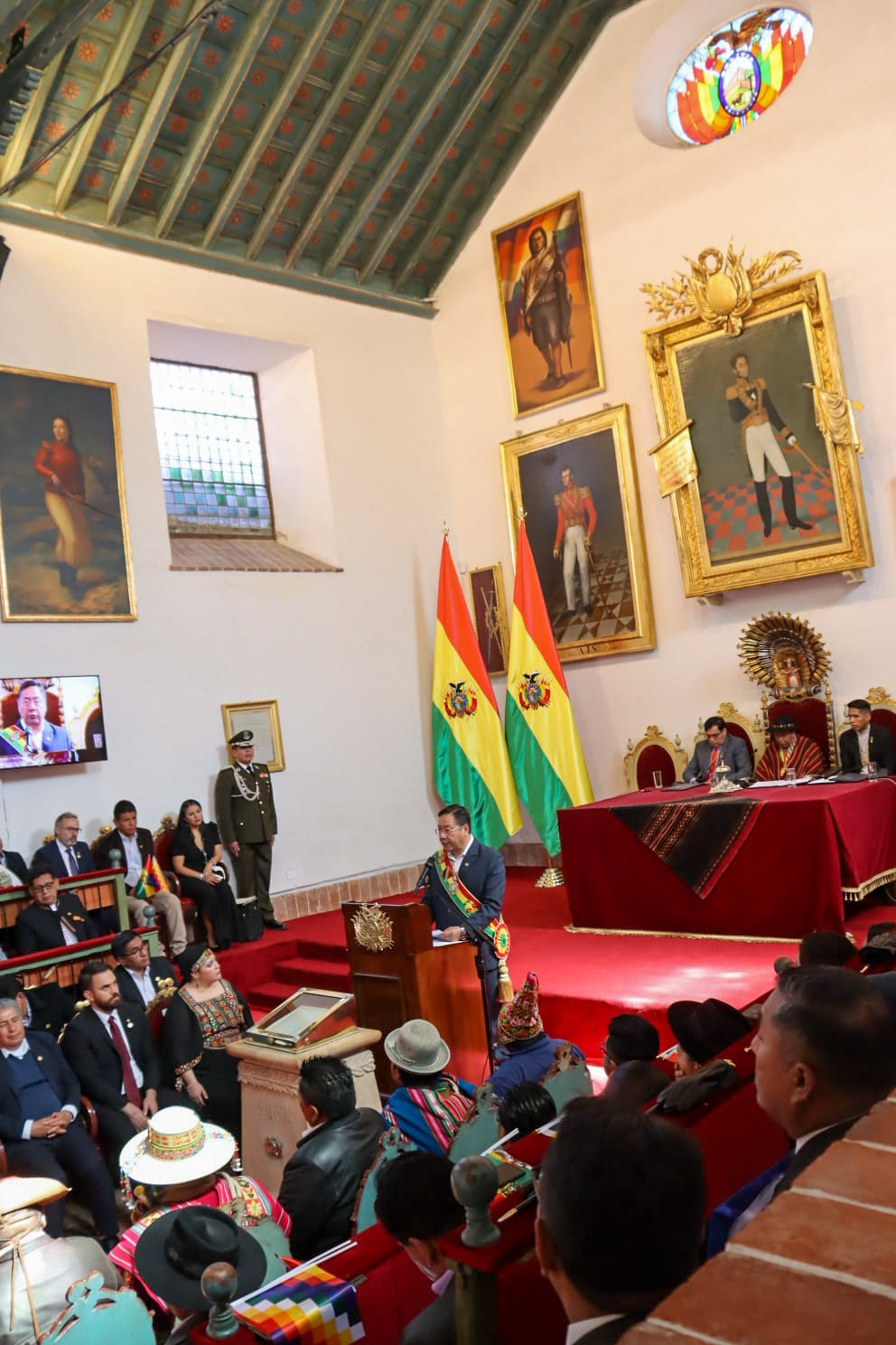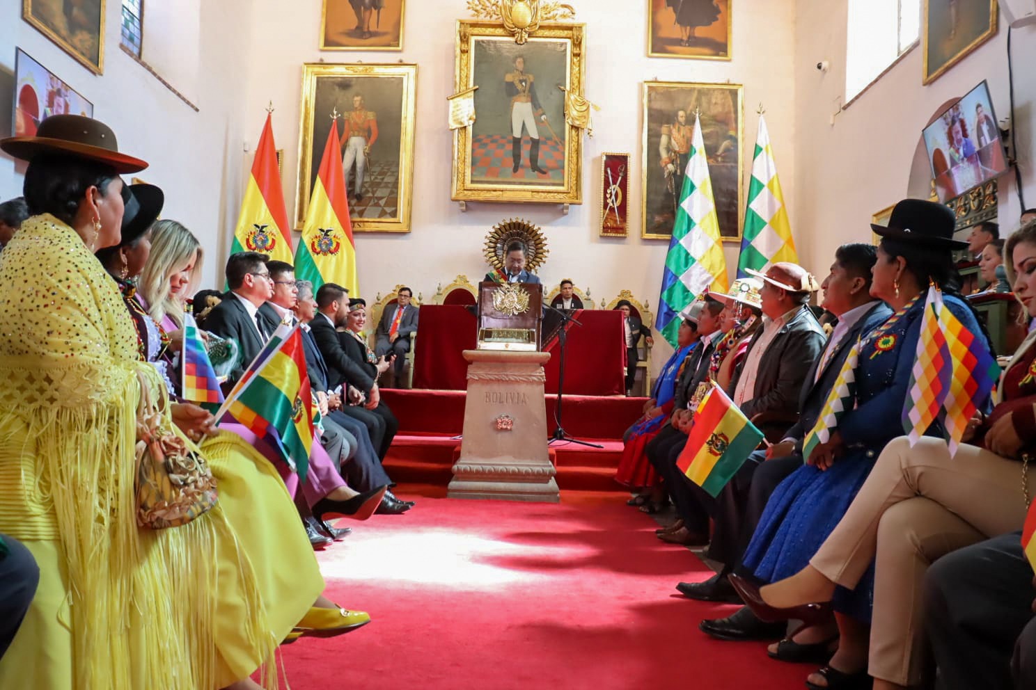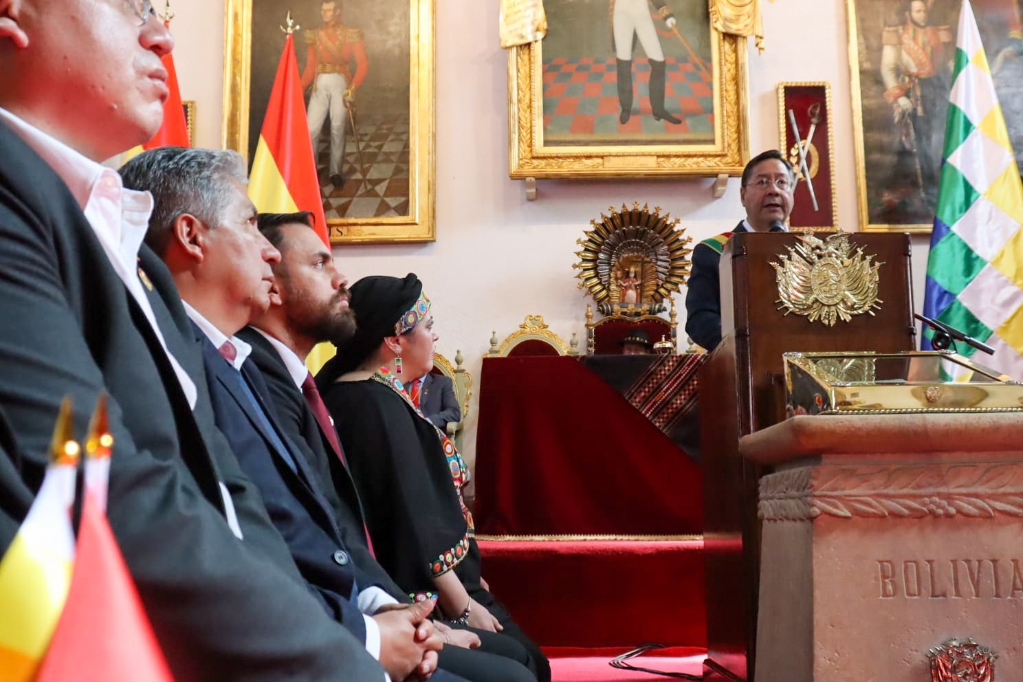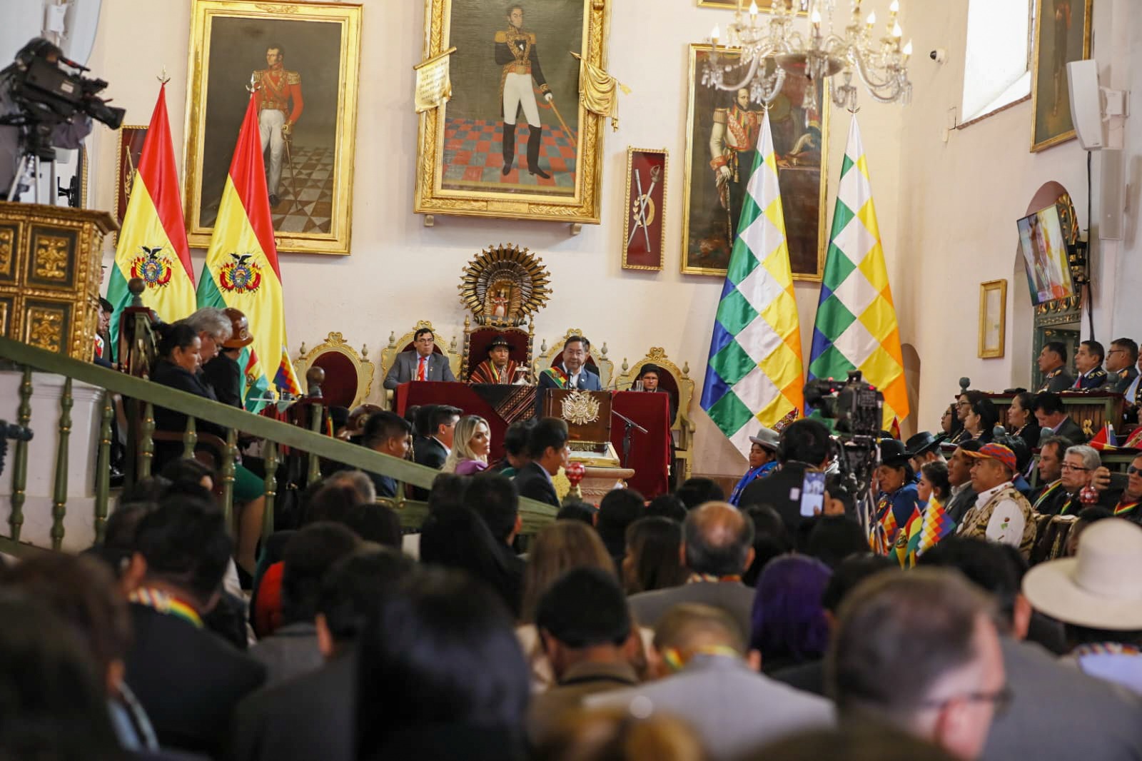 Presidente del Estado Luis Arce participa en la Sesión de Honor por el 198 aniversario de Bolivia, en Sucre. Fuente: Comunicación Presidencial