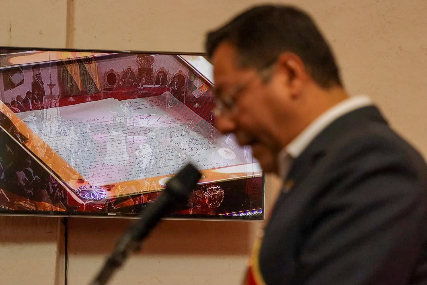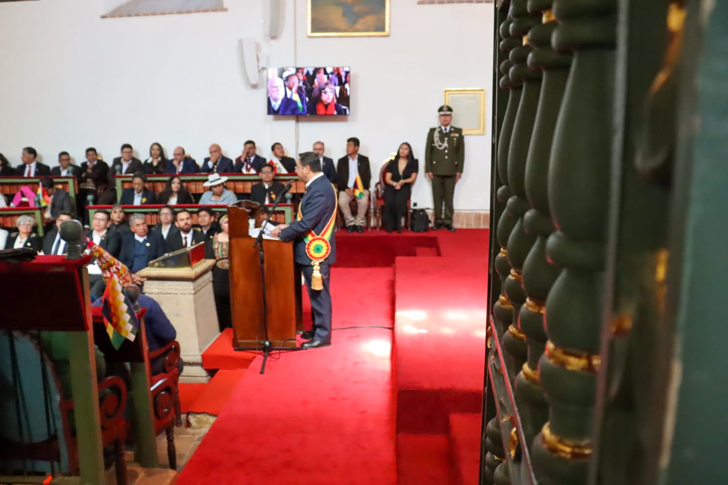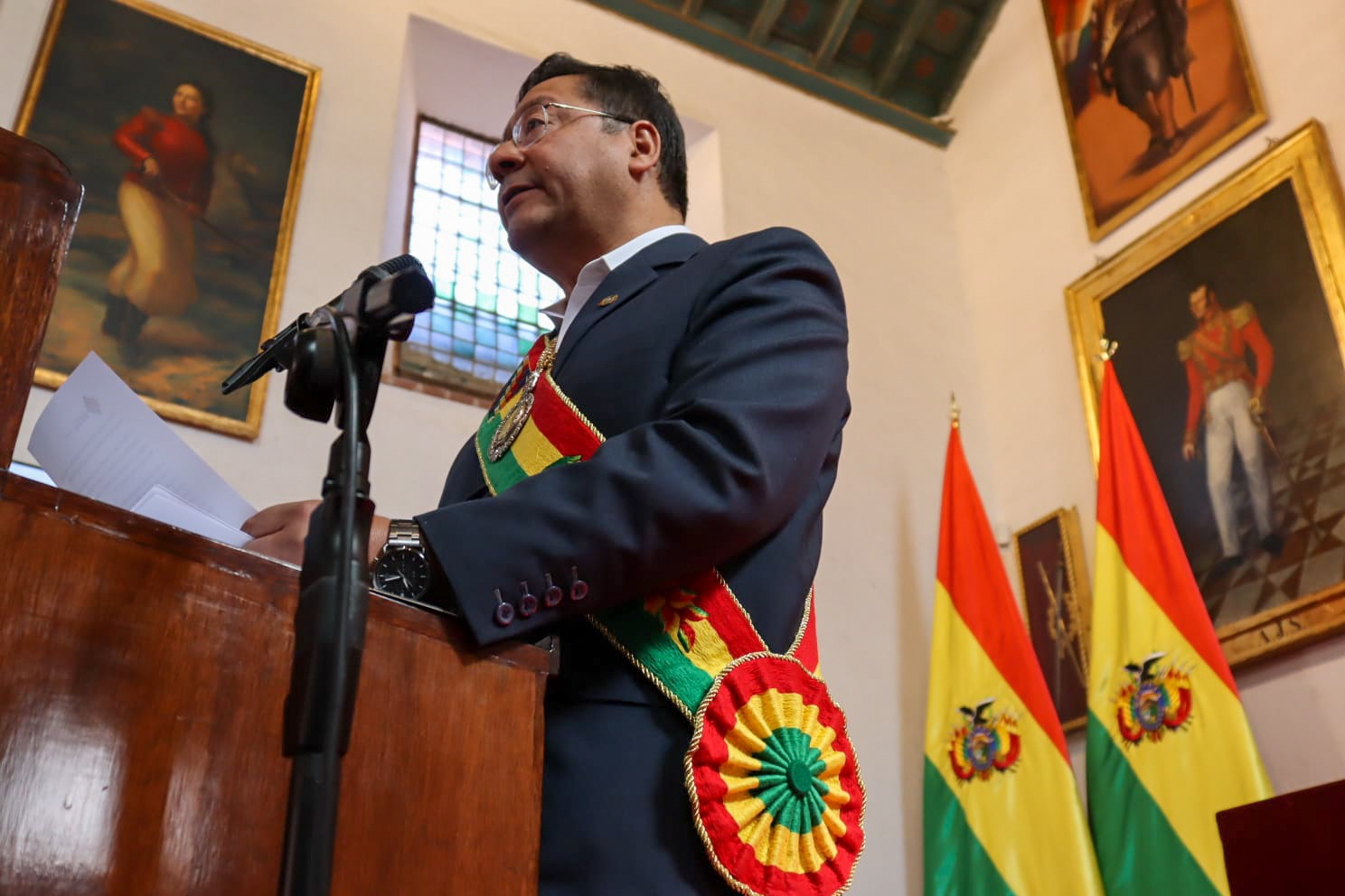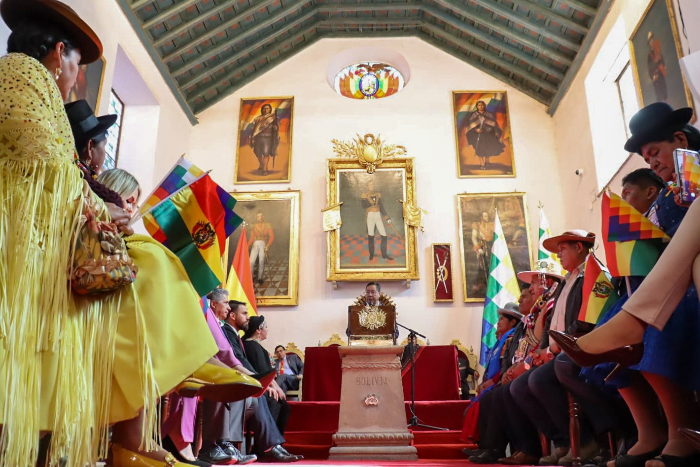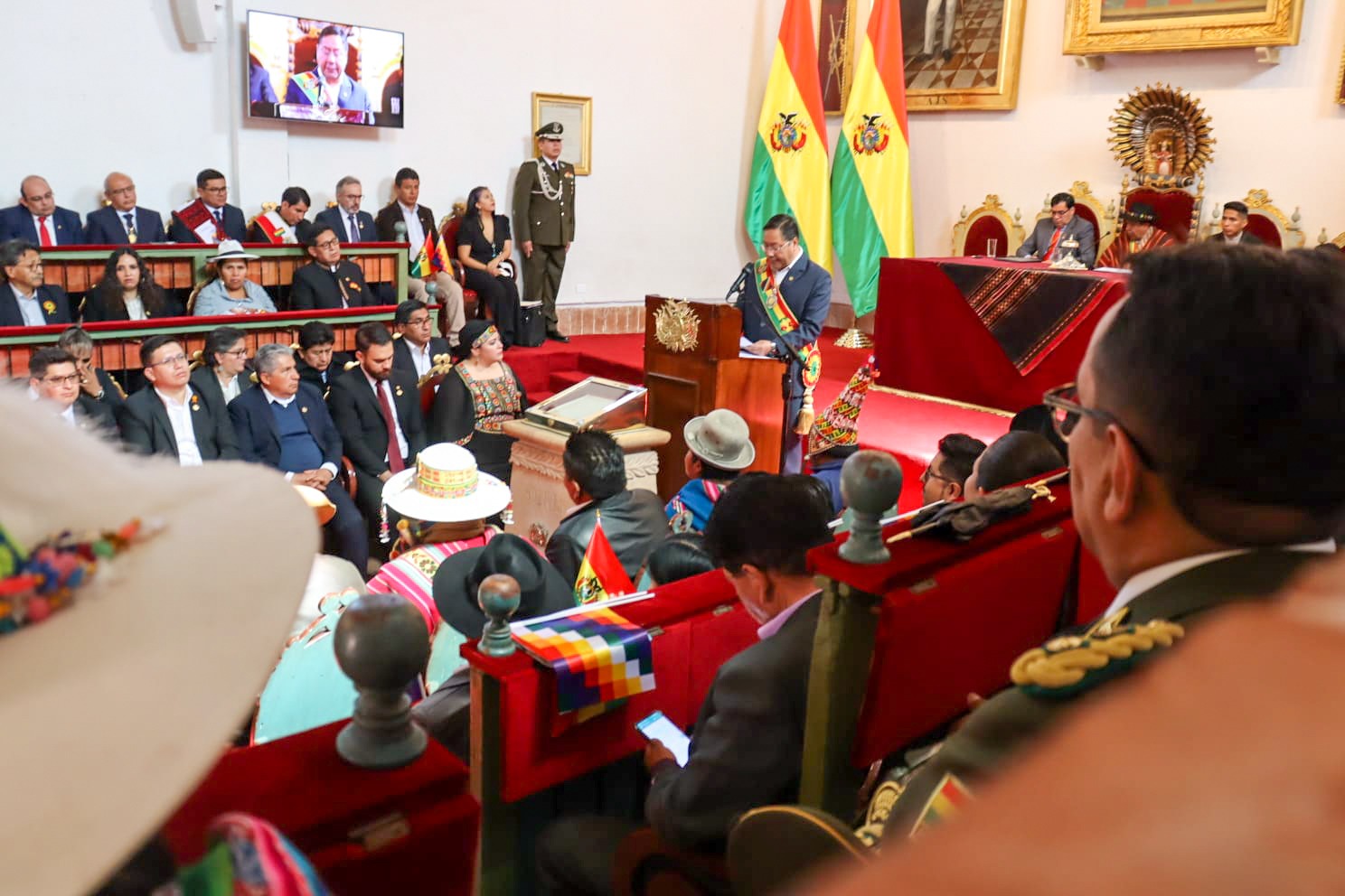 Presidente del Estado Luis Arce participa en la Sesión de Honor por el 198 aniversario de Bolivia, en Sucre. Fuente: Comunicación Presidencial
