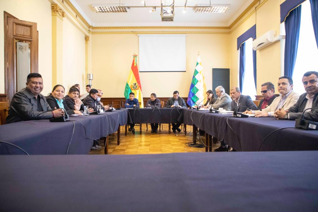 Presidente en ejercicio David Choquehuanca sostiene reunión con jefes de bancada de las tres fuerzas políticas