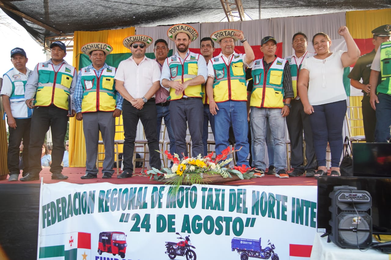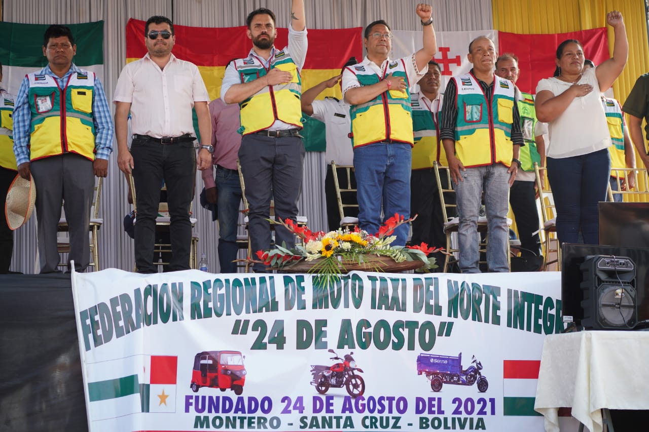 Presidente participa en el aniversario de la Federación Regional de Mototaxi Norte Integrado 24 de Agosto, en Portachuelo, Santa Cruz.Estefanny Bolivar ArancibiaGalería Fotográfica 25 Agosto 2023 Visto: 3650ShareTwittearshare with Whatsappshare with Telegram Fuente: Comunicación Presidencial.AnteriorSiguiente