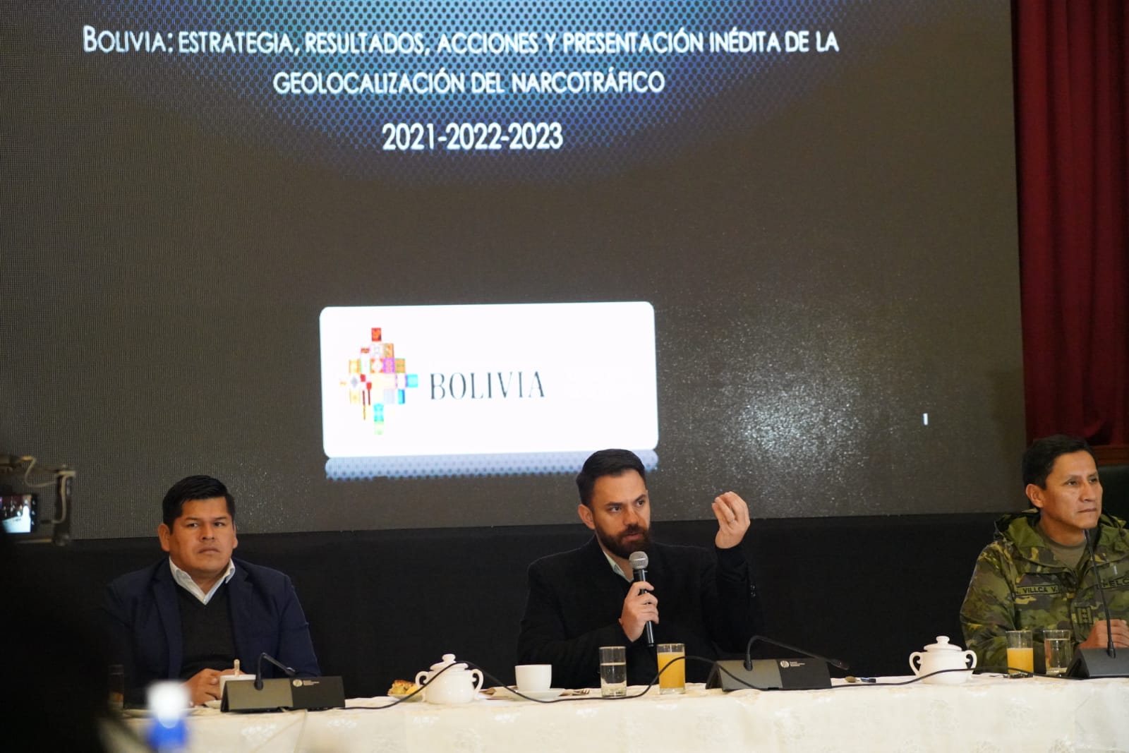 El ministro de Gobierno, Eduardo Del Castillo, brinda conferencia de prensa sobre la geolocalización del narcotráfico en Bolivia.Estefanny Bolivar ArancibiaGalería Fotográfica 28 Agosto 2023 Visto: 3421ShareTwittearshare with Whatsappshare with Telegram Fuente: Jorge MamaniAnteriorSiguiente