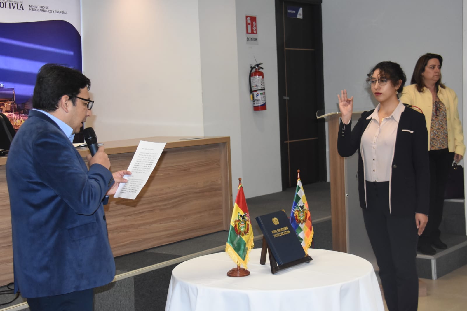 Posesión de la nueva presidenta ejecutiva de Yacimientos de Litio Bolivianos (YLB), Karla Calderón.