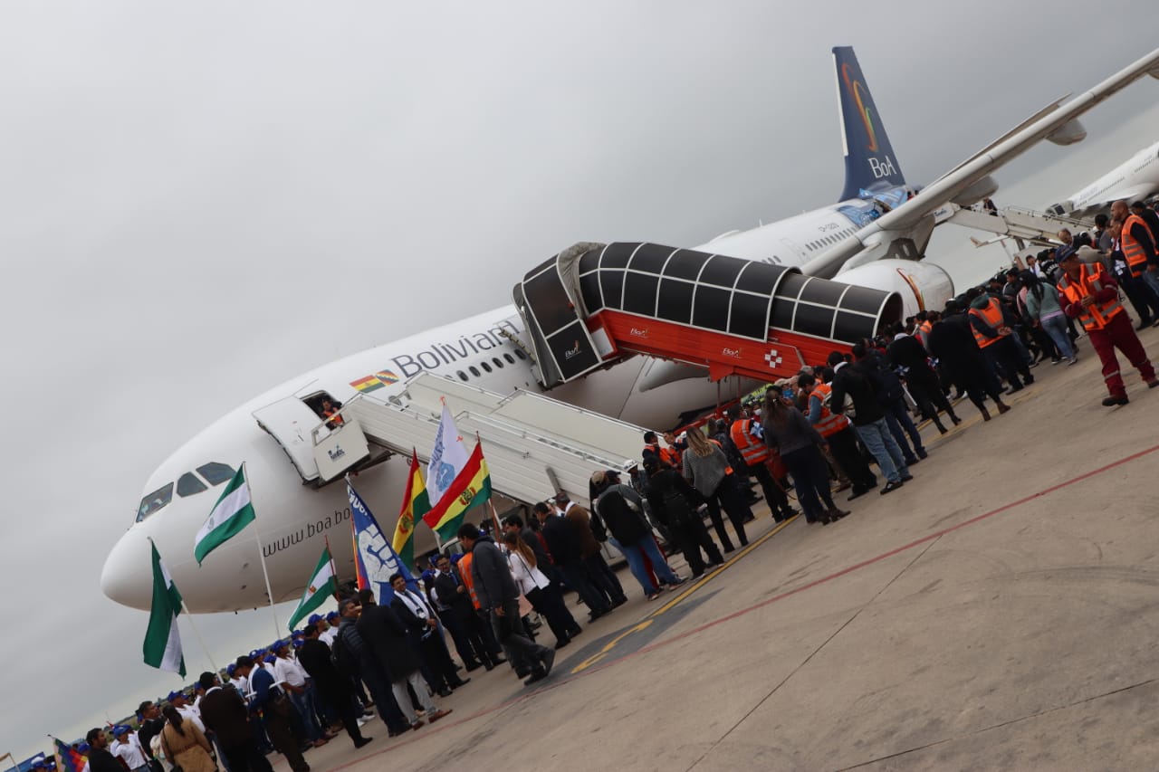 Remarcó que el modelo económico boliviano muestra una vez más al país y al mundo el potencial que tiene; por lo tanto, la entrega de estos modernos aviones también refleja que la economía boliviana “vuela alto y lejos”.