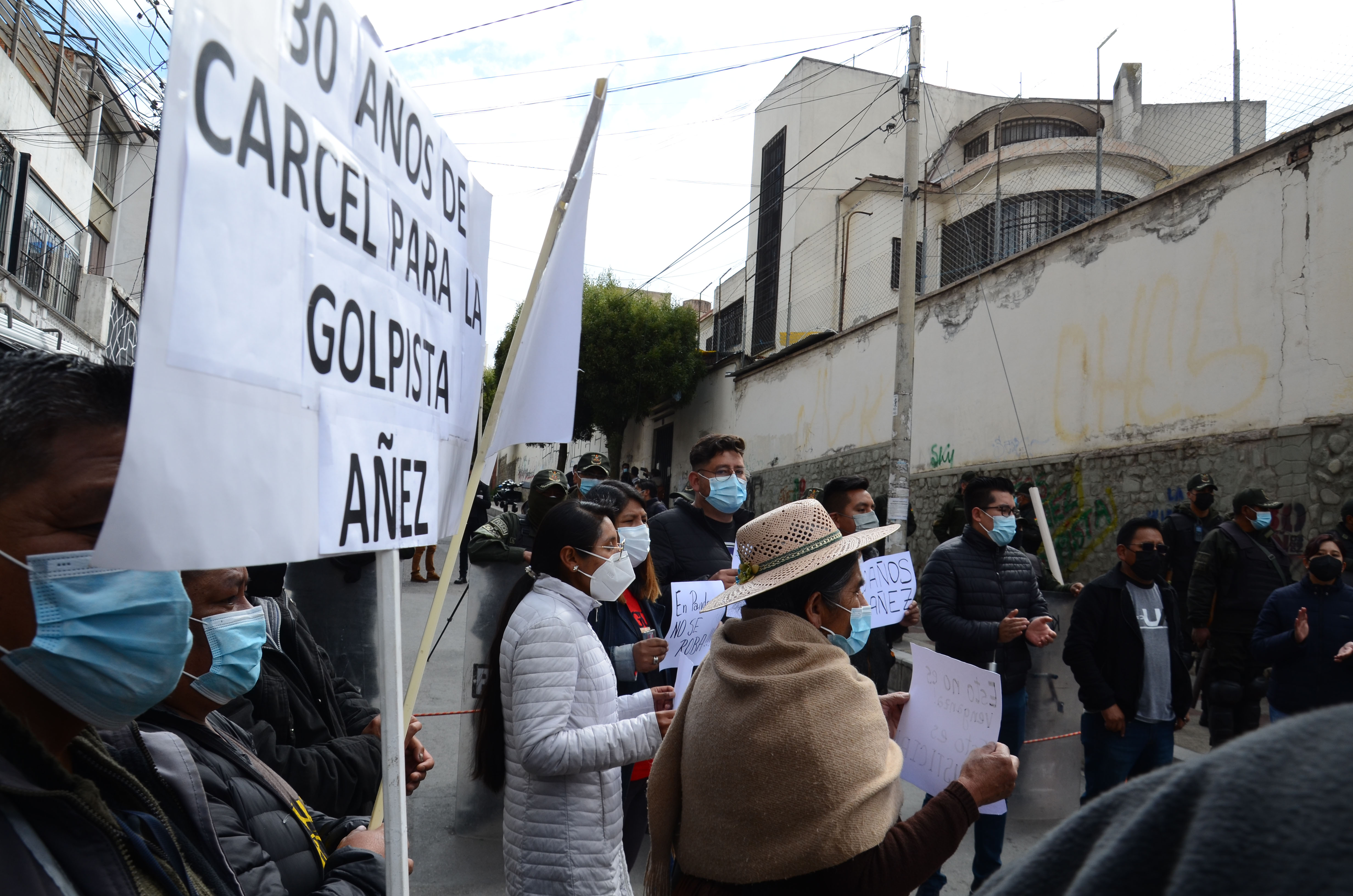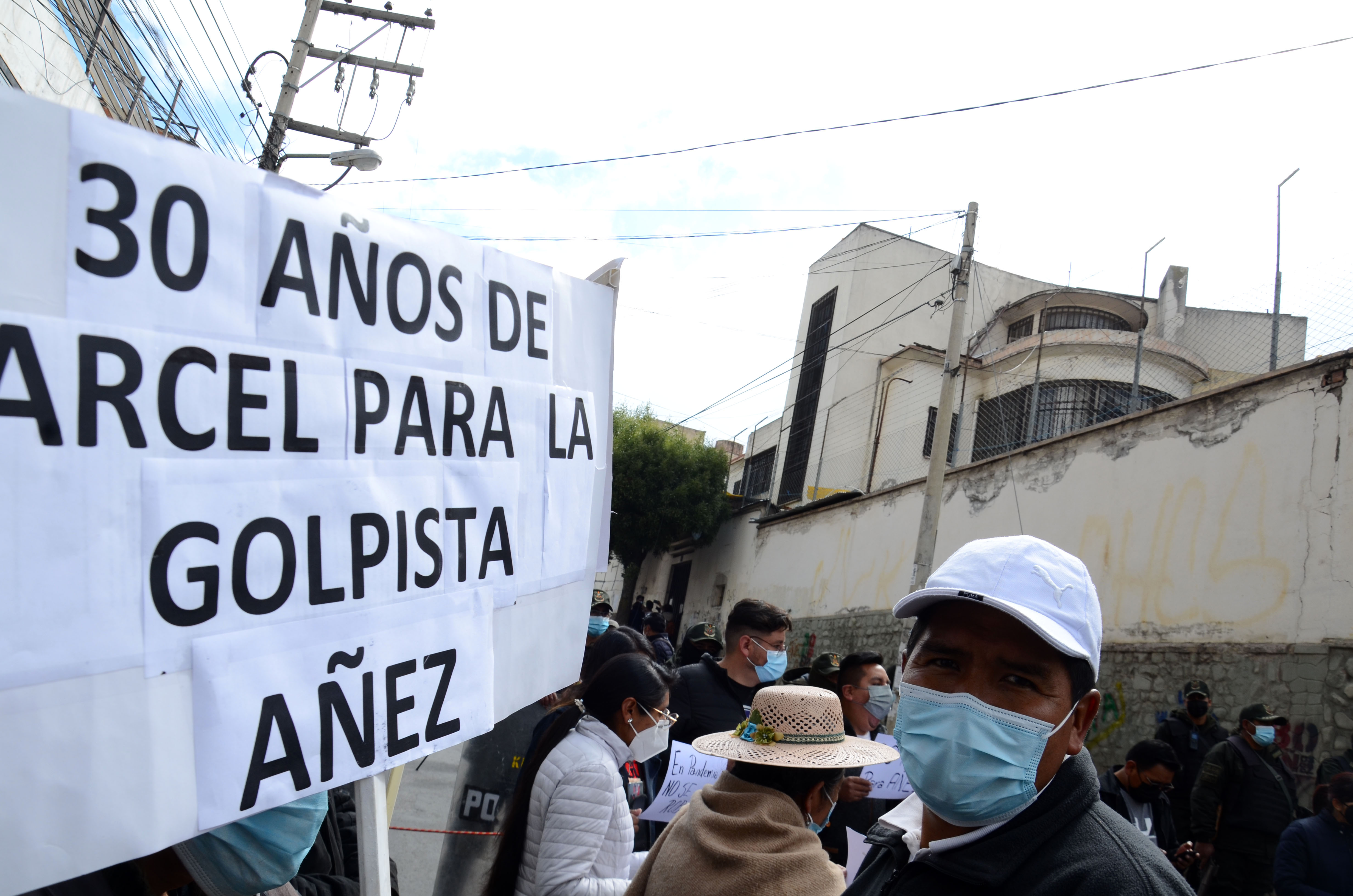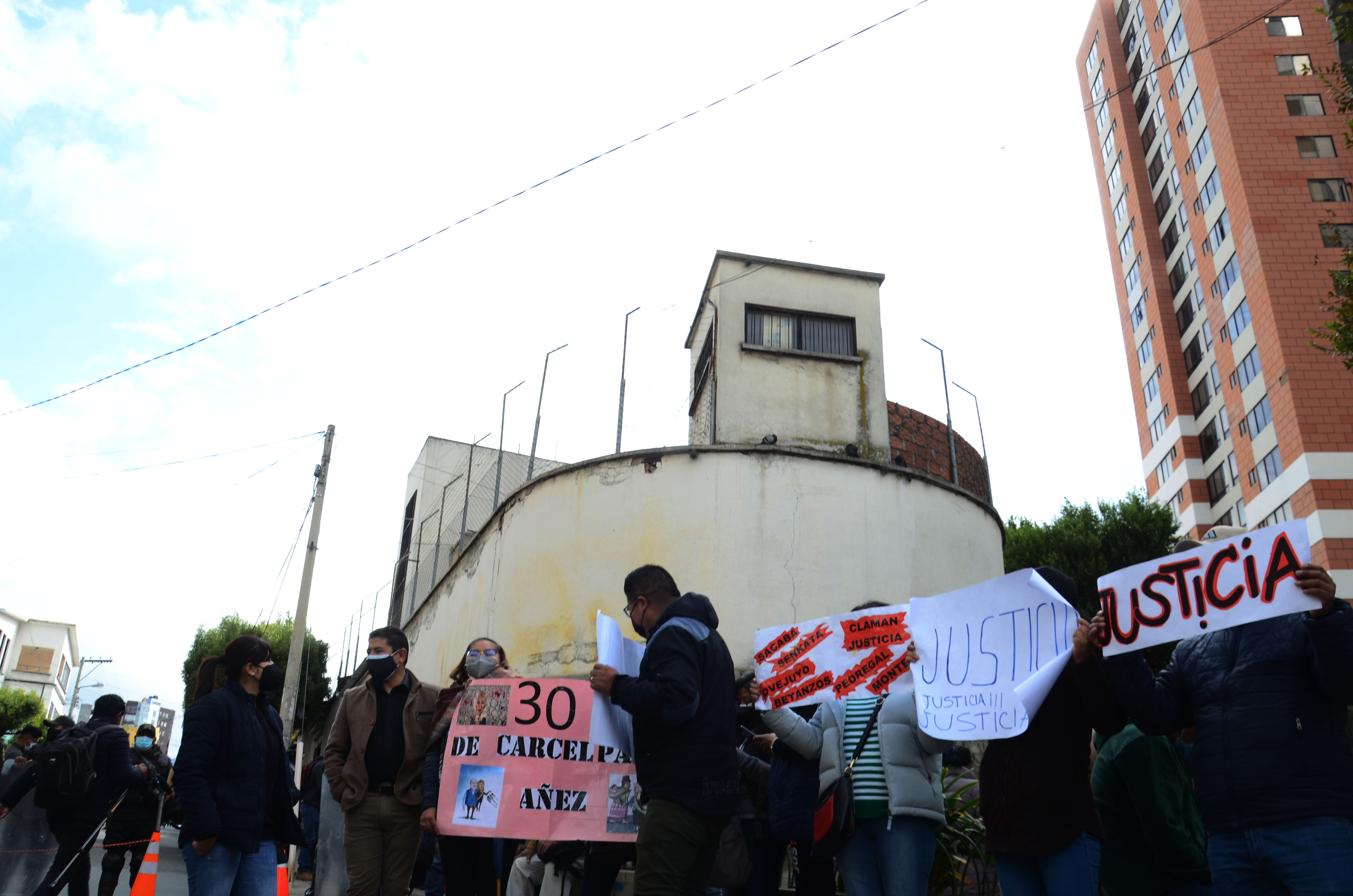 Personas protestan y piden sentencia de 30 años para Jeanine Áñez en afueras del centro penitenciario de Miraflores, mientras se realiza la audiencia a la exsenadora Jeanine Áñez.Usuario ABIGalería Fotográfica 08 Abril 2022 Visto: 21005ShareTwittearshare with Whatsappshare with TelegramFotos: Josué Cortéz / ABI AnteriorSiguiente