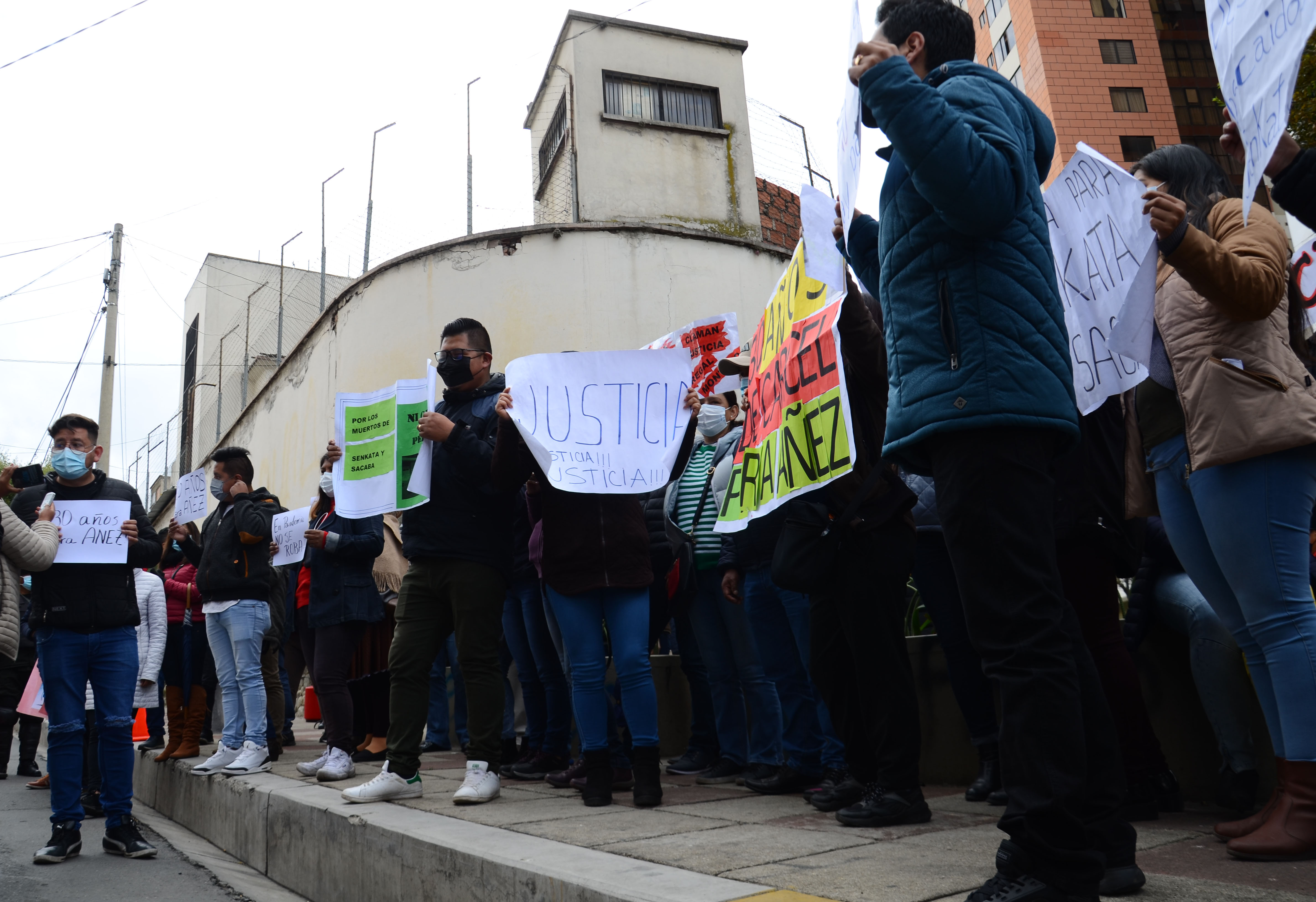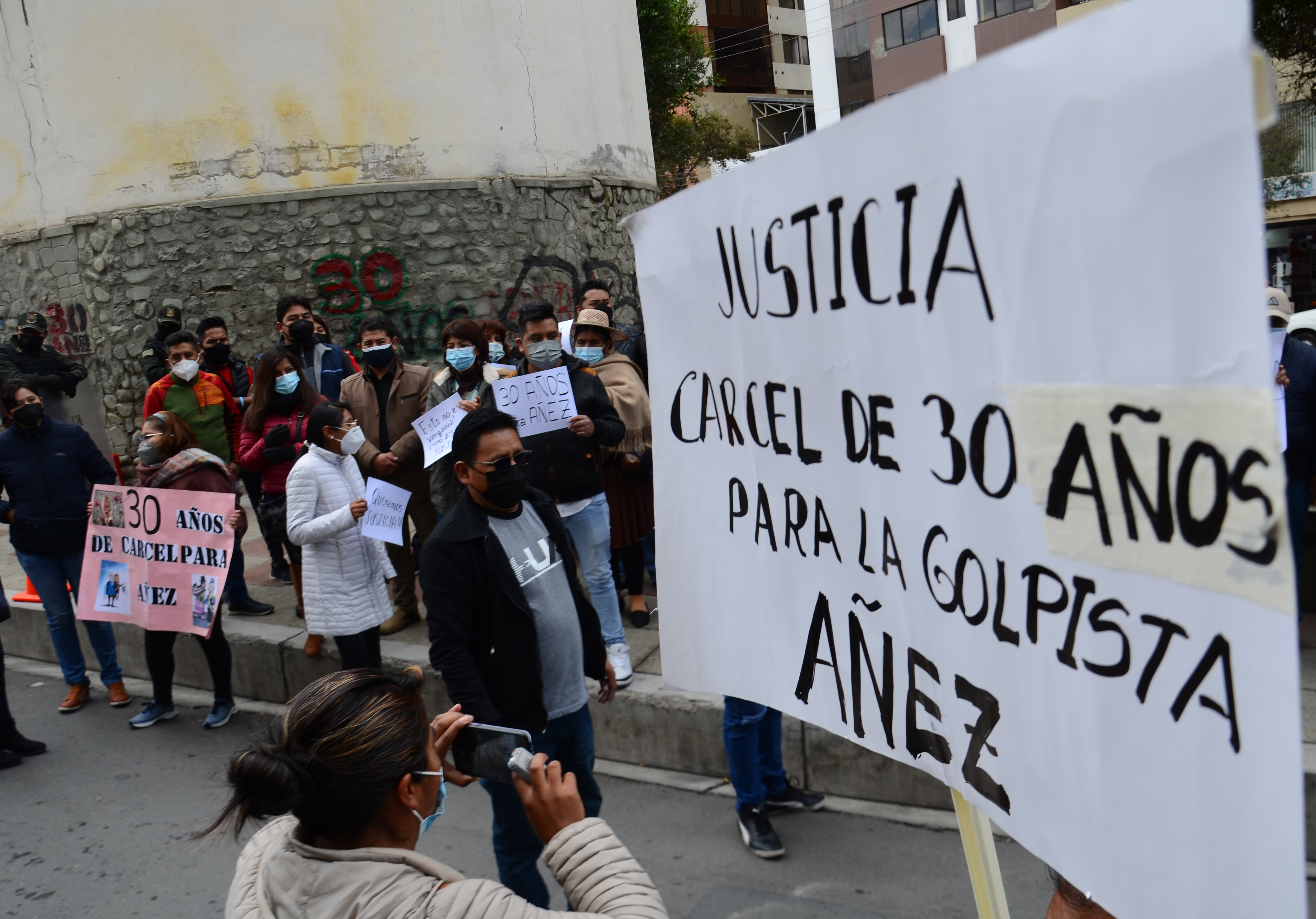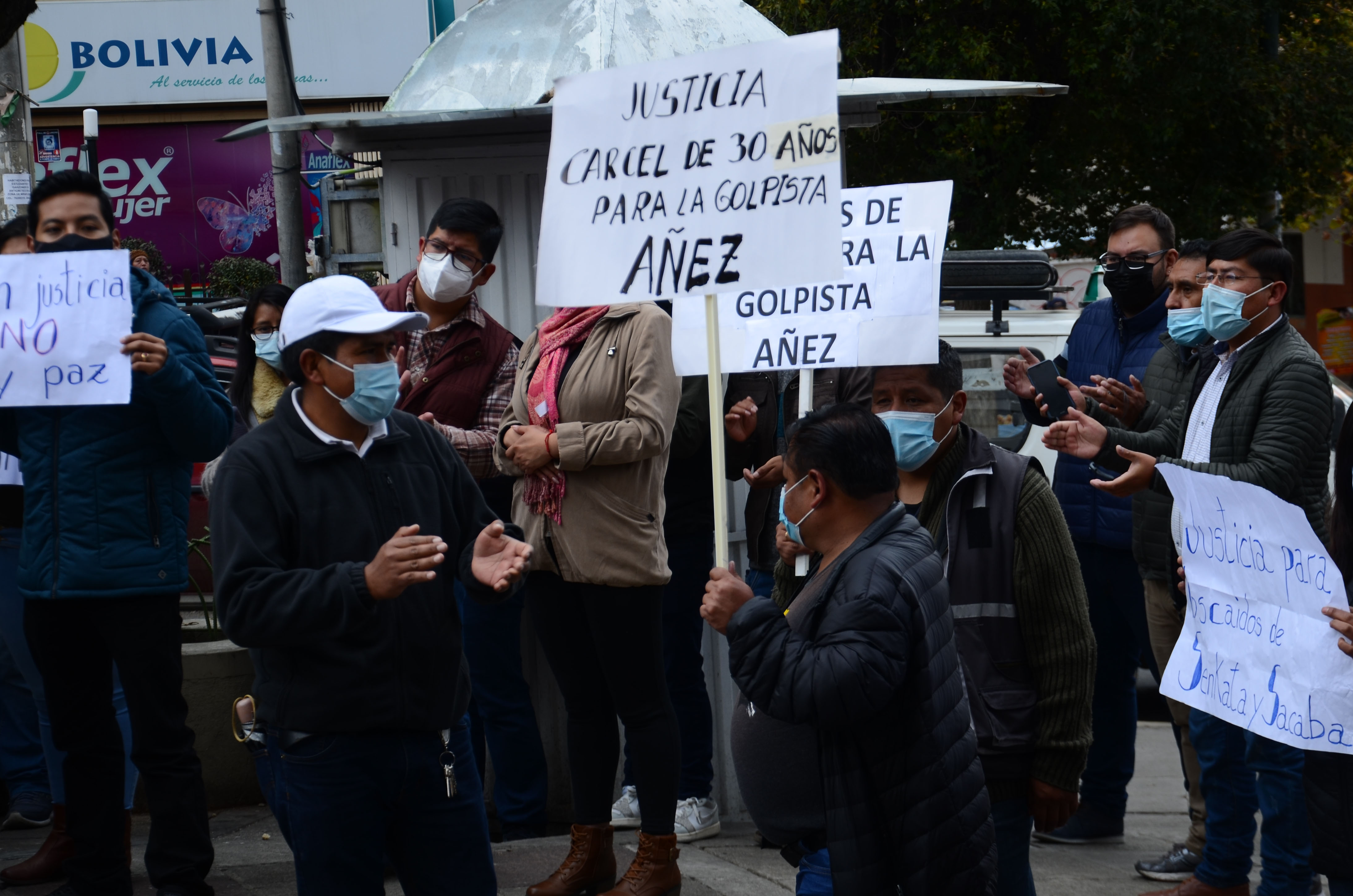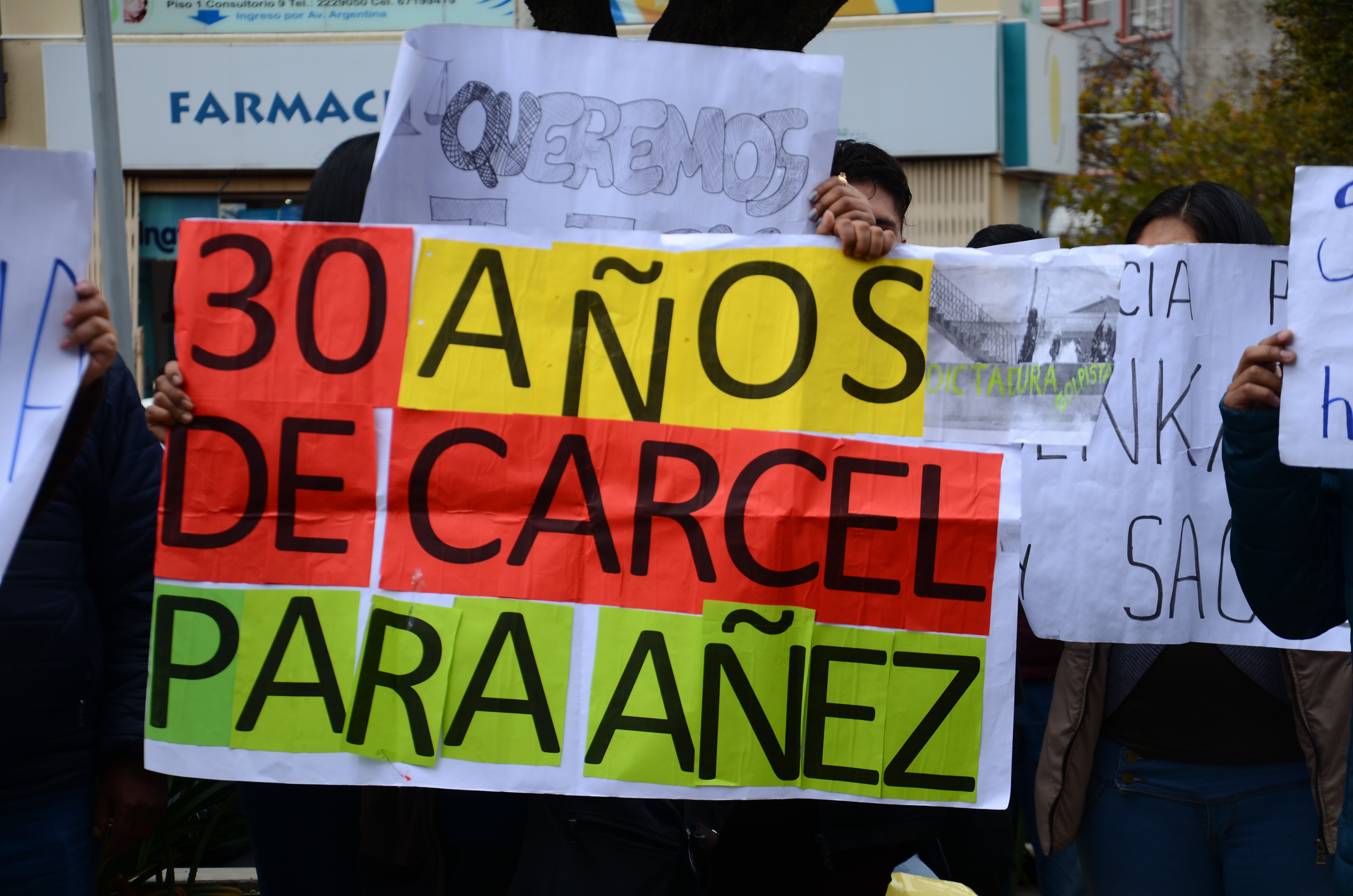Personas protestan y piden sentencia de 30 años para Jeanine Áñez en afueras del centro penitenciario de Miraflores, mientras se realiza la audiencia a la exsenadora Jeanine Áñez.Usuario ABIGalería Fotográfica 08 Abril 2022 Visto: 21005ShareTwittearshare with Whatsappshare with TelegramFotos: Josué Cortéz / ABI AnteriorSiguiente