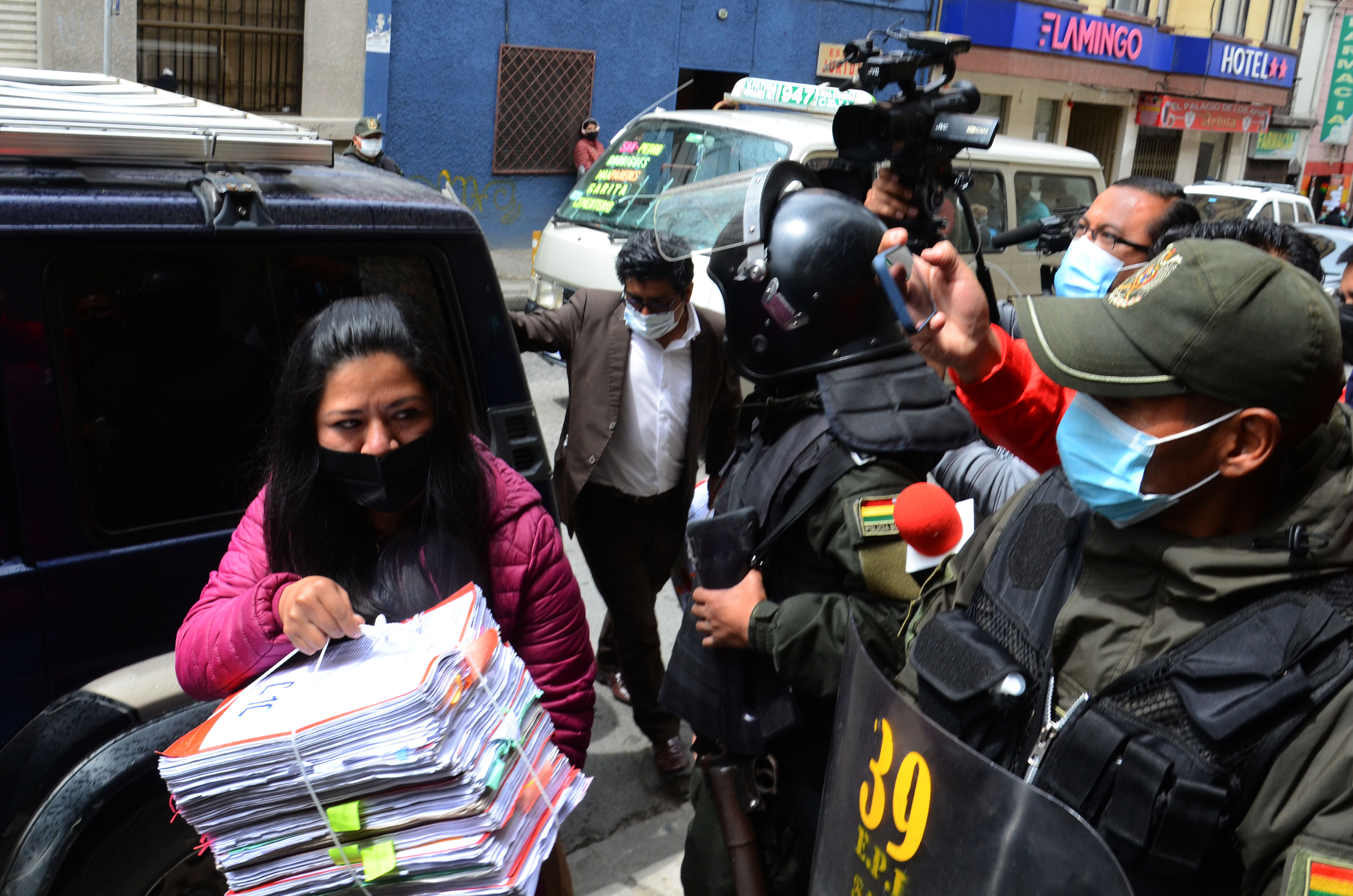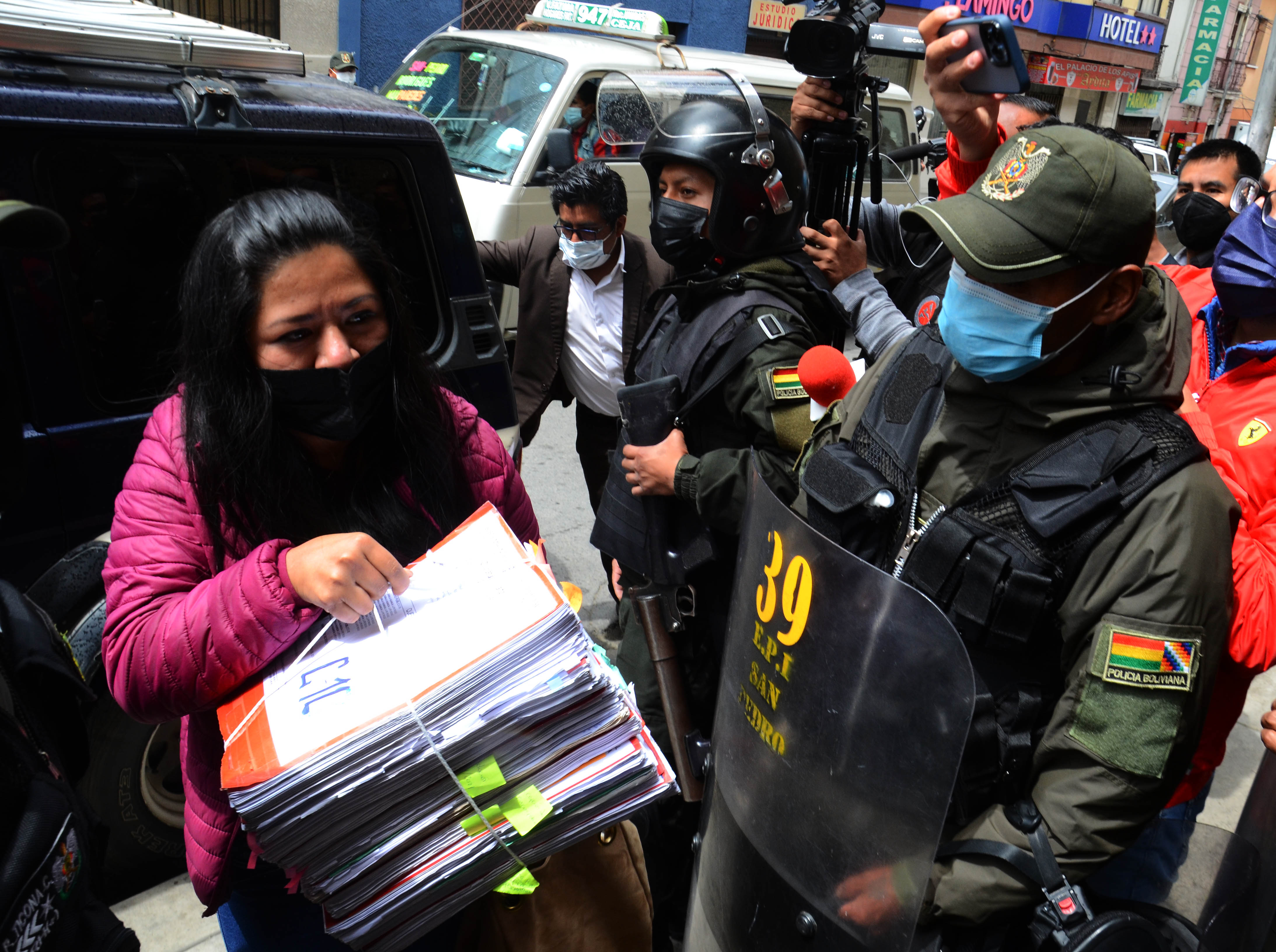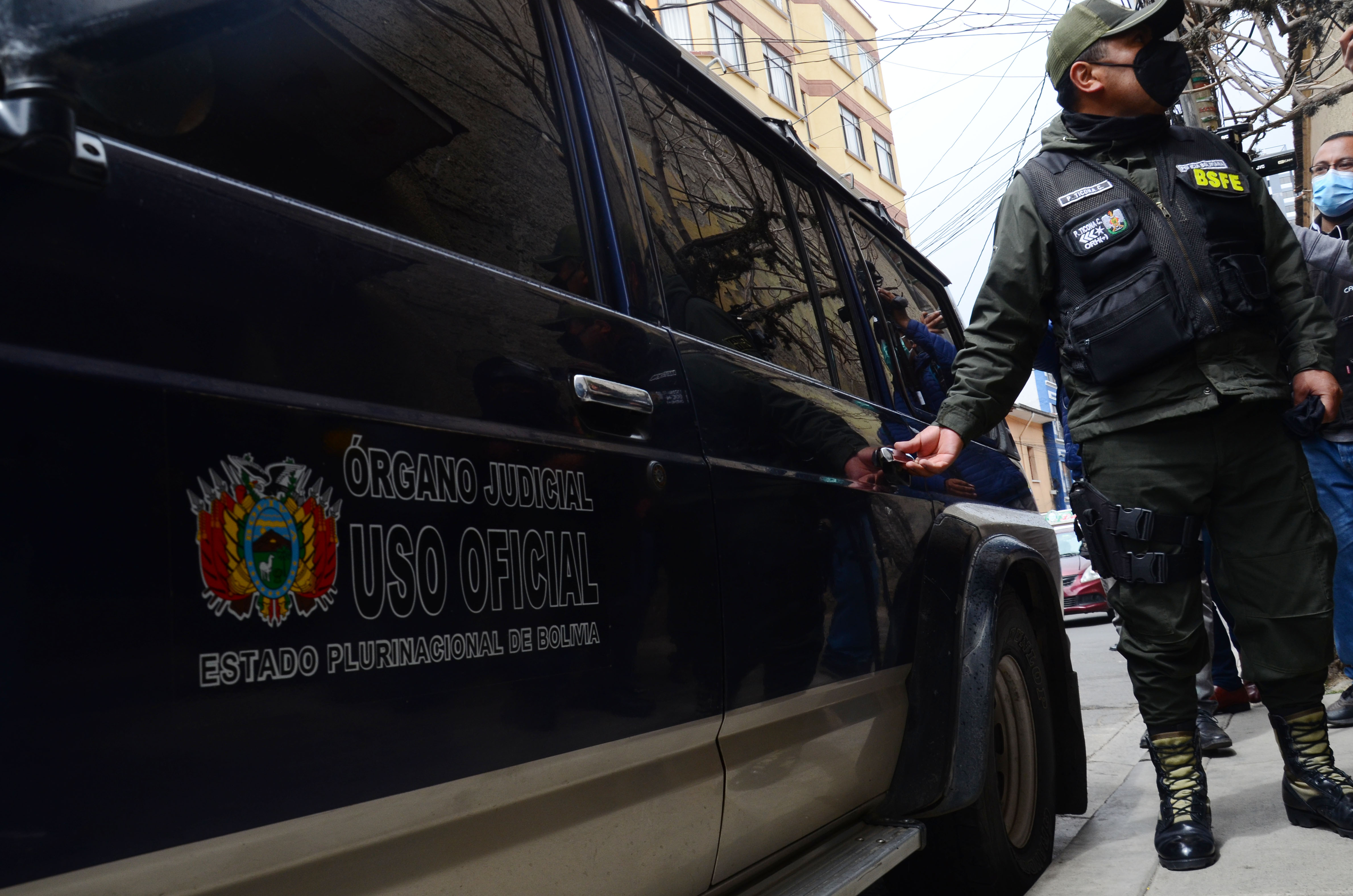Miembros del Tribunal Primero de Sentencia Anticorrupción se trasladan hasta el penal de San Pedro para la toma de la declaración de los militares en el juicio oral por el caso golpe de Estado II
