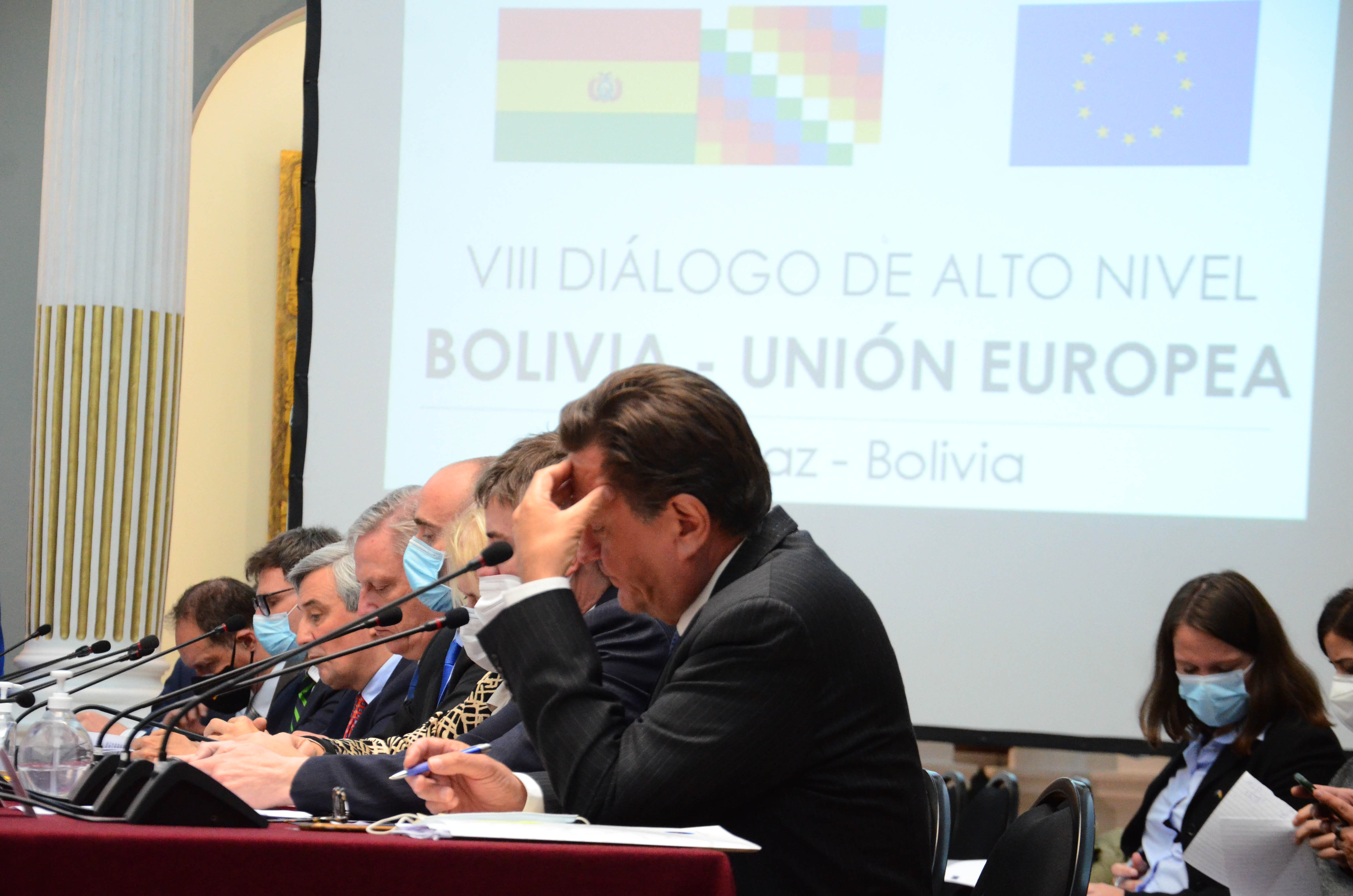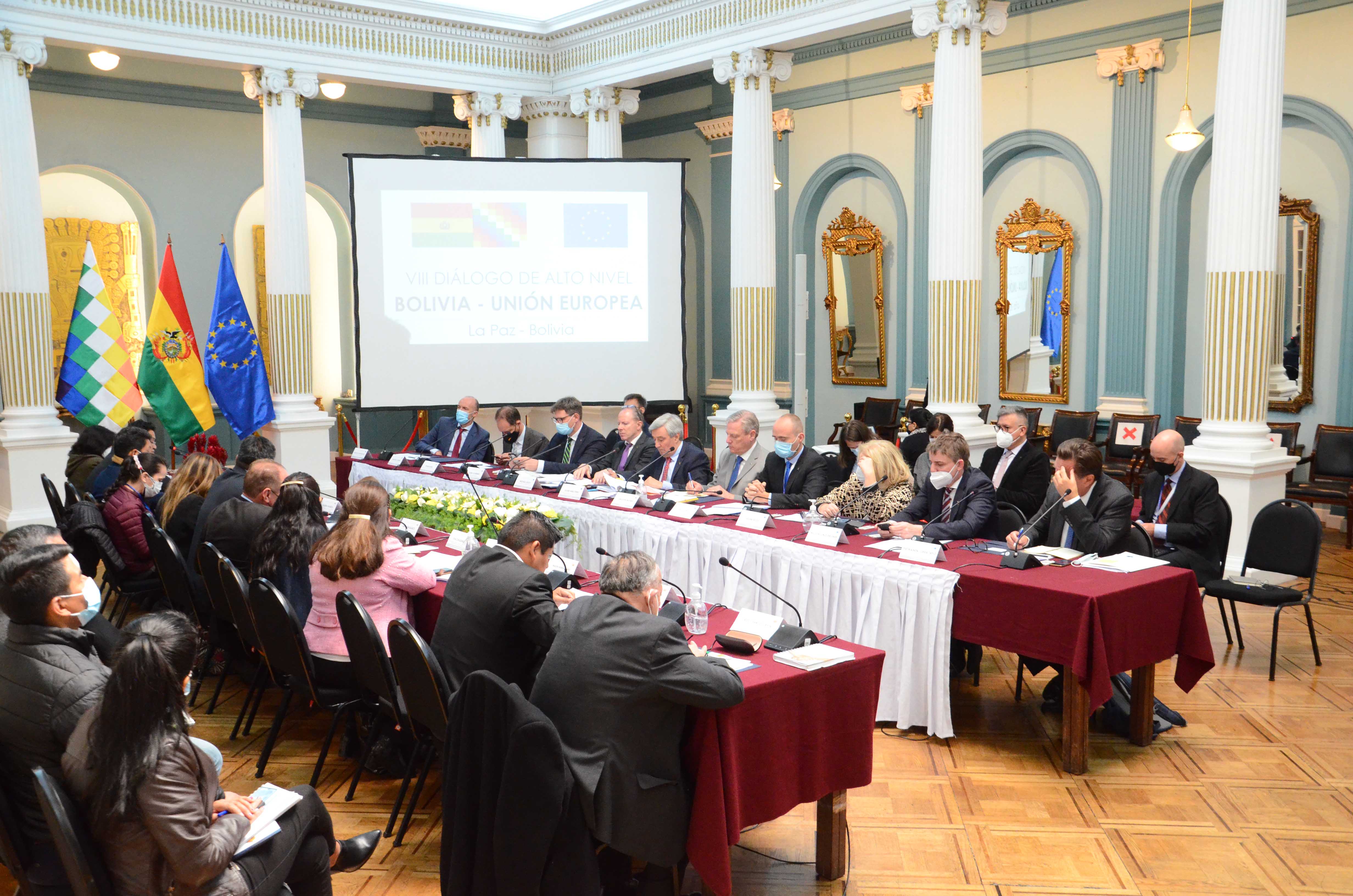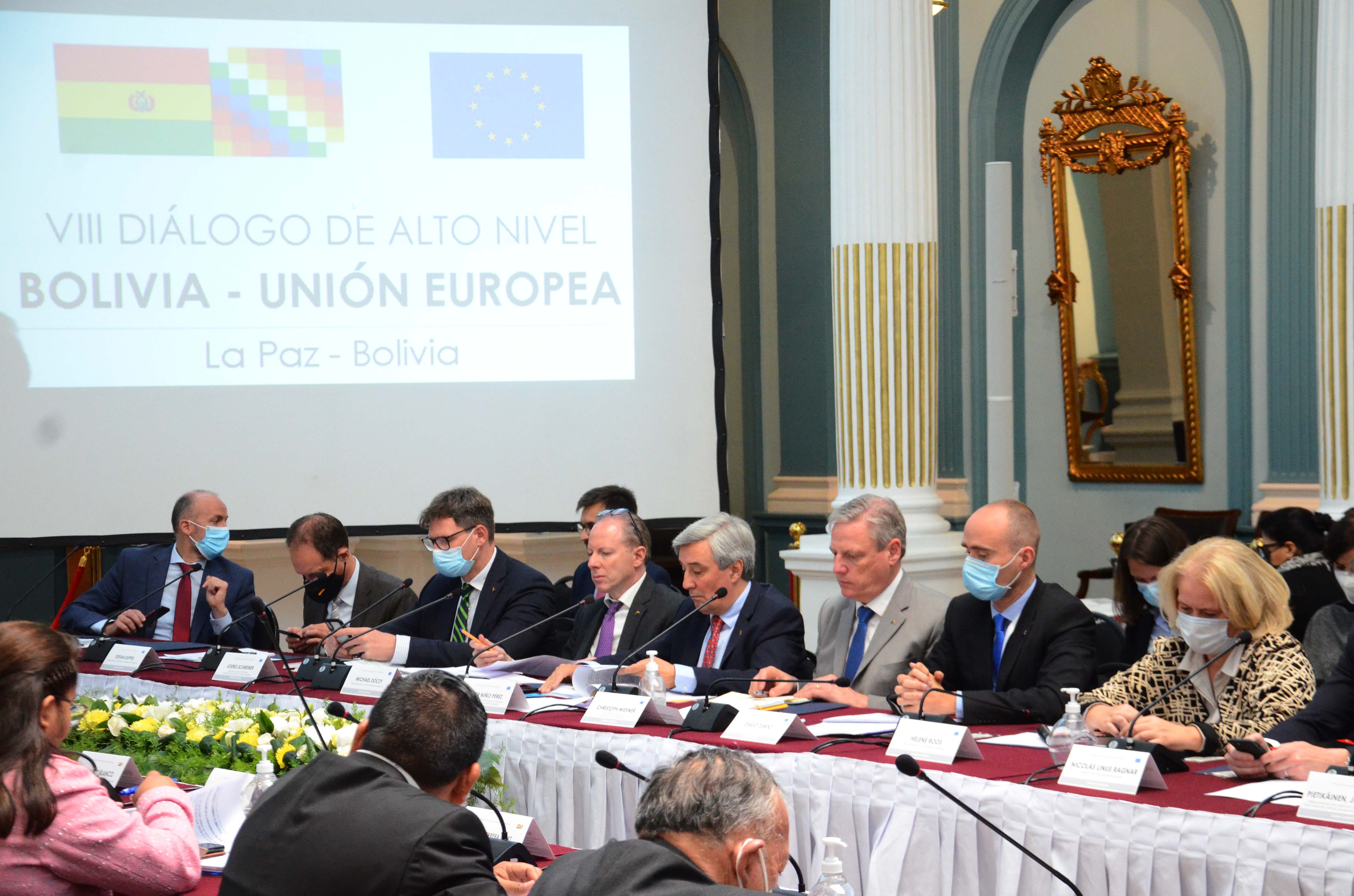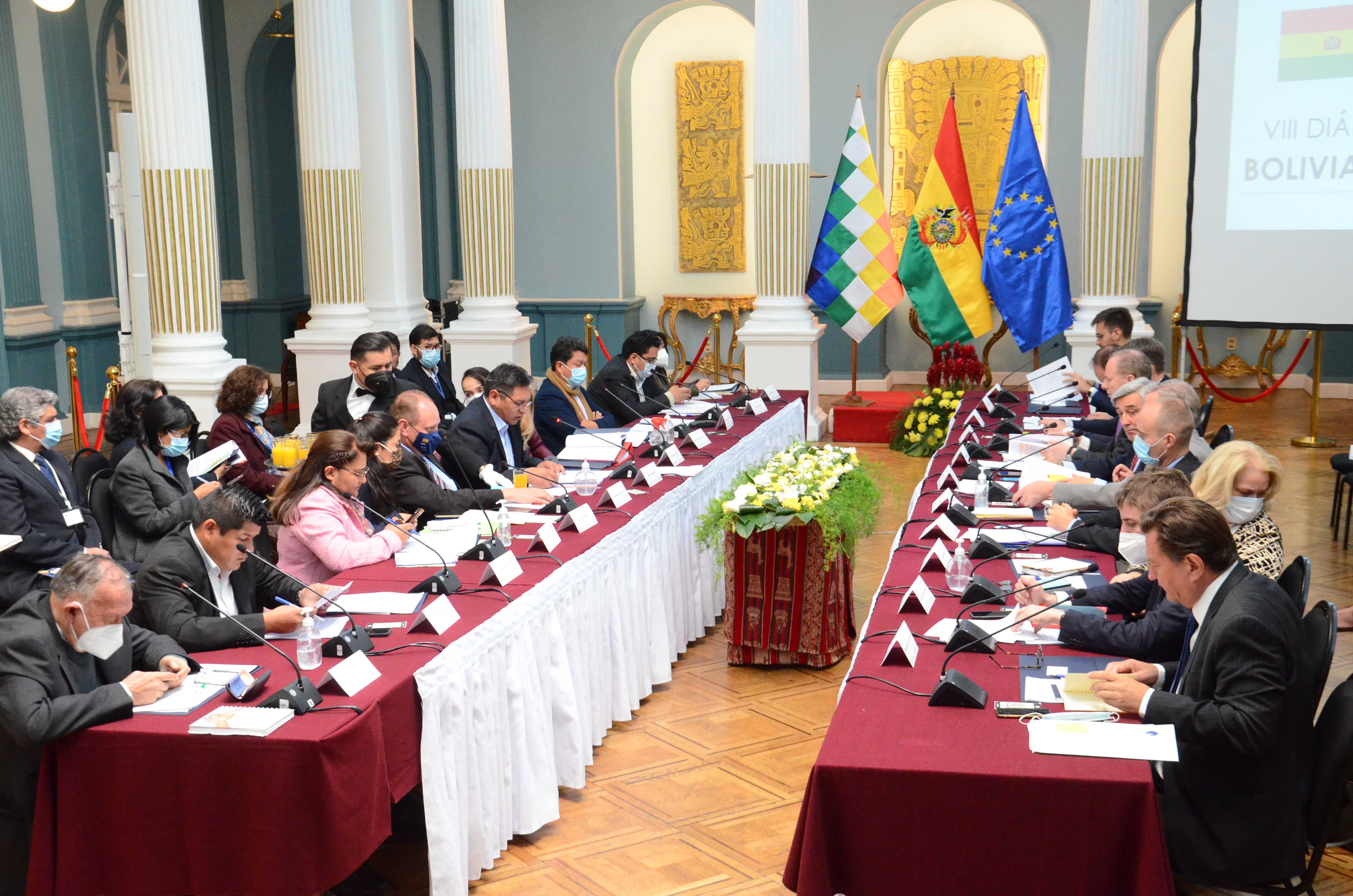 Reunión del VIII Diálogo de Alto Nivel Bolivia - Unión Europea en instalaciones de la Cancillería del Estado, en La Paz.Usuario ABIGalería Fotográfica 31 Mayo 2022 Visto: 9601ShareTwittearshare with Whatsappshare with Telegram FOTOS: ABI / JOSUE CORTEZAnteriorSiguiente