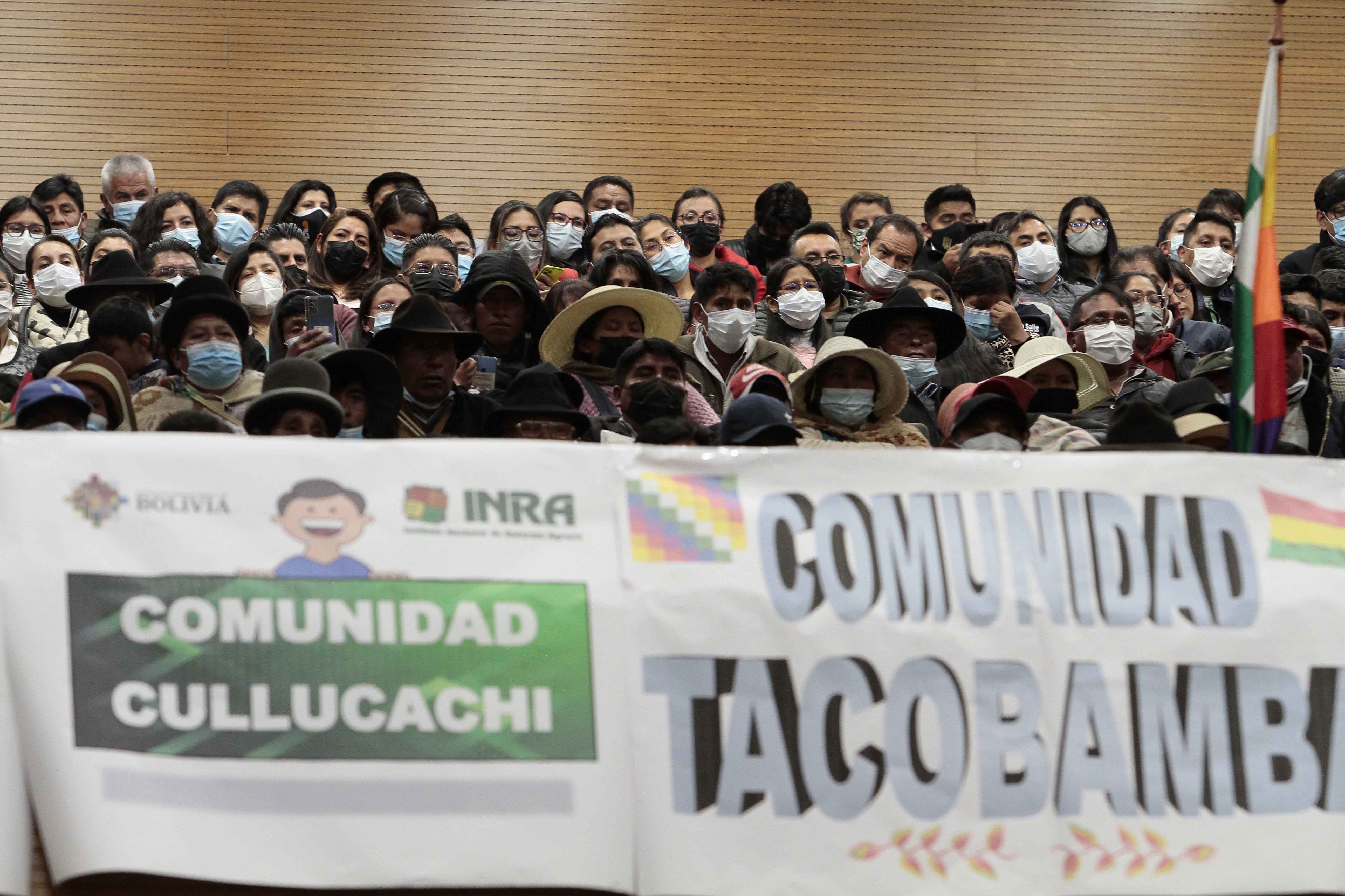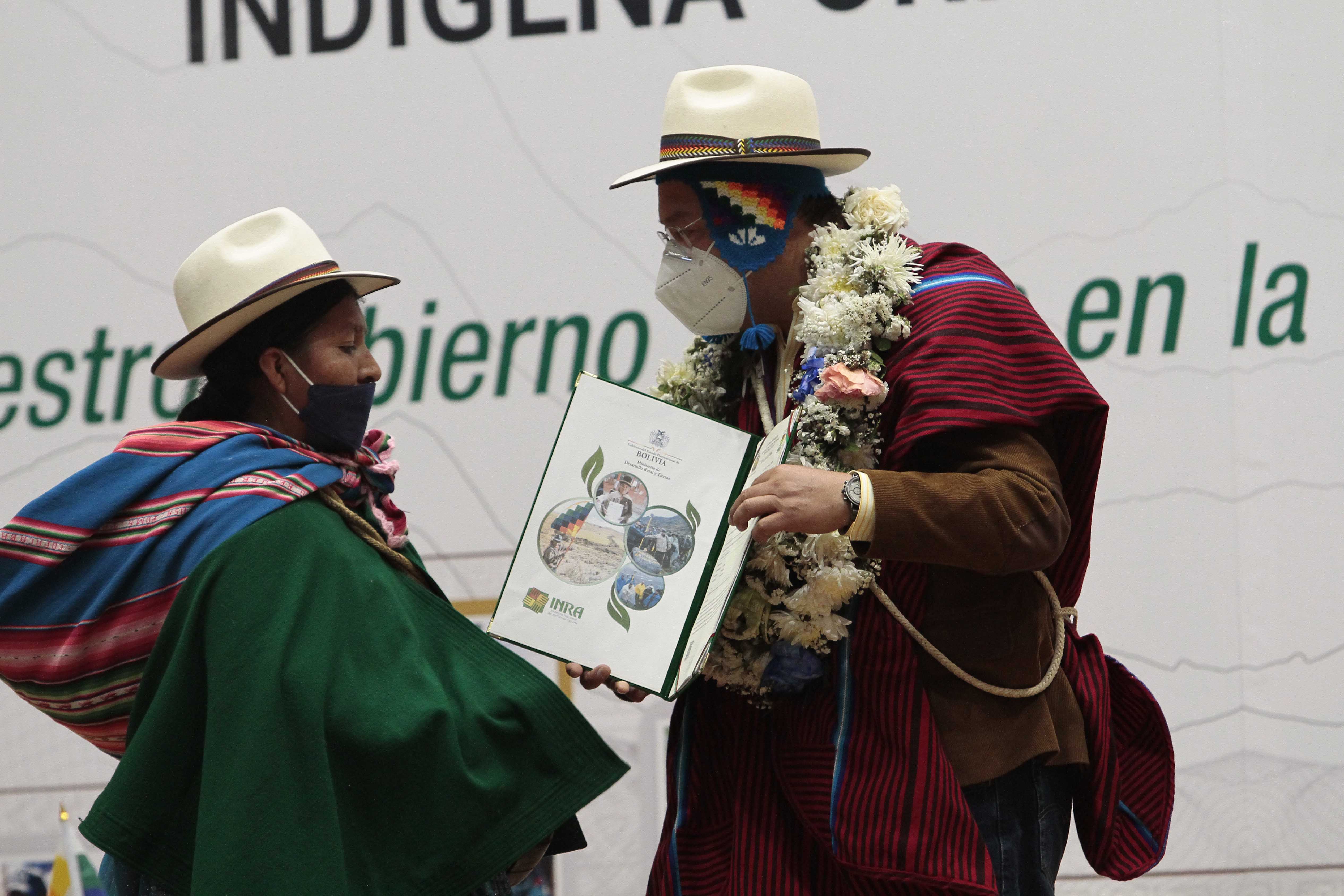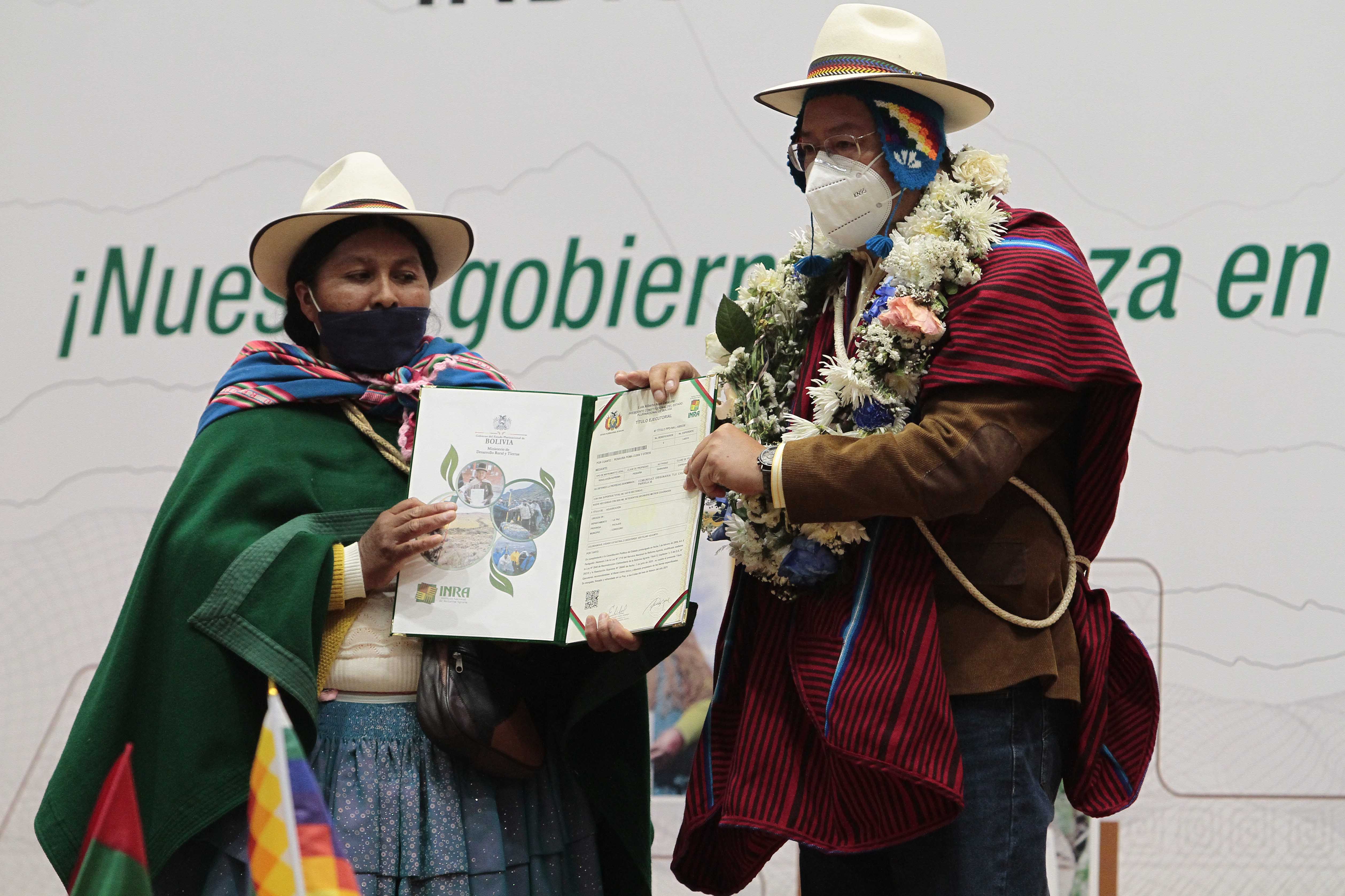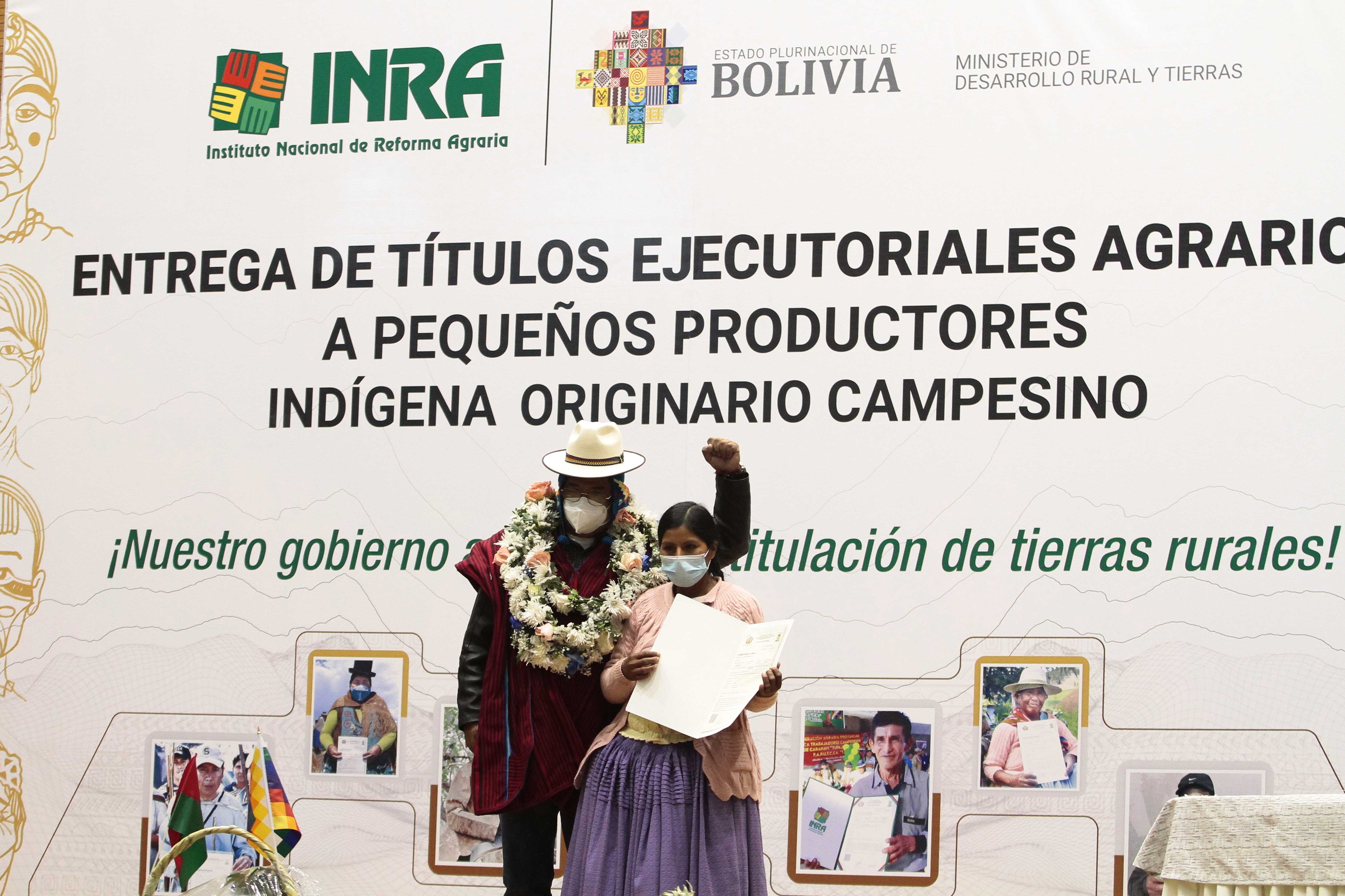 Presidente entrega más de 15.000 títulos ejecutoriales a productores de las comunidades rurales de La Paz Usuario ABIGalería Fotográfica 06 Julio 2022 Visto: 6689ShareTwittearshare with Whatsappshare with Telegram FOTOS: ABI / JOSUE CORTEZAnteriorSiguiente