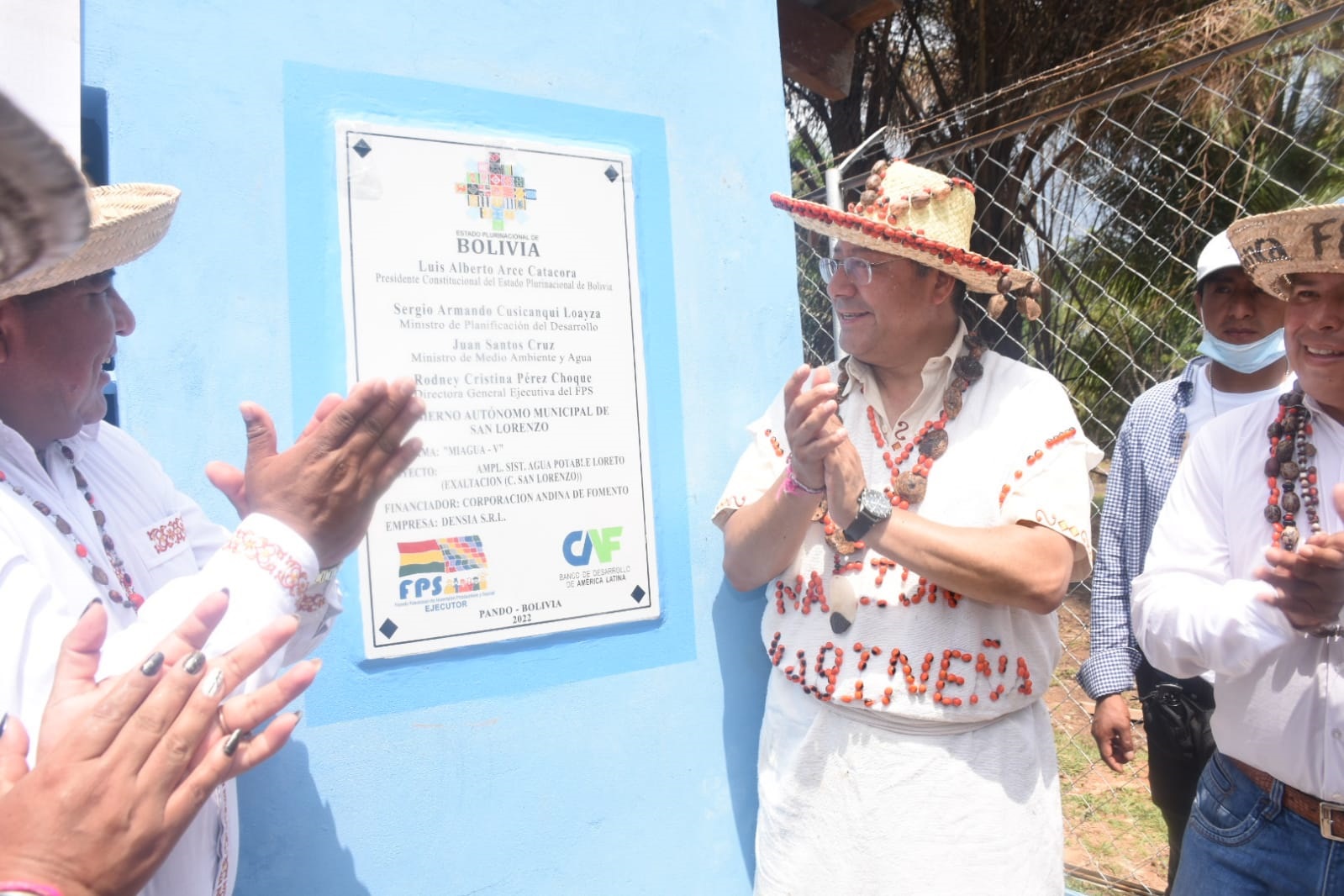 El presidente del Estado, Luis Arce Catacora, hace entrega de la ampliacion de sistema de agua potable, municipio de San Lorenzo, PandoEnzo De LucaGalería Fotográfica 10 Octubre 2022 Visto: 5034ShareTwittearshare with Whatsappshare with Telegram Fotos: Reynaldo Zaconeta / Comunicación PresidencialAnteriorSiguiente