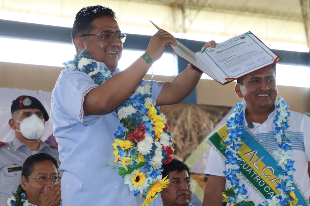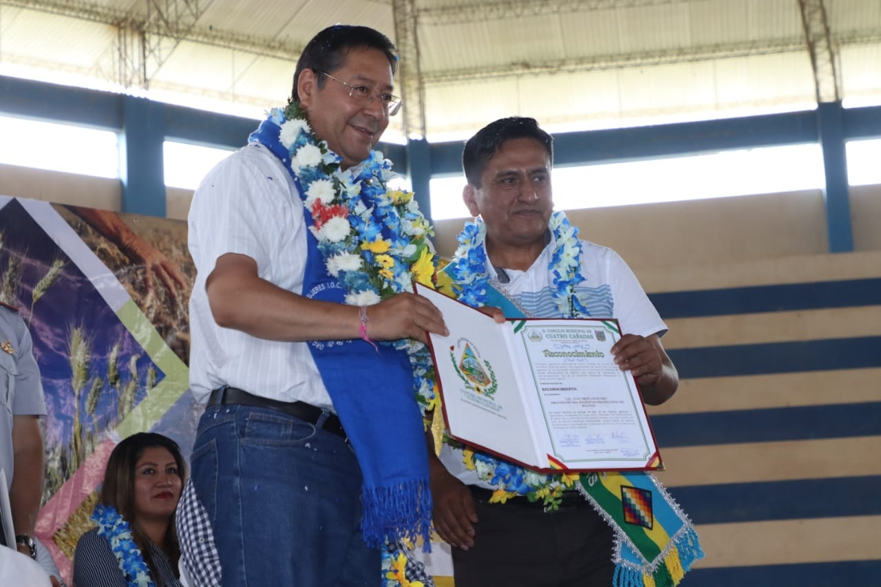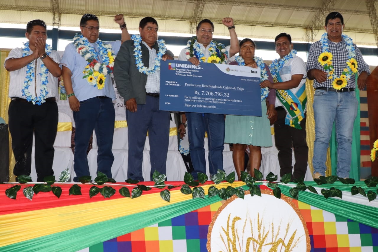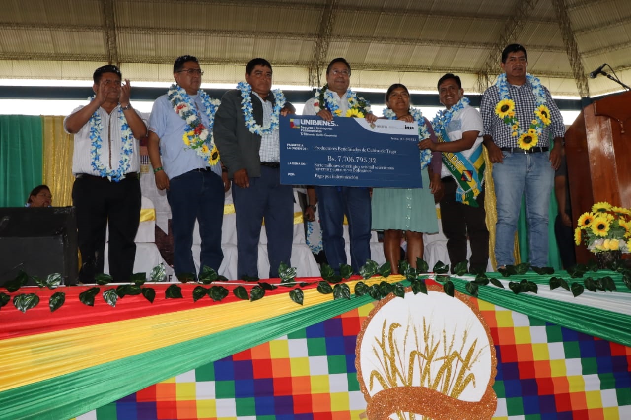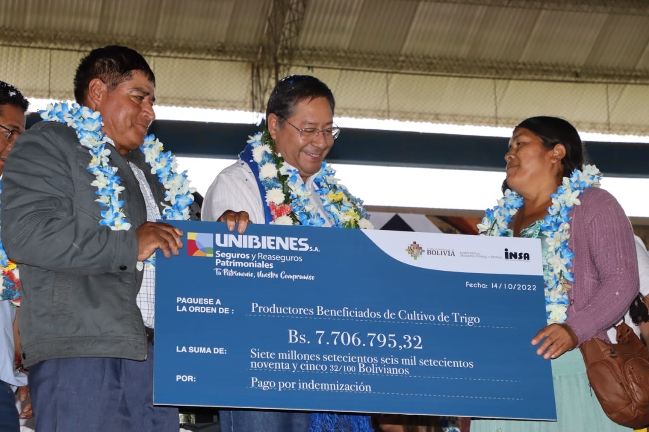 Presidente, Luis Arce Catacora, entrega indemnización a productores de trigo damnificados por efectos climáticos en el municipio de Cuatro Cañadas, Santa CruzEnzo De LucaGalería Fotográfica 14 Octubre 2022 Visto: 5288ShareTwittearshare with Whatsappshare with Telegram Fotos: Comunicación PresidencialAnteriorSiguiente