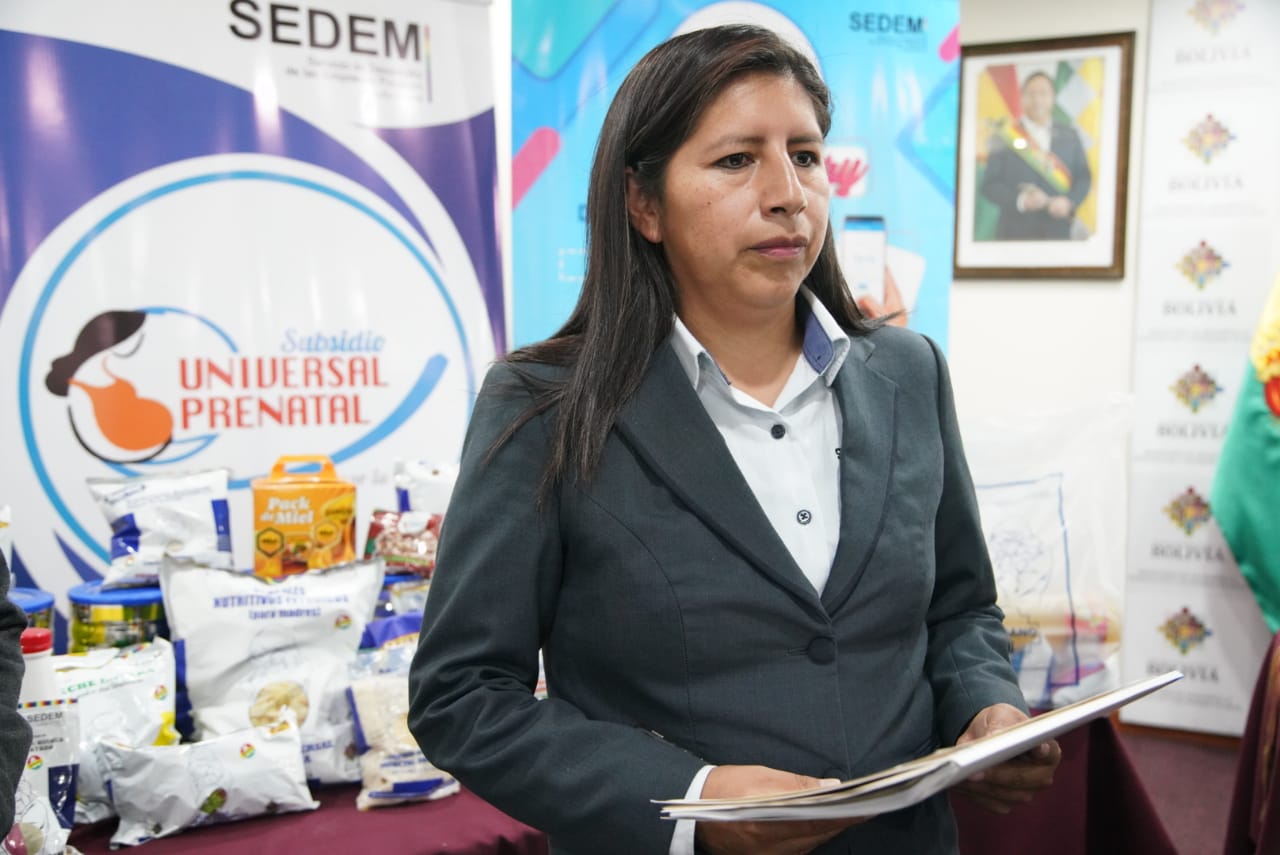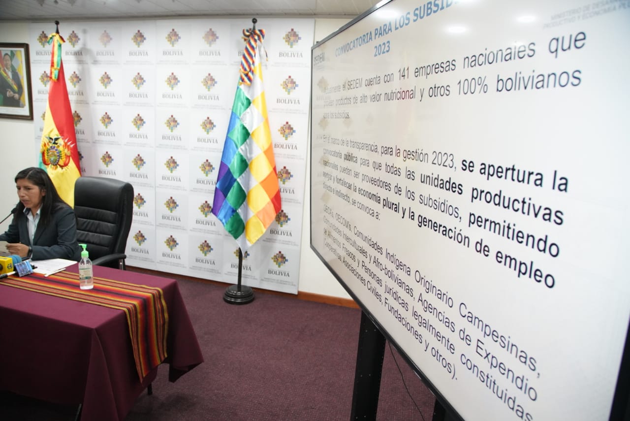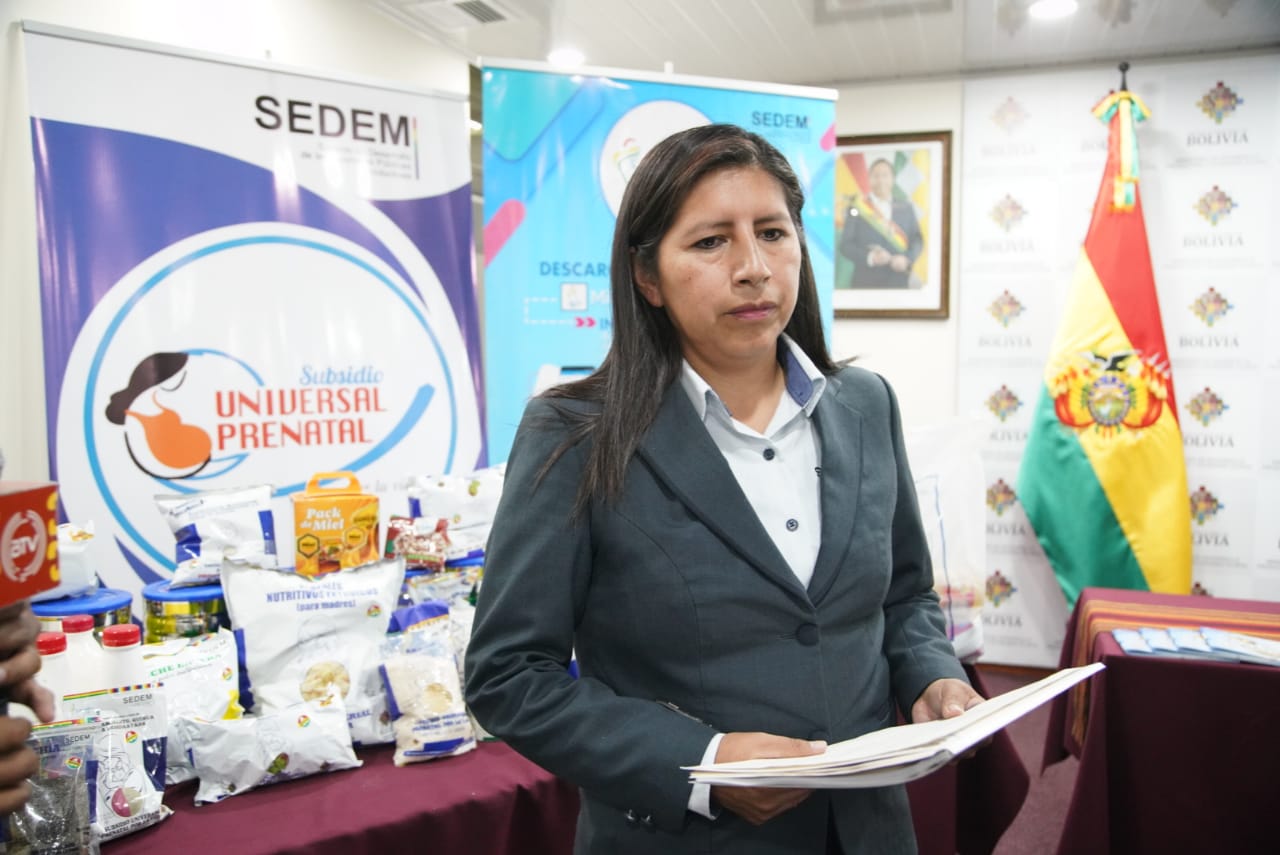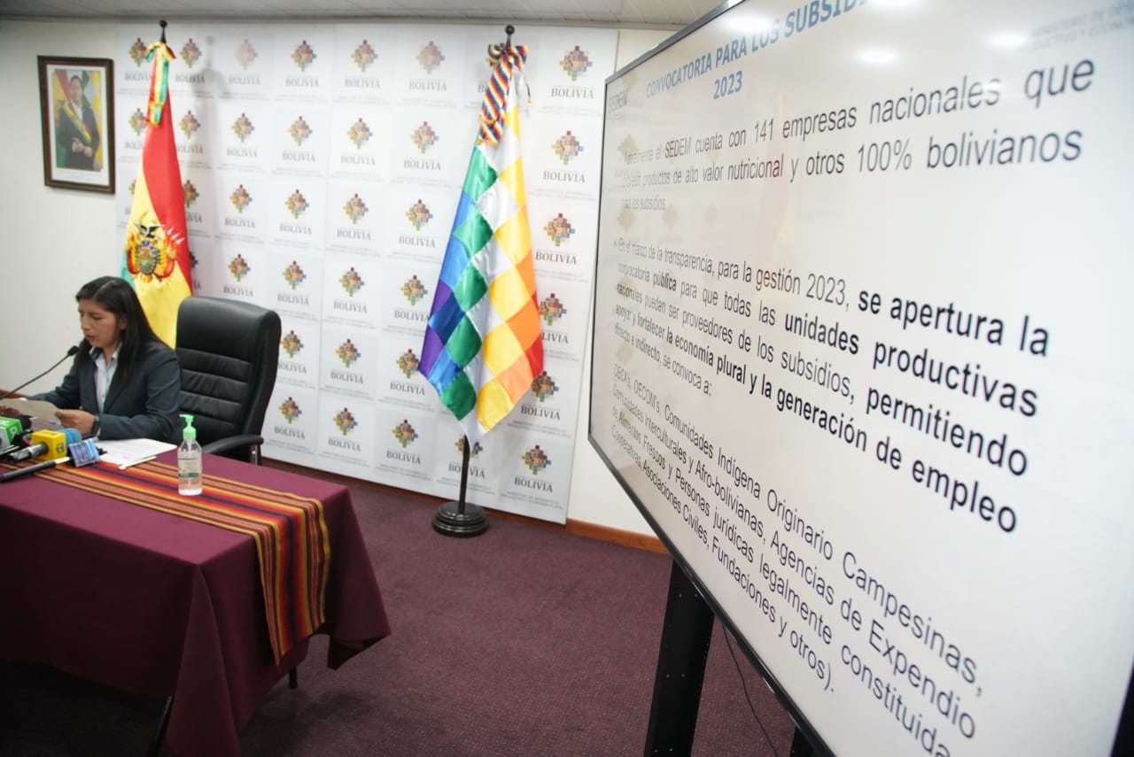 La Empresas Públicas Productivas (SEDEM), en una conferencia de prensa sobre la convocatoria nacional para la provisión de alimentos y productos frescos para el subsidio prenatal - Lactancia y Subsidio Universal Prenatal por la vida. Fotos: Jorge Mamani