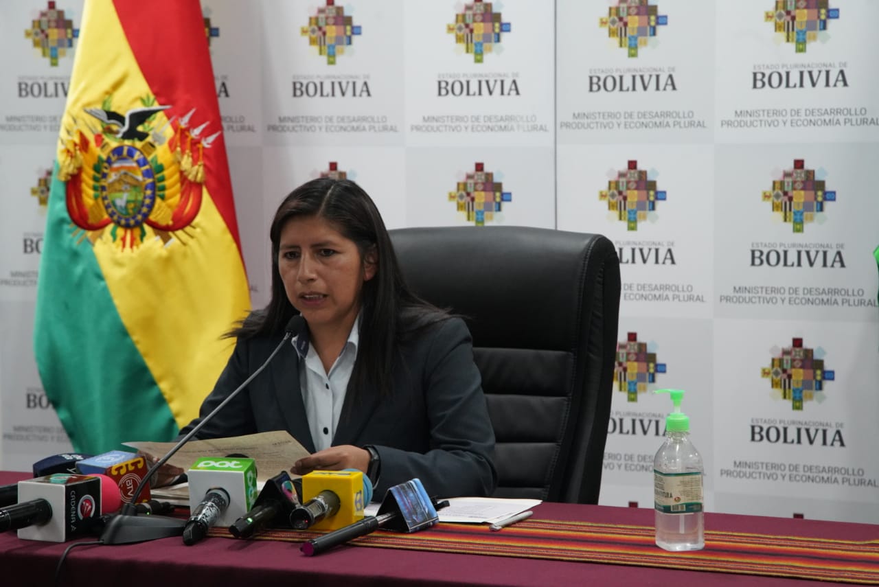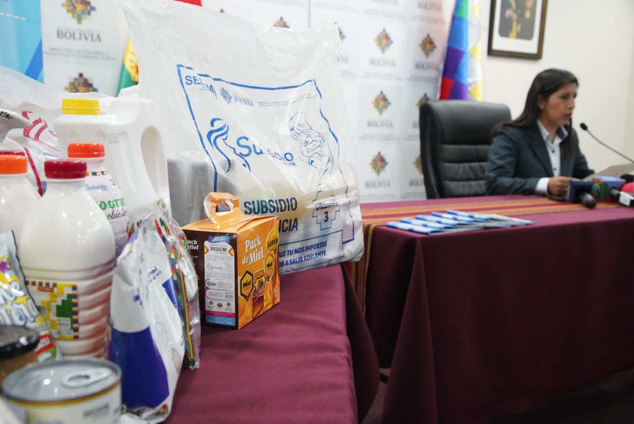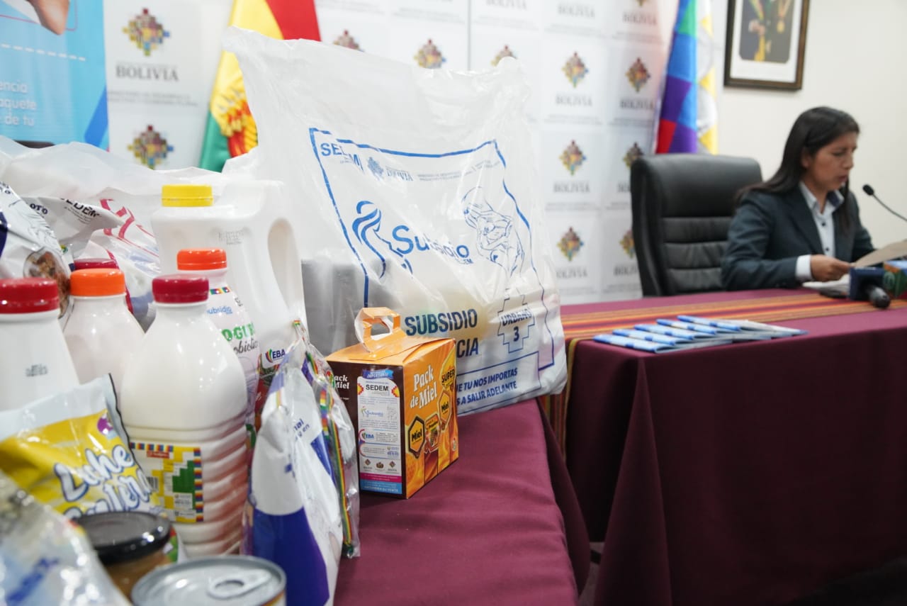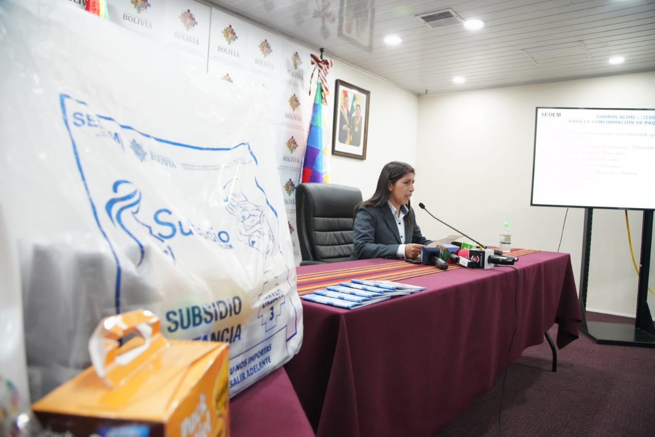 La Empresas Públicas Productivas (SEDEM), en una conferencia de prensa sobre la convocatoria nacional para la provisión de alimentos y productos frescos para el subsidio prenatal - Lactancia y Subsidio Universal Prenatal por la vida. Fotos: Jorge Mamani