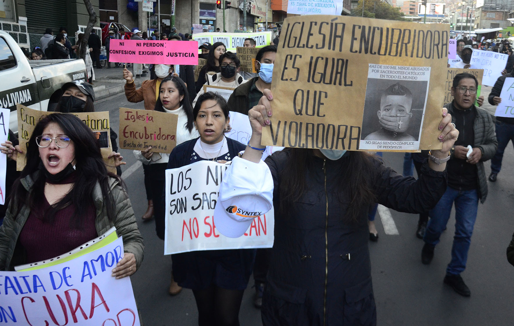 Marcha en apoyo a las victimas de pederastia y violaciones de la Iglesia Católica, (Bolivia Indignada). Fotos: Freddy Barragán