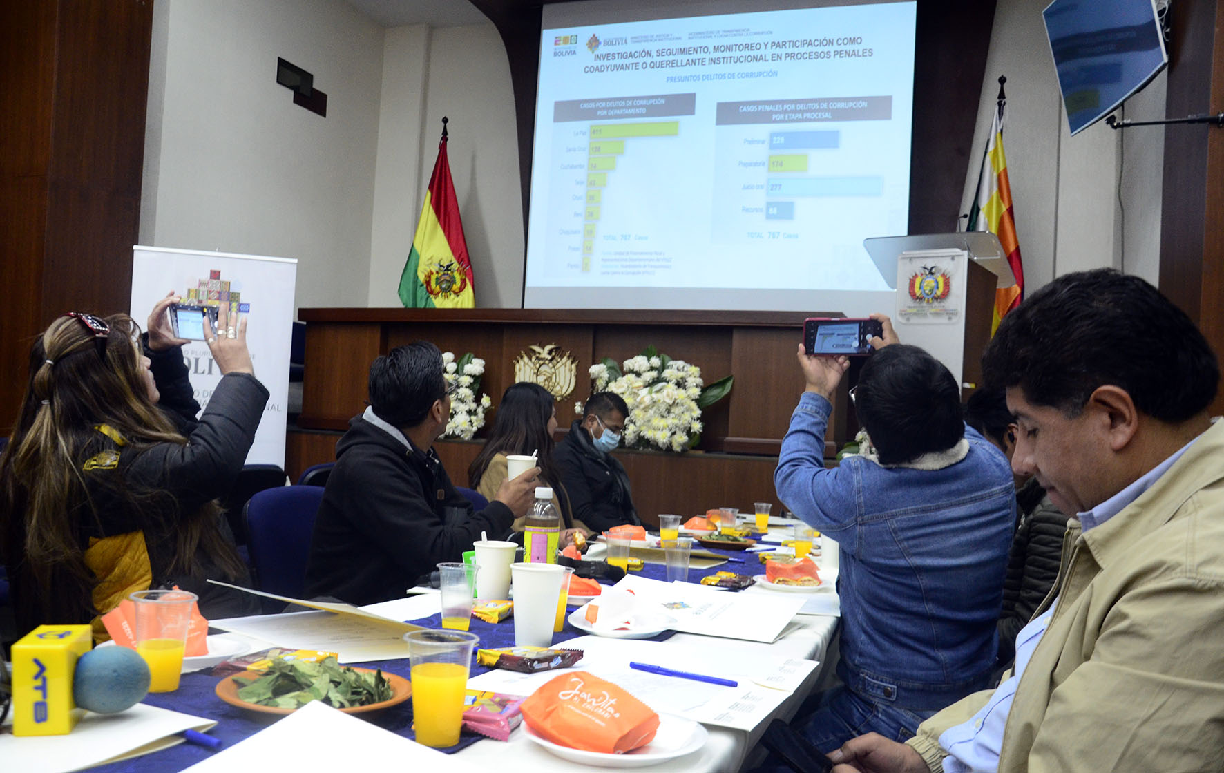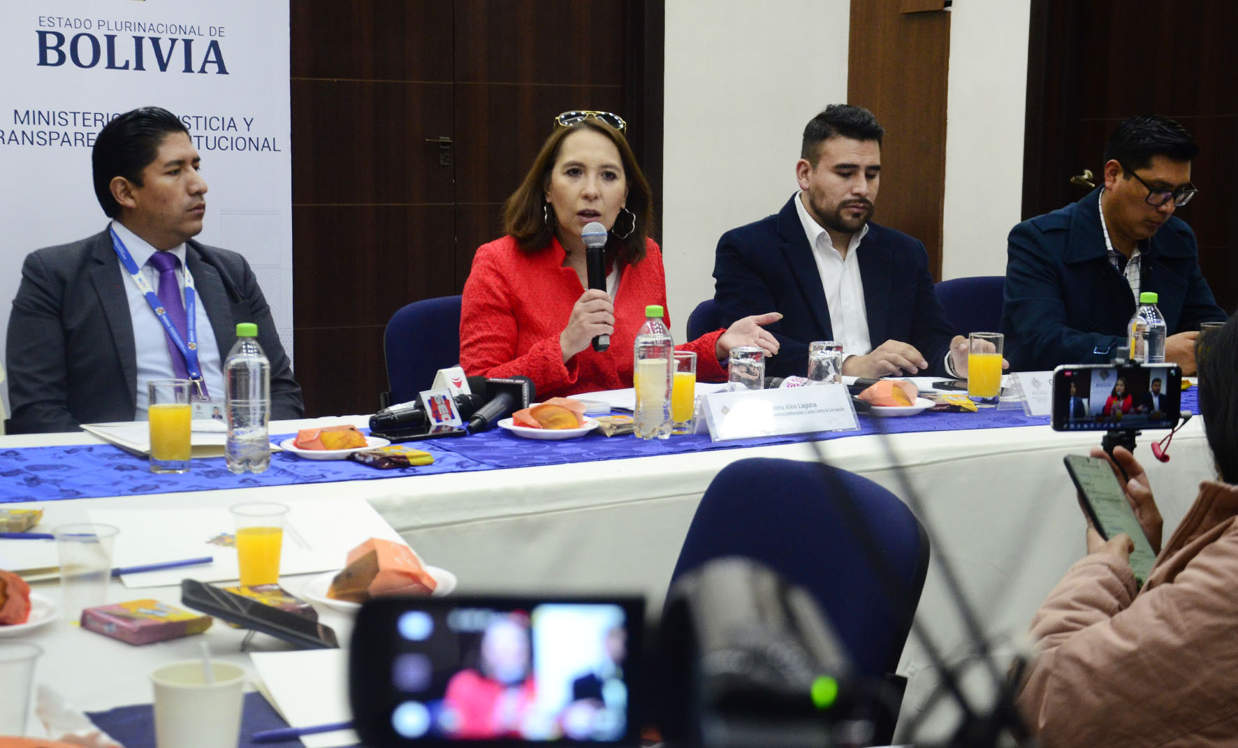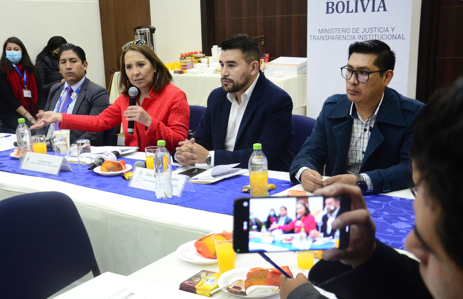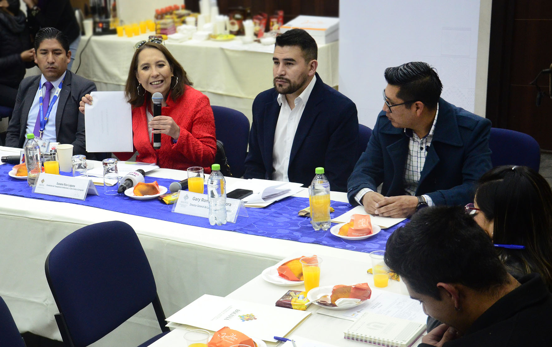 Desayuno trabajo con medios de prensa, con la participación de la Viceministra de Transparencia Institucional y Lucha contra la Corrupción Dra. Susana Ríos. Presentación de los sistemas de gestión de denuncias ”S2+” y procesamientos penales “SPP”. Fotos: Freddy Barragán