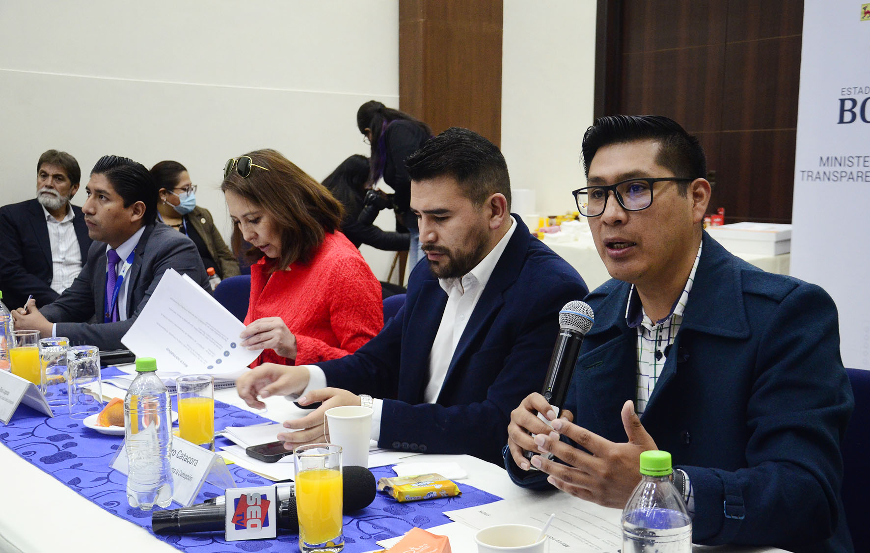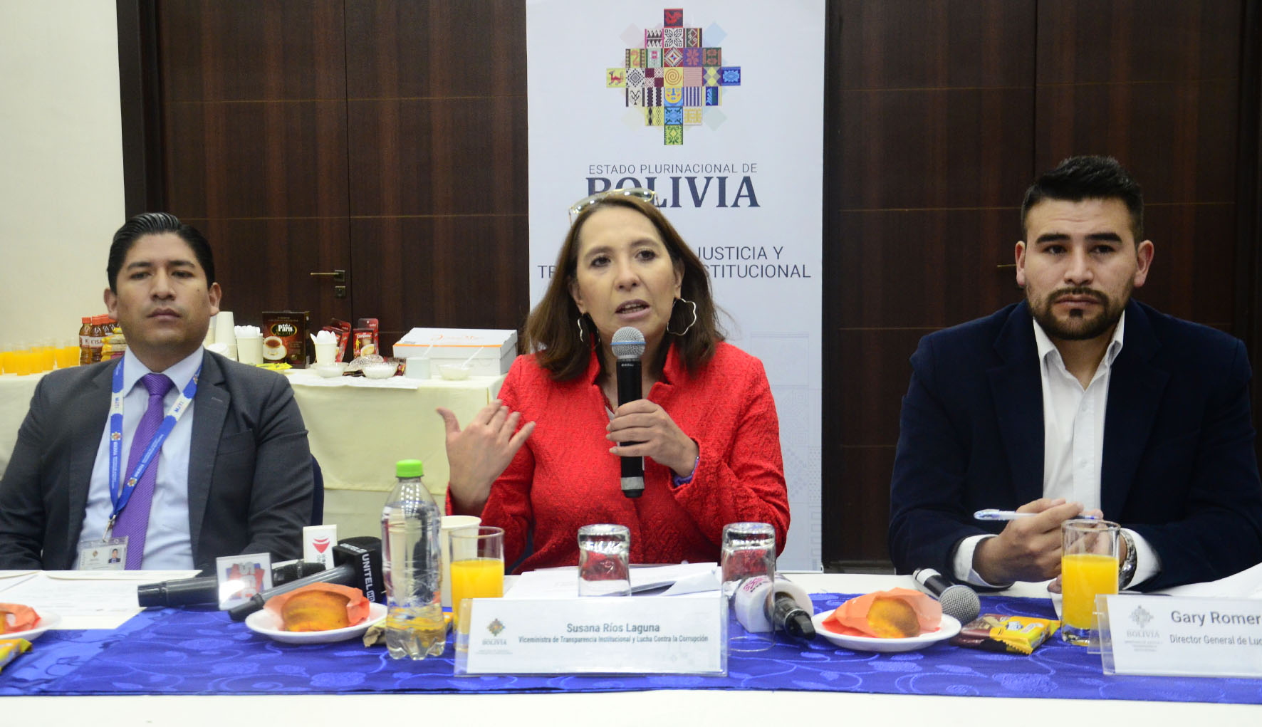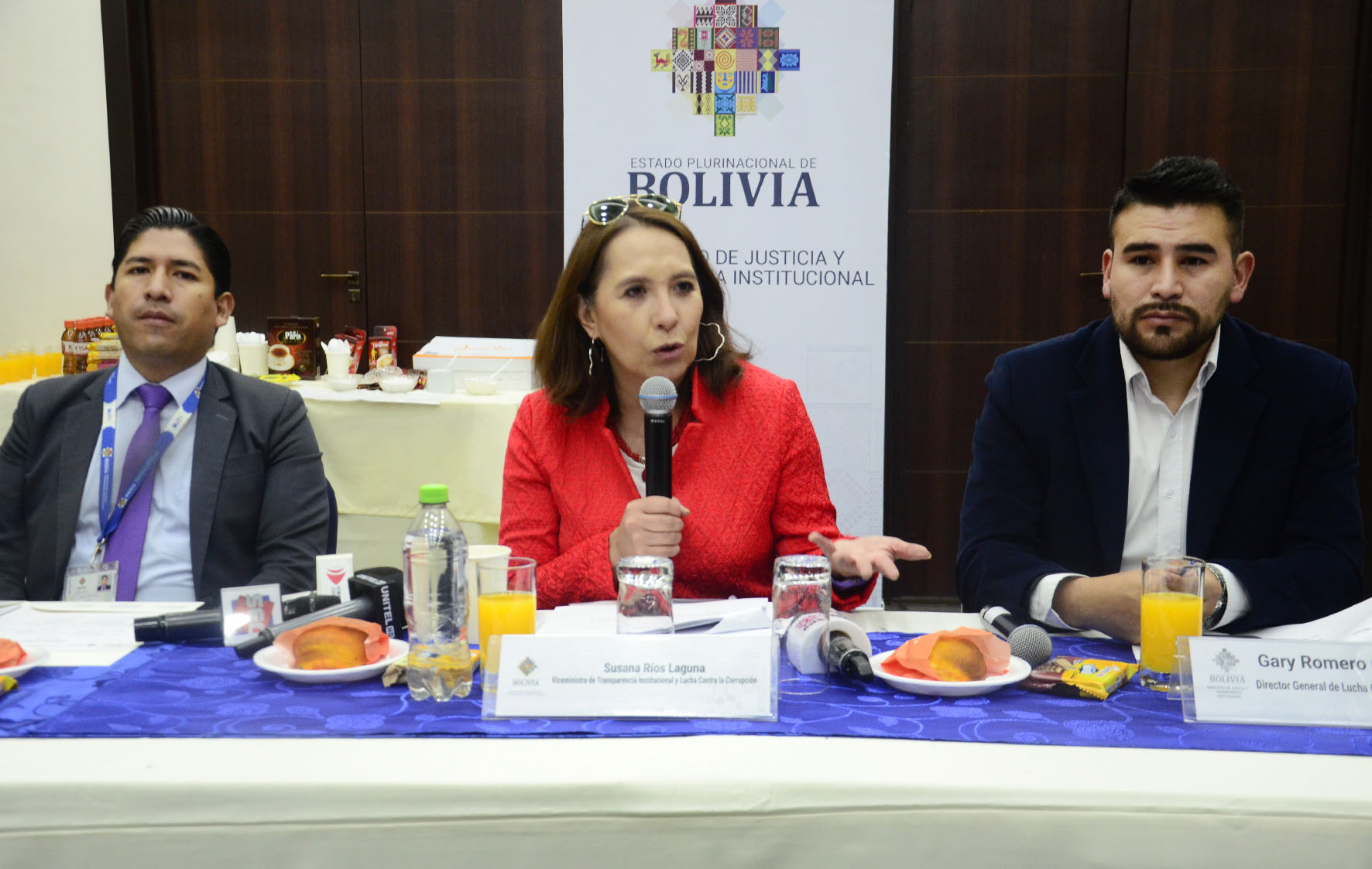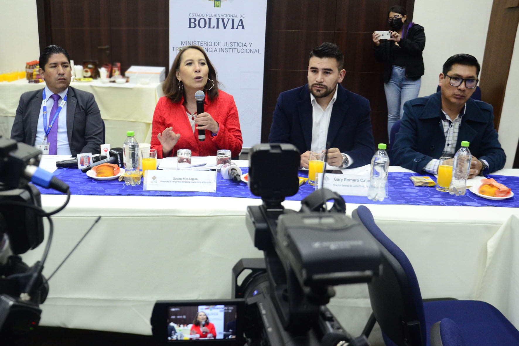 Desayuno trabajo con medios de prensa, con la participación de la Viceministra de Transparencia Institucional y Lucha contra la Corrupción Dra. Susana Ríos. Presentación de los sistemas de gestión de denuncias ”S2+” y procesamientos penales “SPP”. Fotos: Freddy Barragán