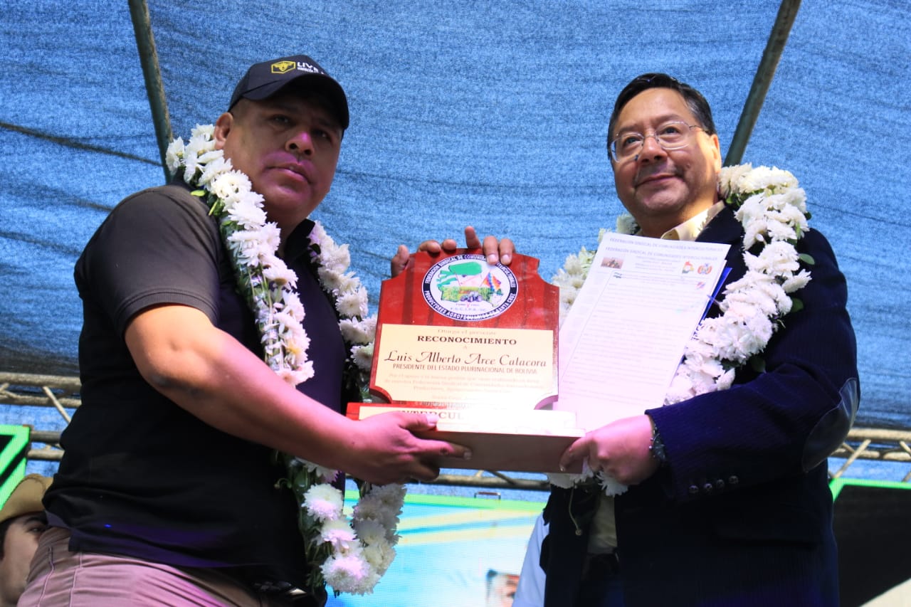 Presidente Luis Arce participa en el Festival Intercultural en conmemoración al 54 aniversario de la Federación Sindical de Comunidades Interculturales Productores Agropecuarios de Santa Cruz. Fuente: Comunicación Presidencial