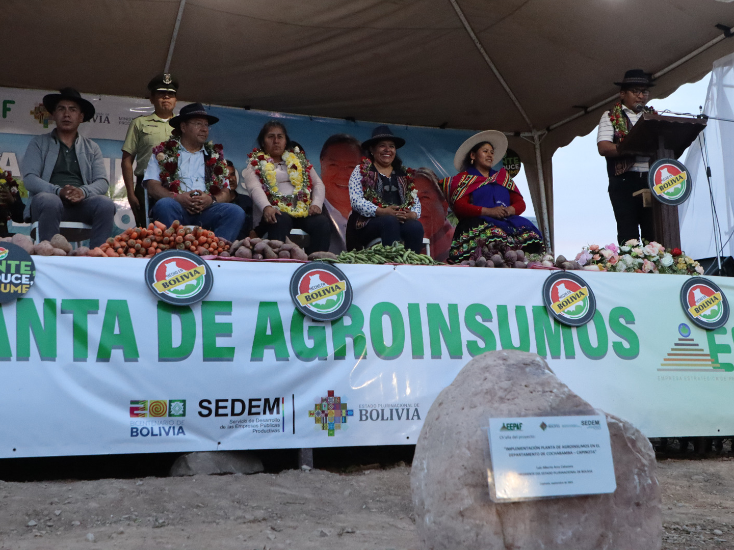 Presidente coloca la piedra fundamental para la construcción de la Planta de Agroinsumos en Capinota, Cochabamba.Estefanny Bolivar ArancibiaGalería Fotográfica 05 Septiembre 2023 Visto: 7891ShareTwittearshare with Whatsappshare with Telegram Fuente: Comunicación PresidencialAnteriorSiguiente