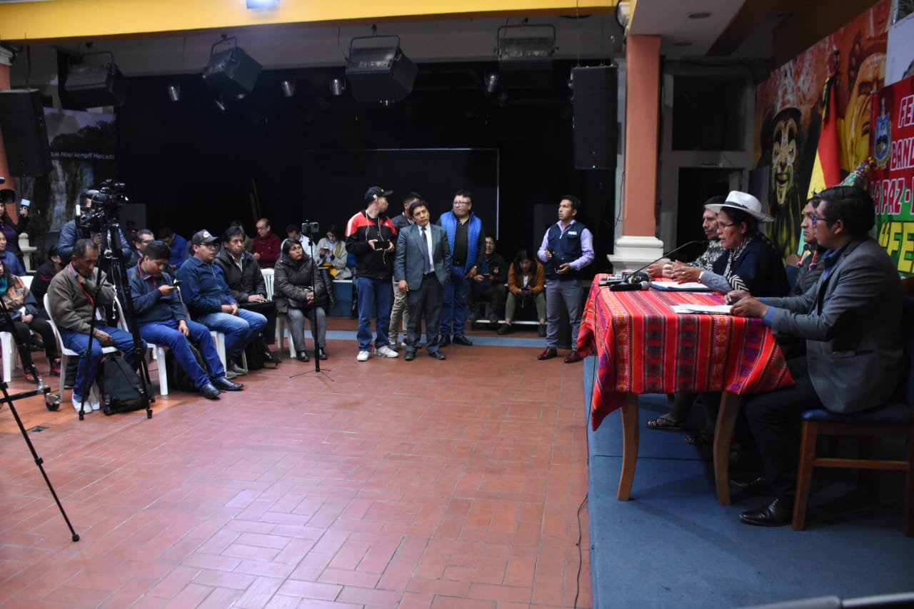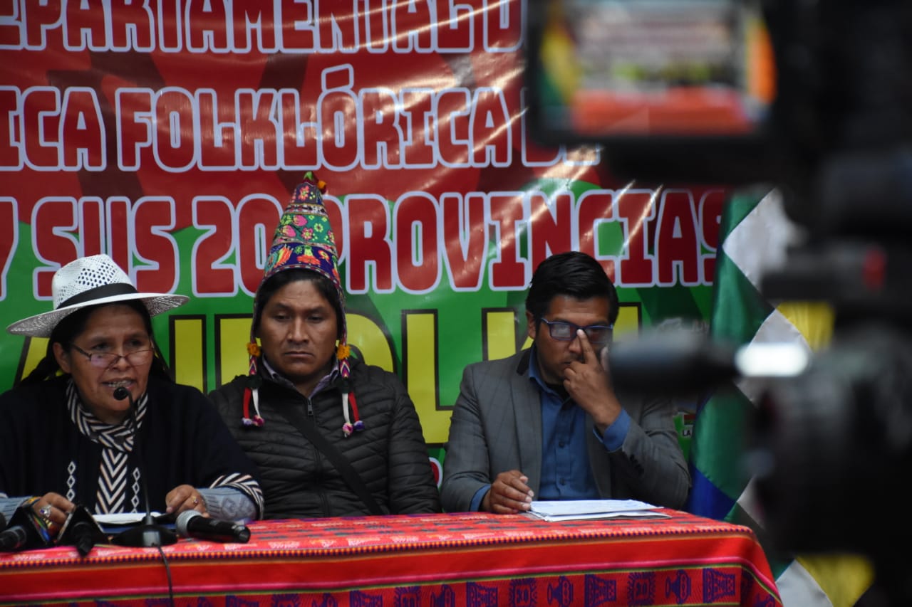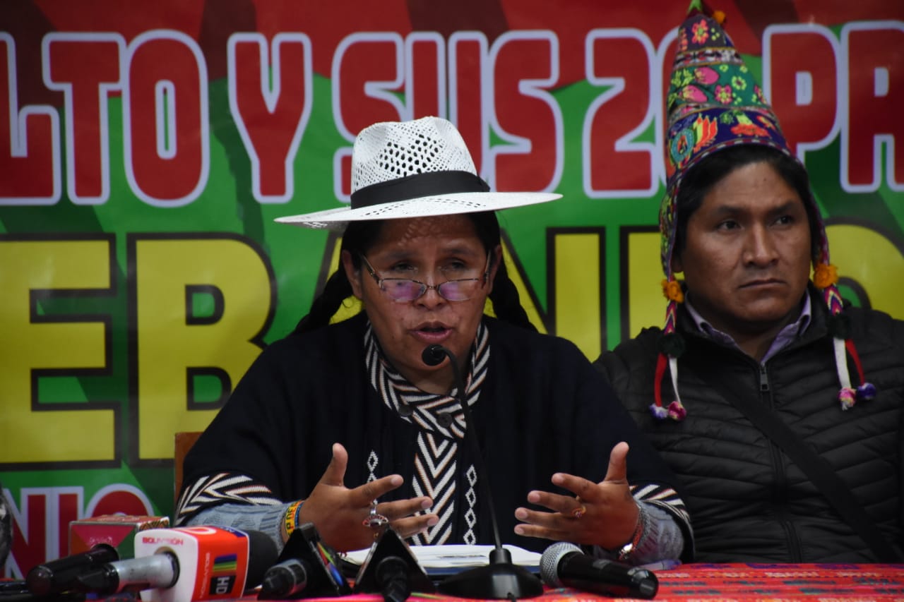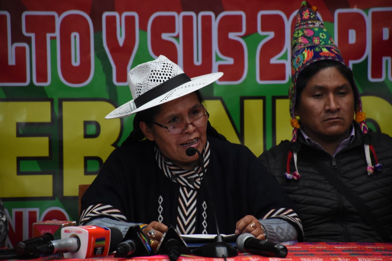 La Ministra de Culturas Sabina Orellana, en conferencia de prensa sobre la posición frente al anuncio del representante de Bandas de Músicos de Puno, de prohibir la participación de Bandas Bolivianas en la Festividad de Candelaria