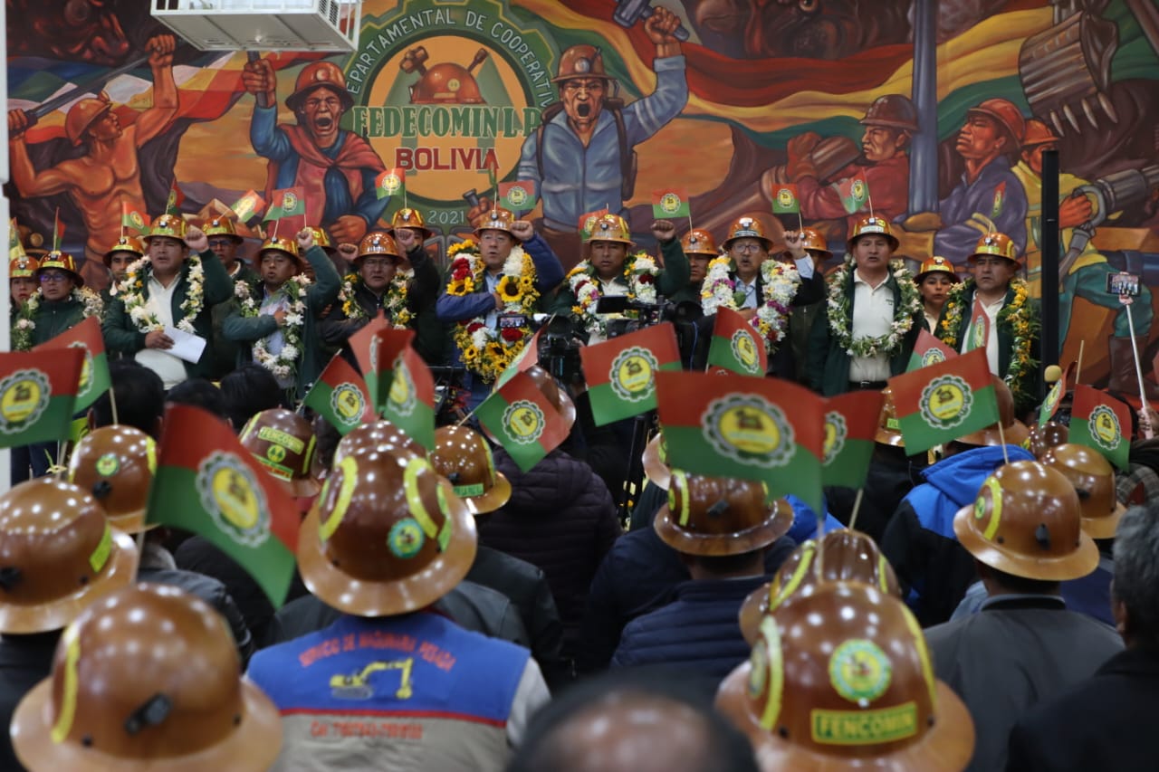 El presidente Luis Arce saludó este jueves el 46 aniversario de la Federación Departamental de Cooperativas Mineras (Fedecomin) de La Paz y aseguró que la minería continúa siendo el puntal de la economía boliviana y lo será “por mucho tiempo más", porque ahora la tecnología demanda la producción de ese sector.