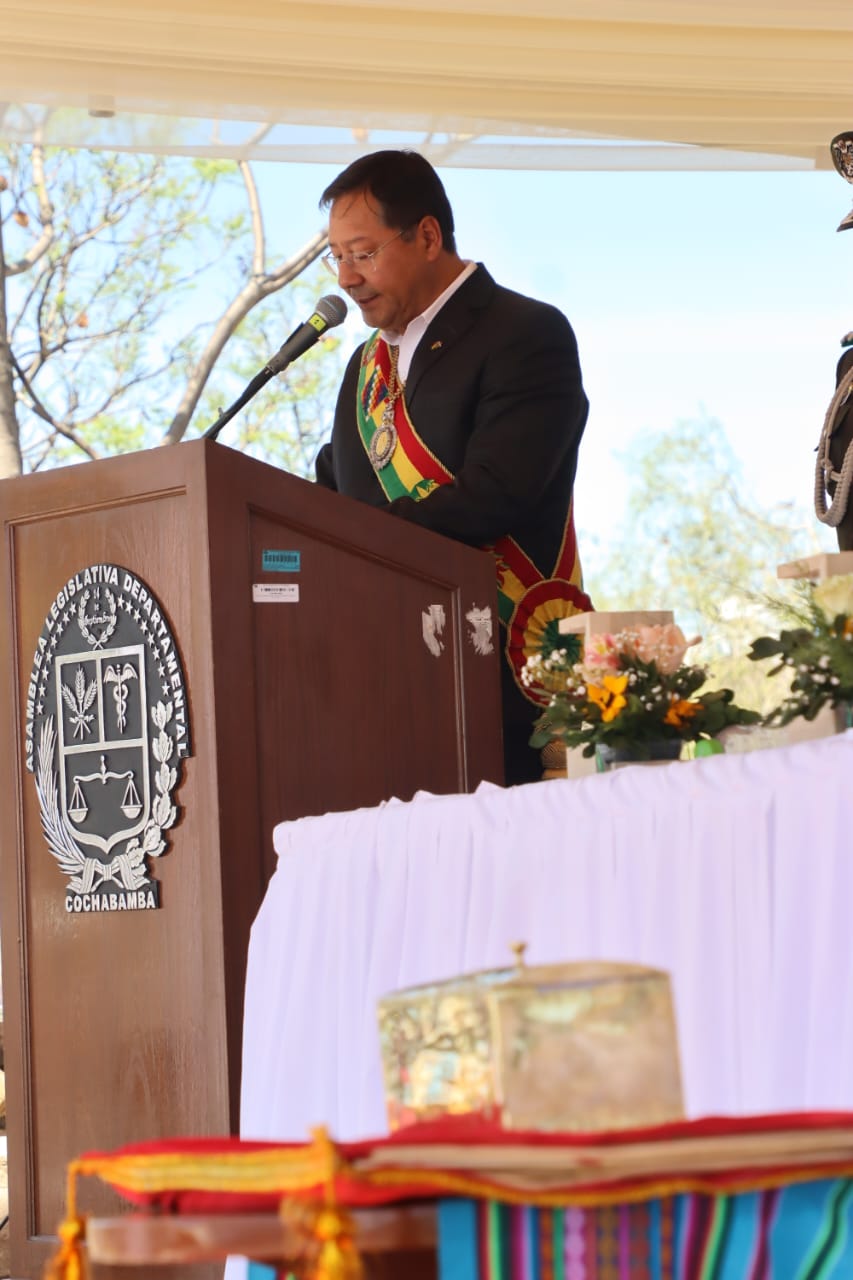Presidente participa en la Sesión de Honor por el 213 aniversario de la gesta libertaria de Cochabamba.Estefanny Bolivar ArancibiaGalería Fotográfica 14 Septiembre 2023 Visto: 20050ShareTwittearshare with Whatsappshare with Telegram Fuente: Comunicación PresidencialAnteriorSiguiente
