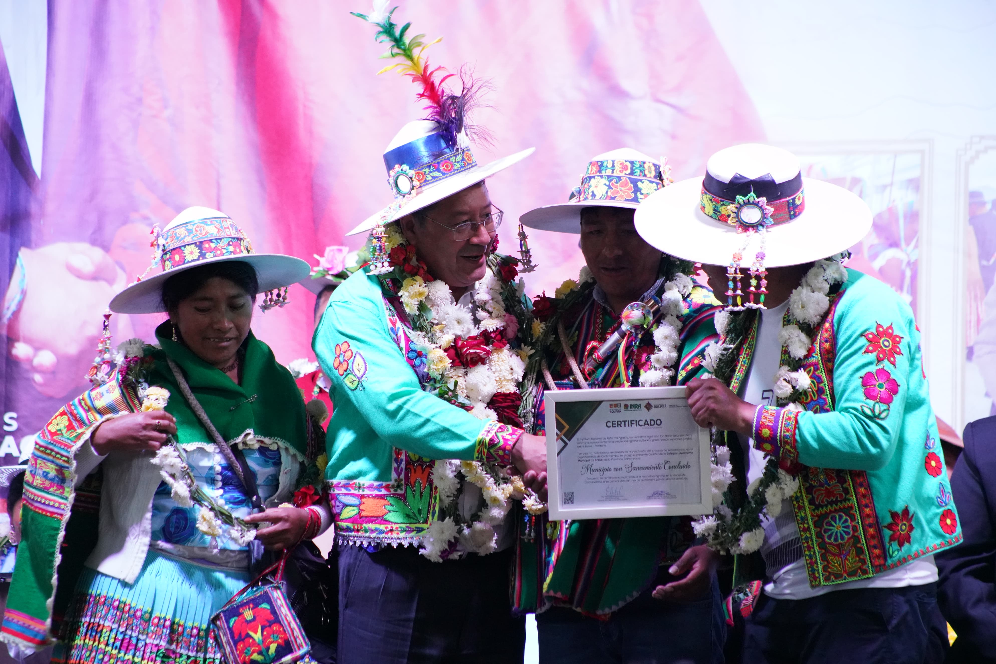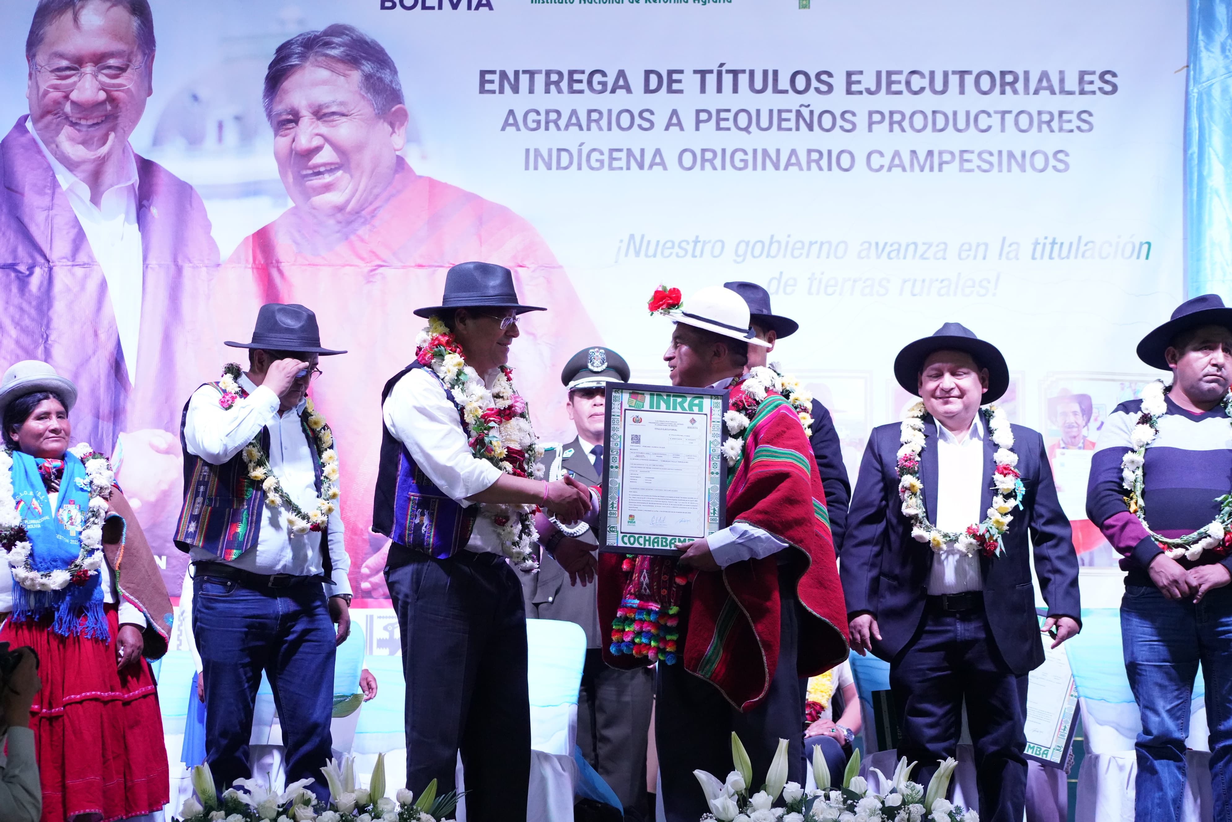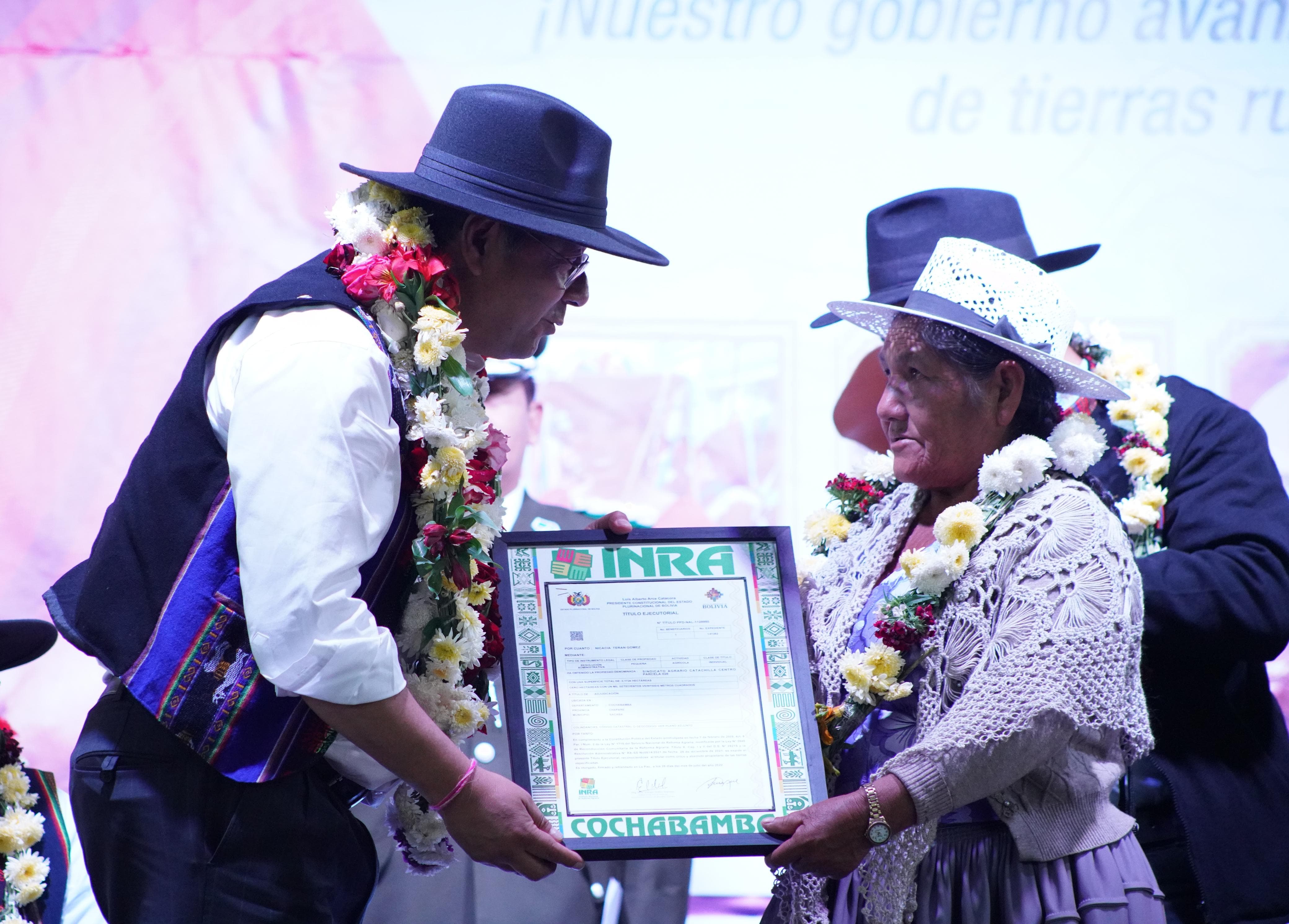 Presidente entrega títulos de propiedad a productores de Cochabamba.Estefanny Bolivar ArancibiaGalería Fotográfica 14 Septiembre 2023 Visto: 21313ShareTwittearshare with Whatsappshare with Telegram Fuente: Comunicación PresidencialAnteriorSiguiente